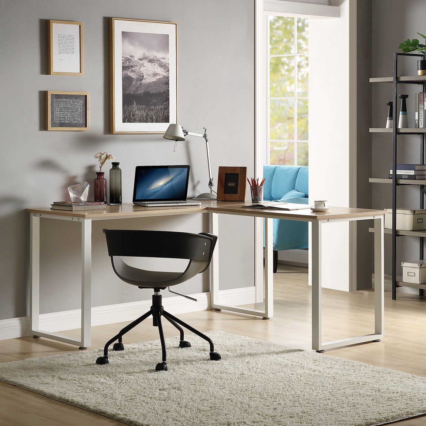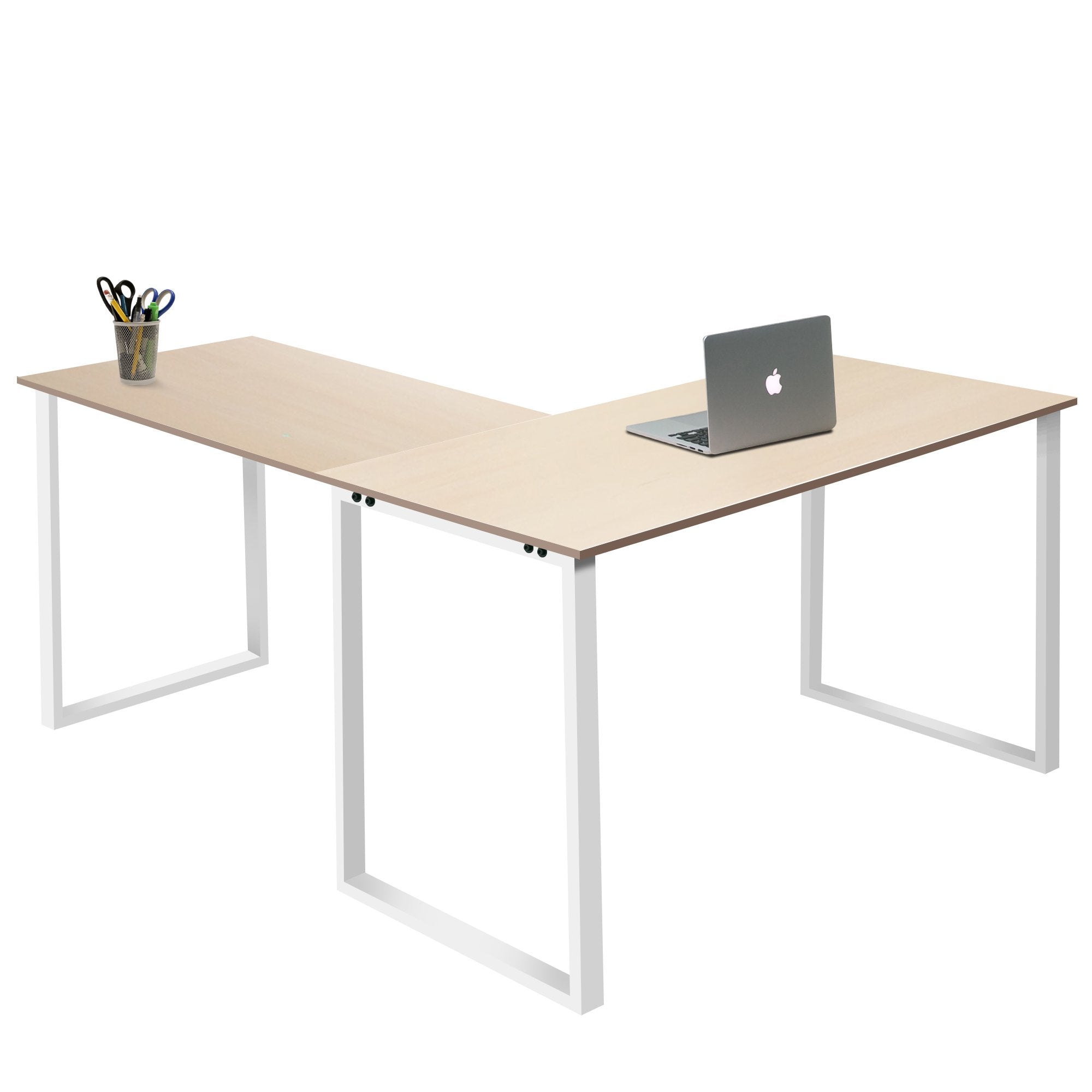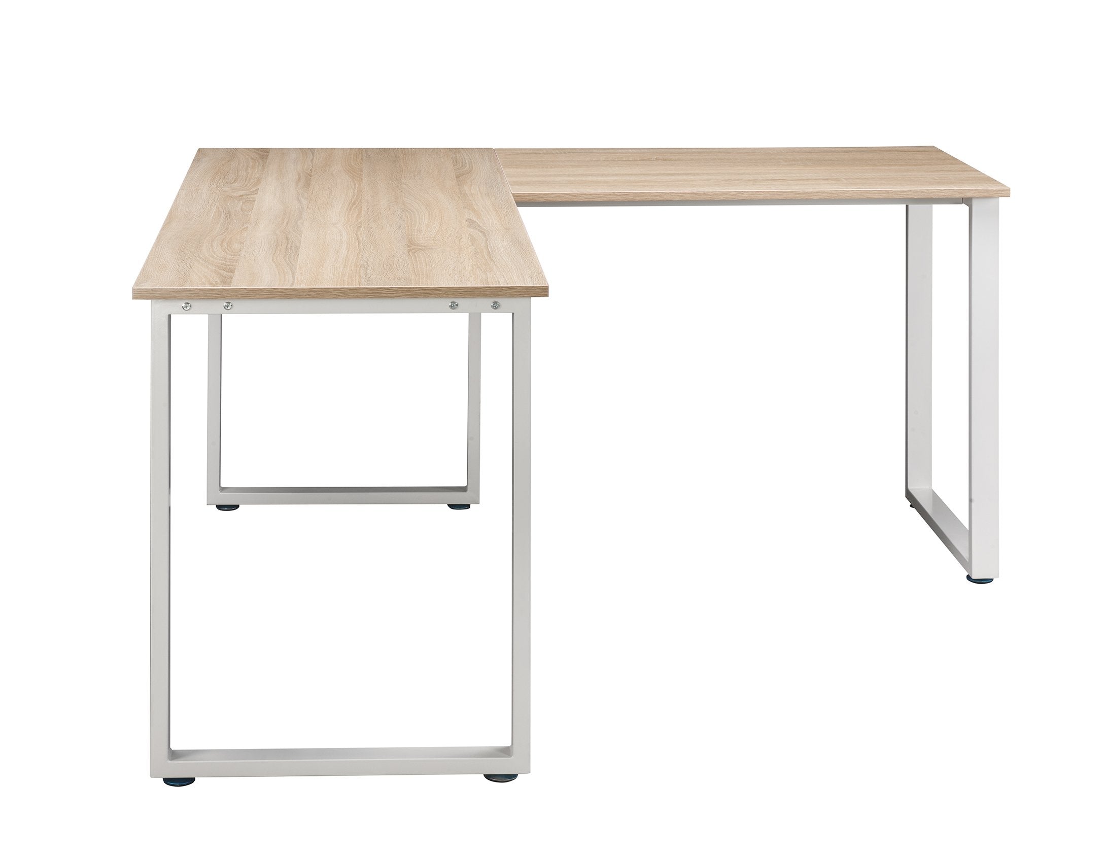 This L-shaped desk stands out with its modern, sleek and refreshing appearance. Founded atop the stylish white metal leg, in L-shape the spacious desk provides a comfortable working environment that promotes productivity.