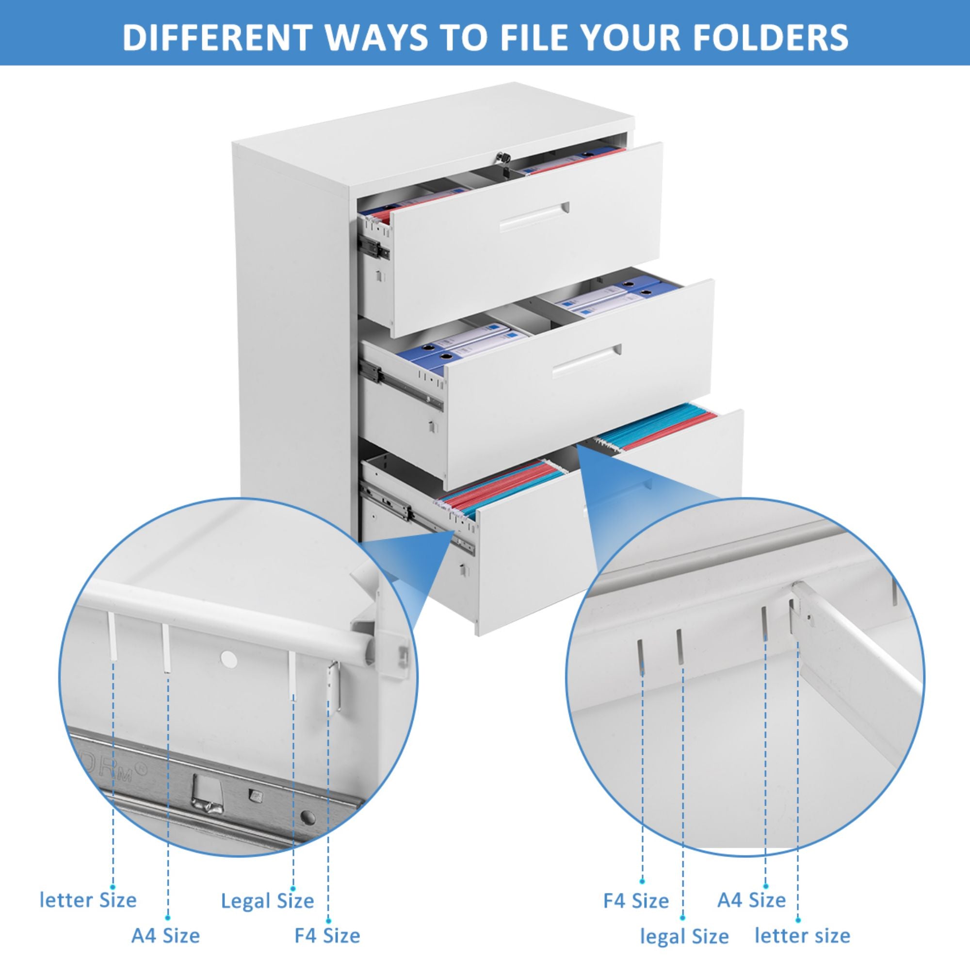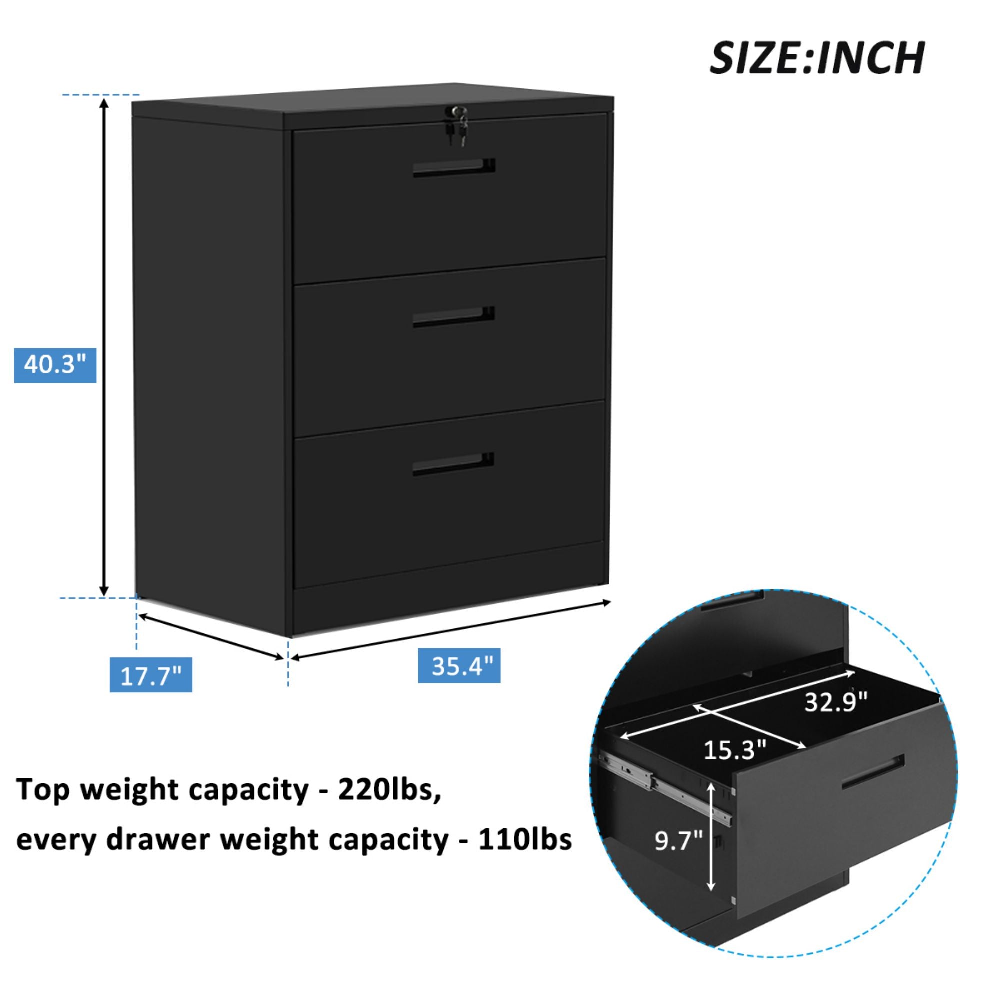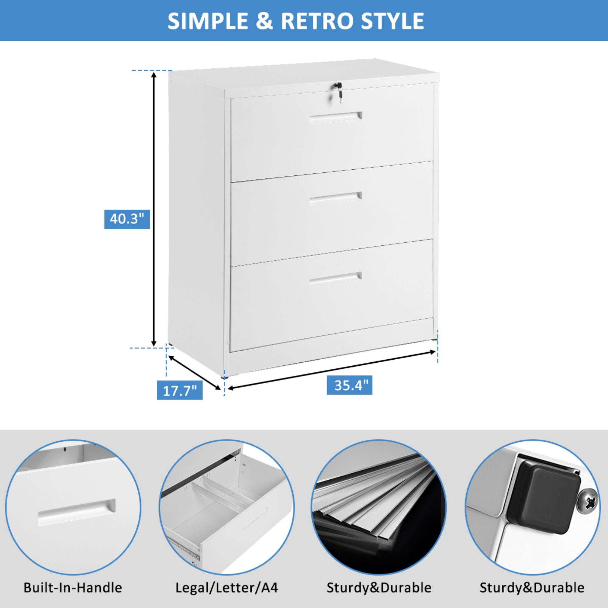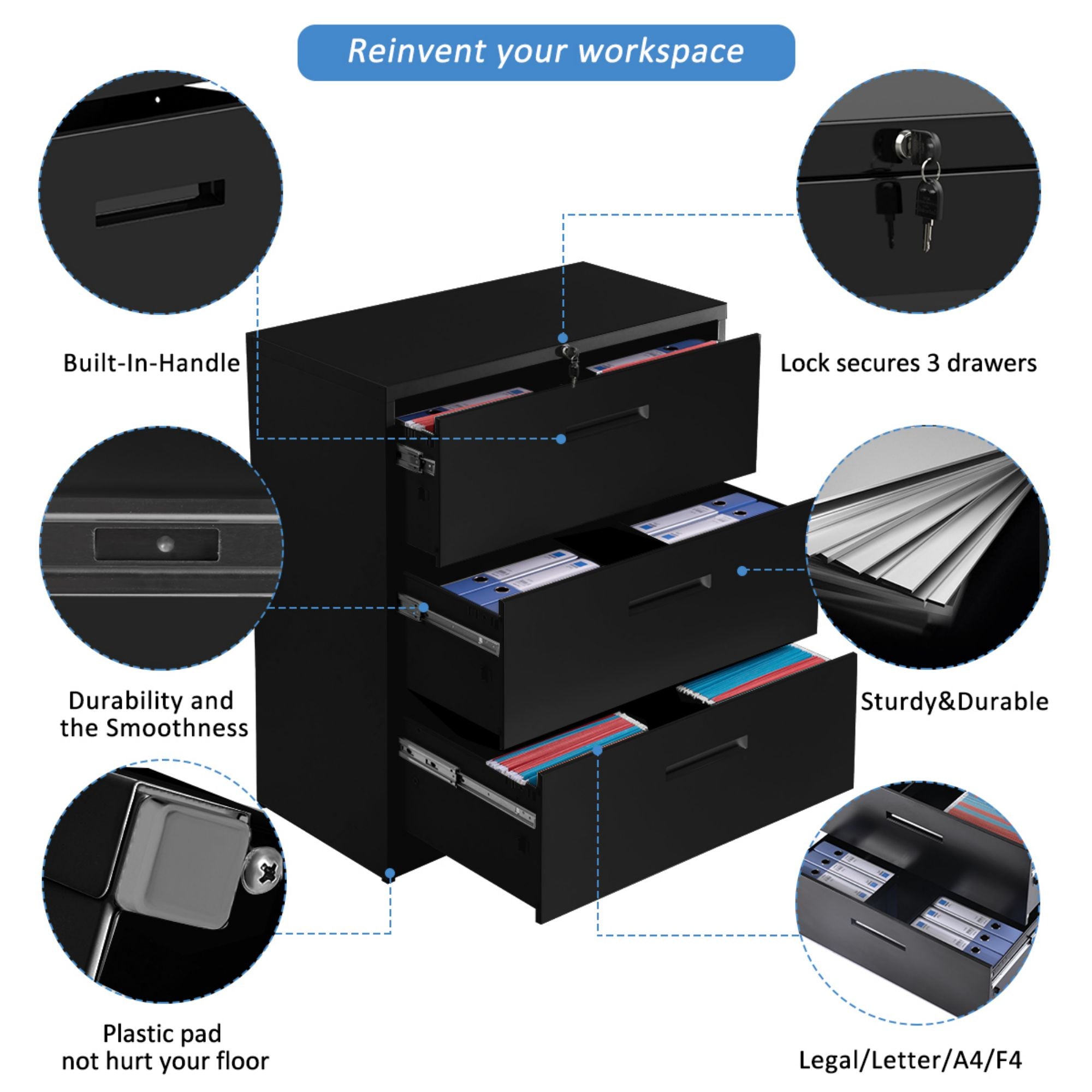 Lateral File Cabinet Lockable Heavy Duty Metal 3 Drawer File Cabinet
