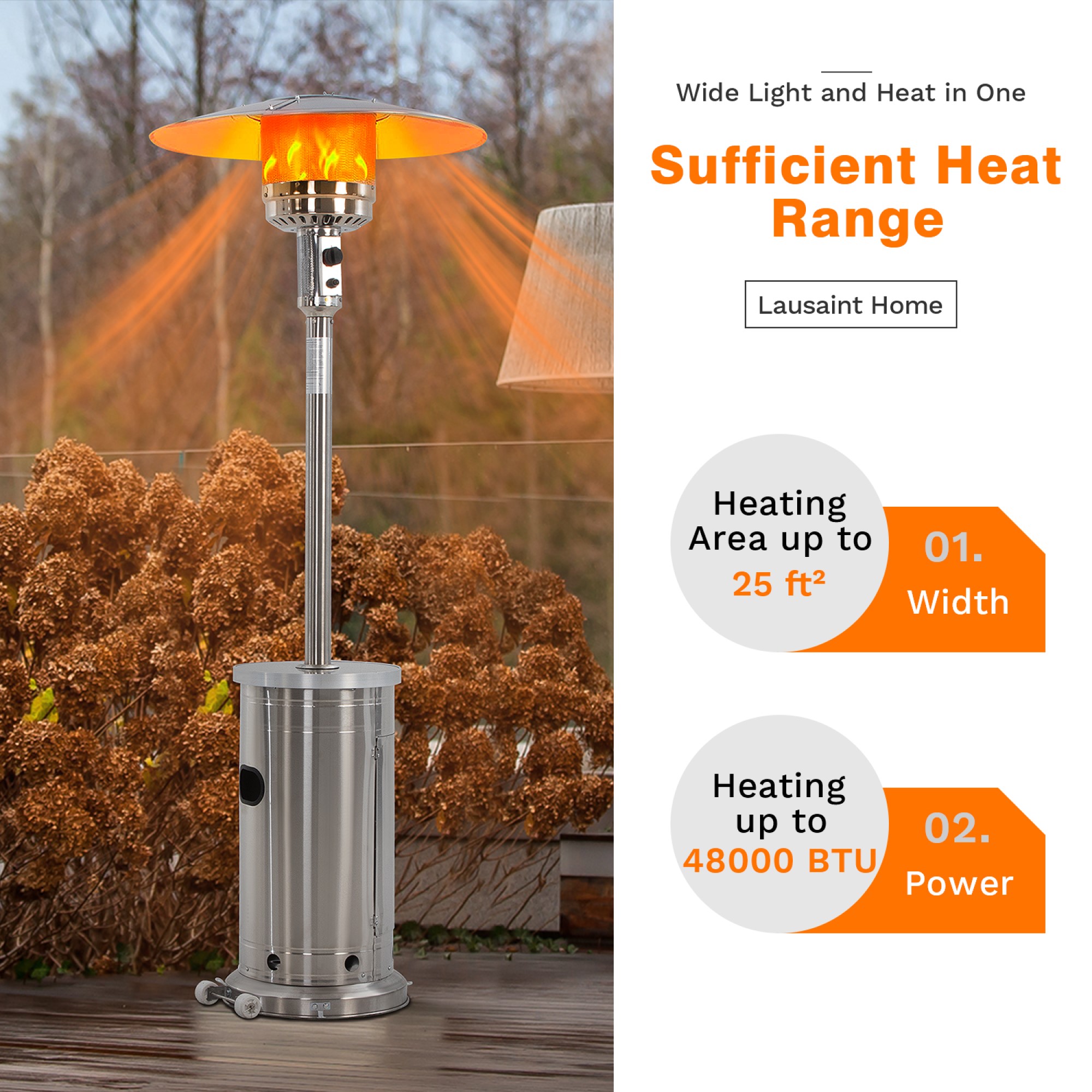 LAUSAINT HOME 48000BTU Patio Heater with Wheels,Stainless Steel Propane Gas Heaters for Outside Use,Premium Portable Outdoor Heater for Christmas Party Backyard Garden Decorations,ETL Certified