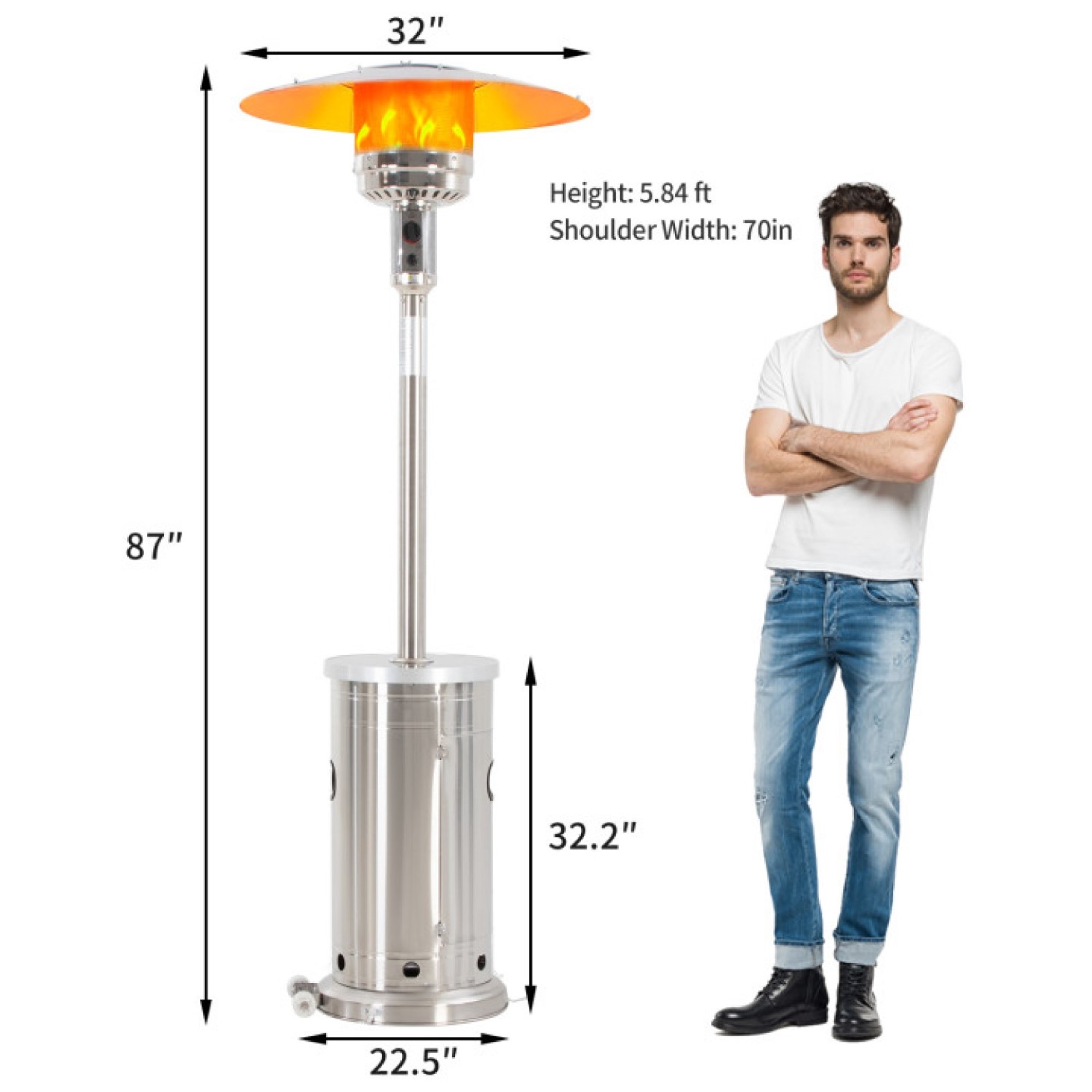 【Easily Assemble & Move】The outdoor patio heater comes with a detailed manual, you can assemble it within 20 minutes with the guidance of manual. Two smooth-rolling wheels make it easy to move wherever you need it.