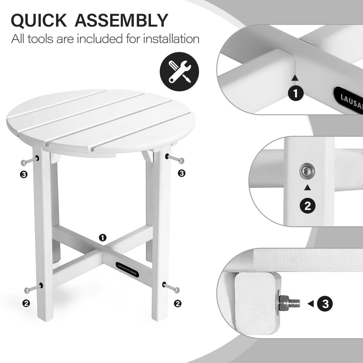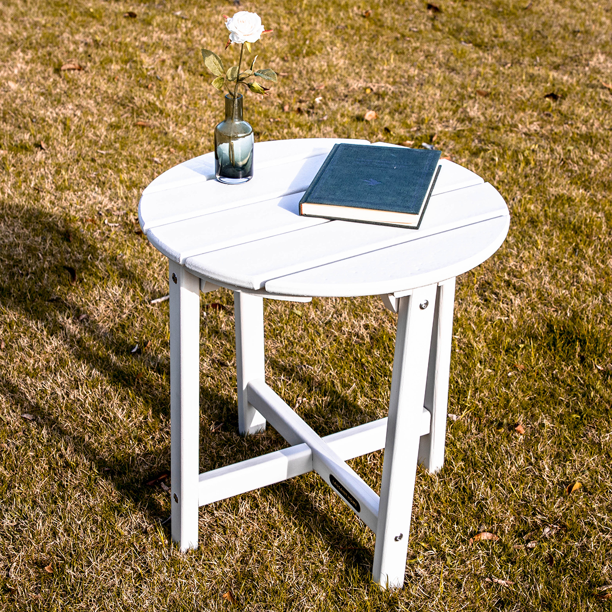 LAUSAINT HOME Outdoor Adirondack Side Table,Round Weather Resistant Coffee End Table for Patio,Easy to Assemble (Round - White)