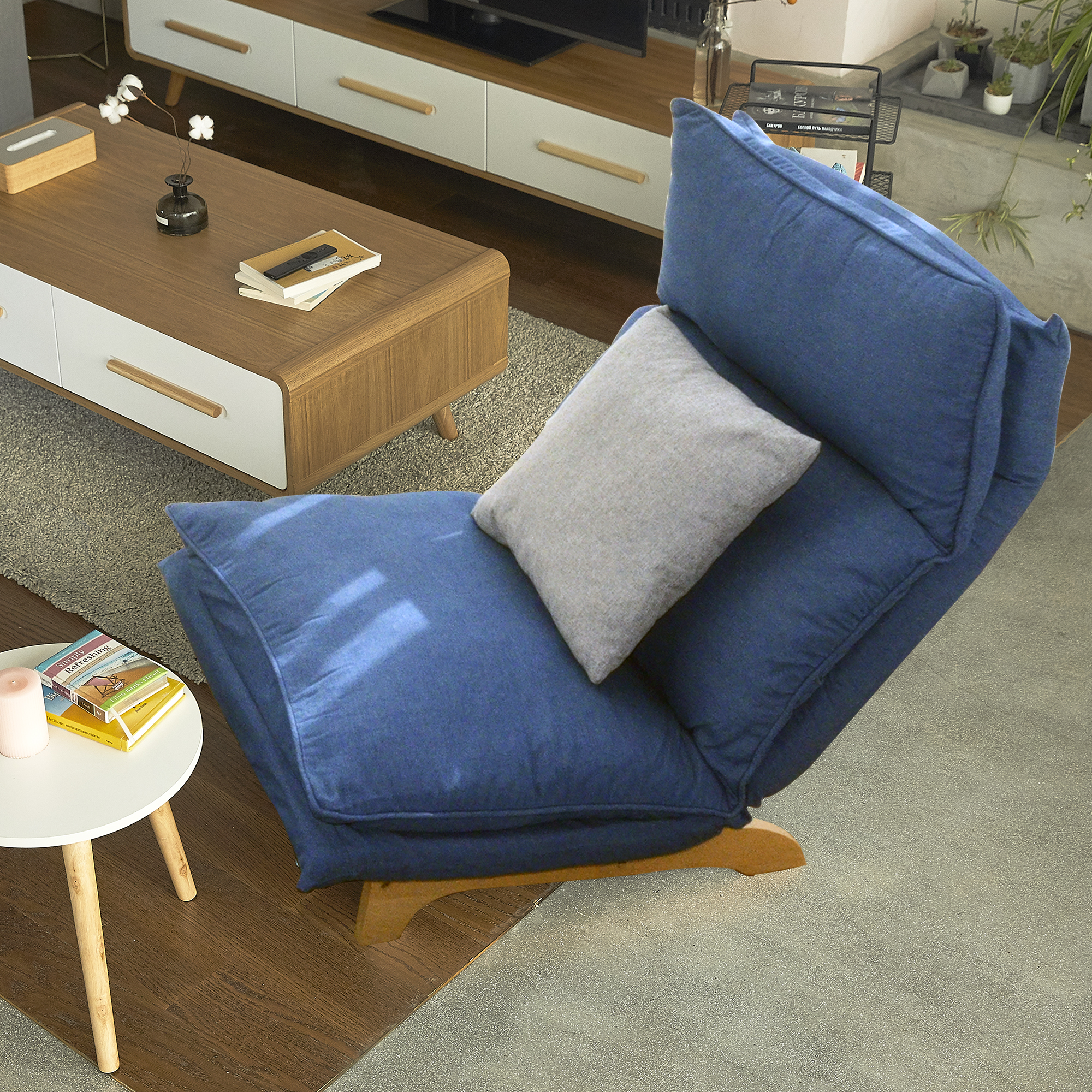 Multifunctional floor chair: very suitable for living room, bedroom, balcony and other purposes. Reading, playing games, watching TV, meditating, working by the bed. The semi-automatic pneumatic rod can adjust the angle arbitrarily, which conforms to the ergonomic design. The head and waist can be adjusted to meet any angle required for sitting and lying.