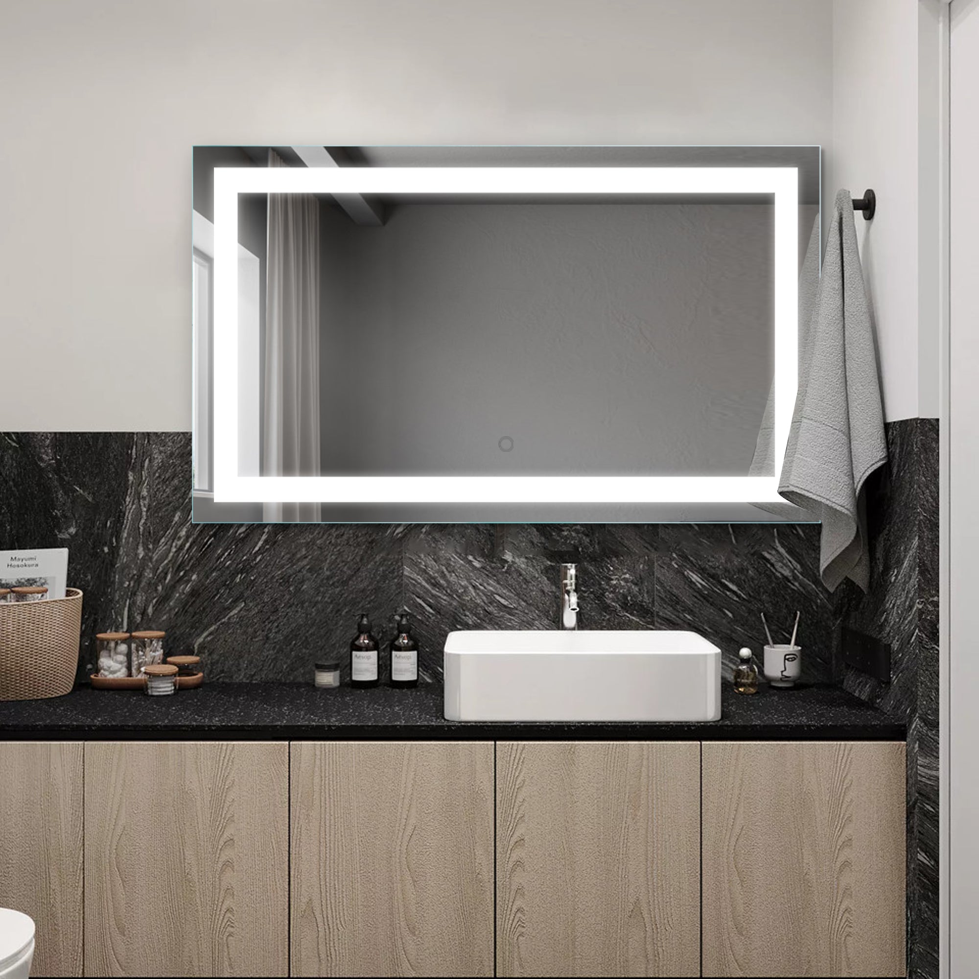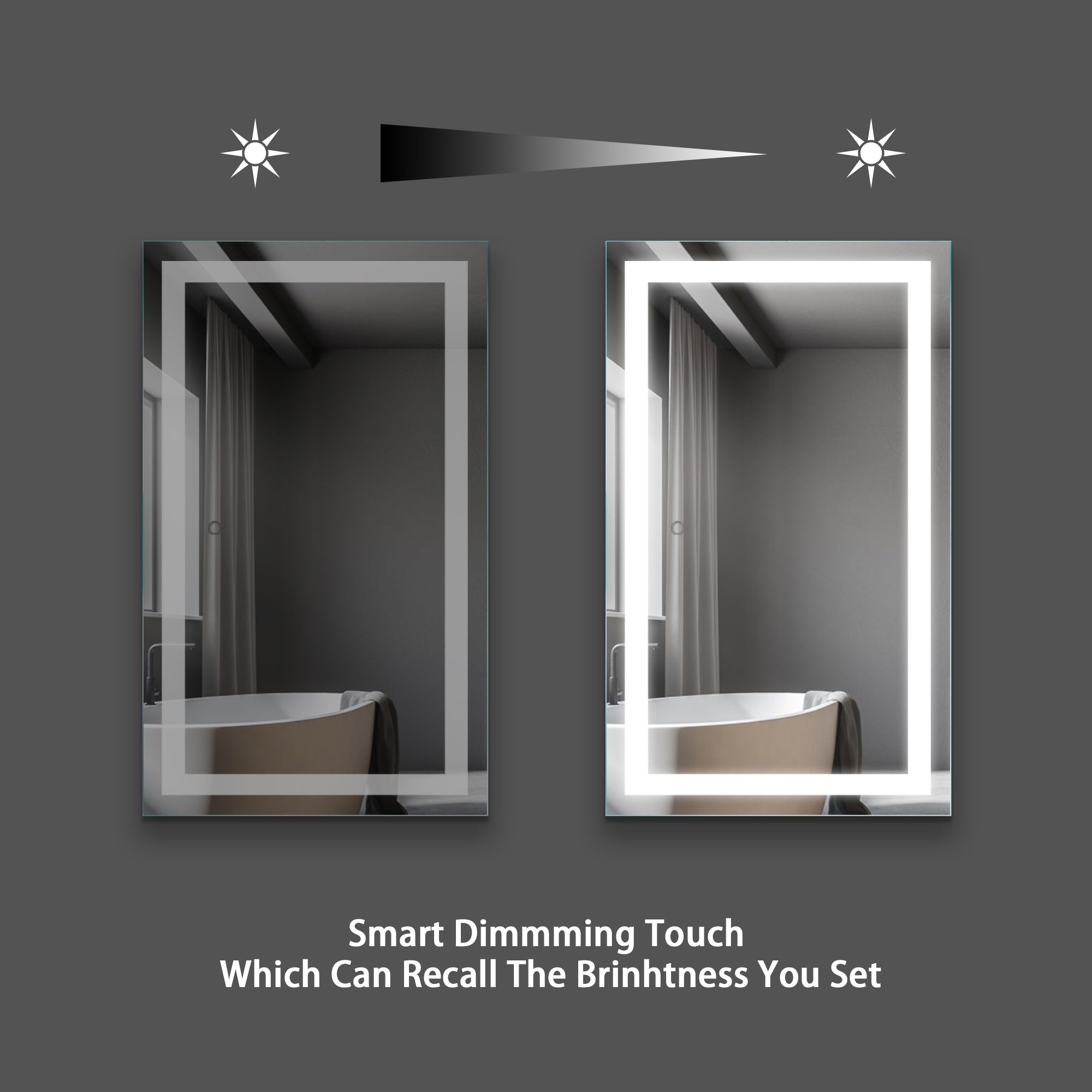 - Single touch button with light switch, brightness adjustment and defogging simplify the mirror space and highlight technology. The smart IC chip brings the ultimate control experience.
