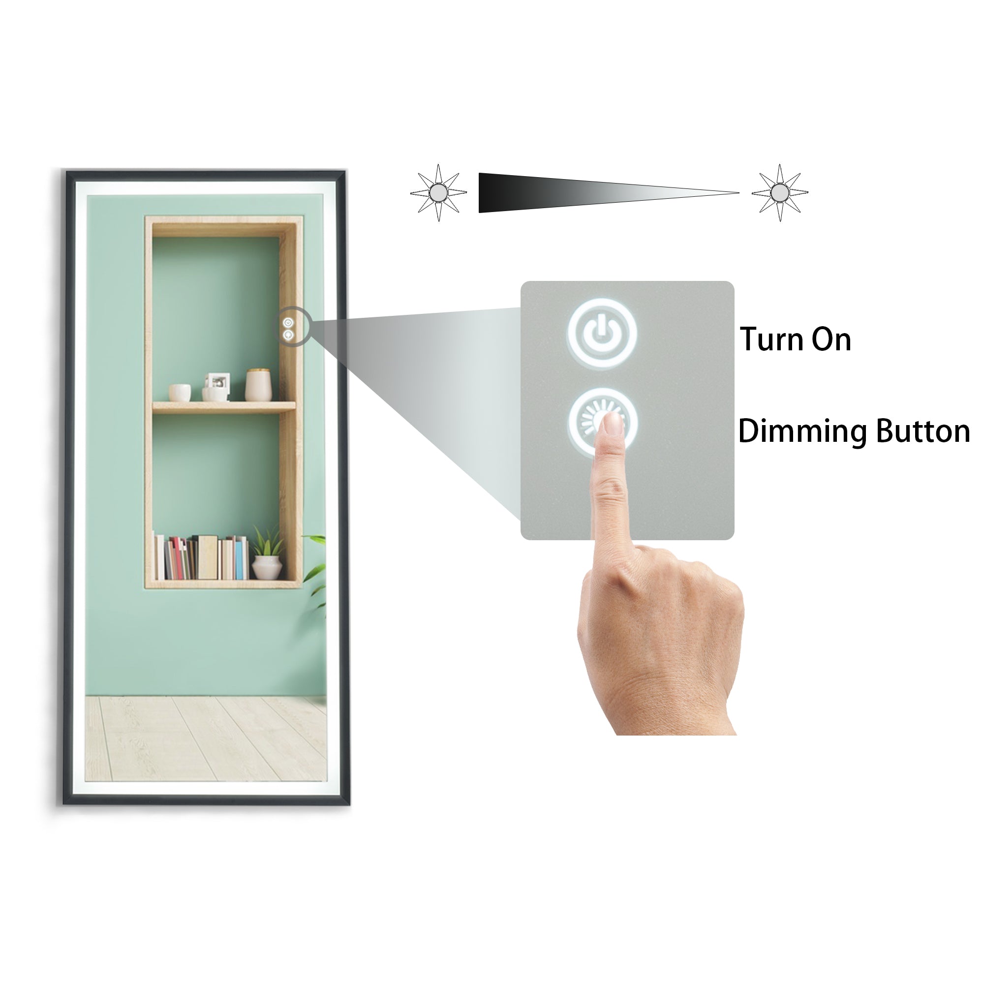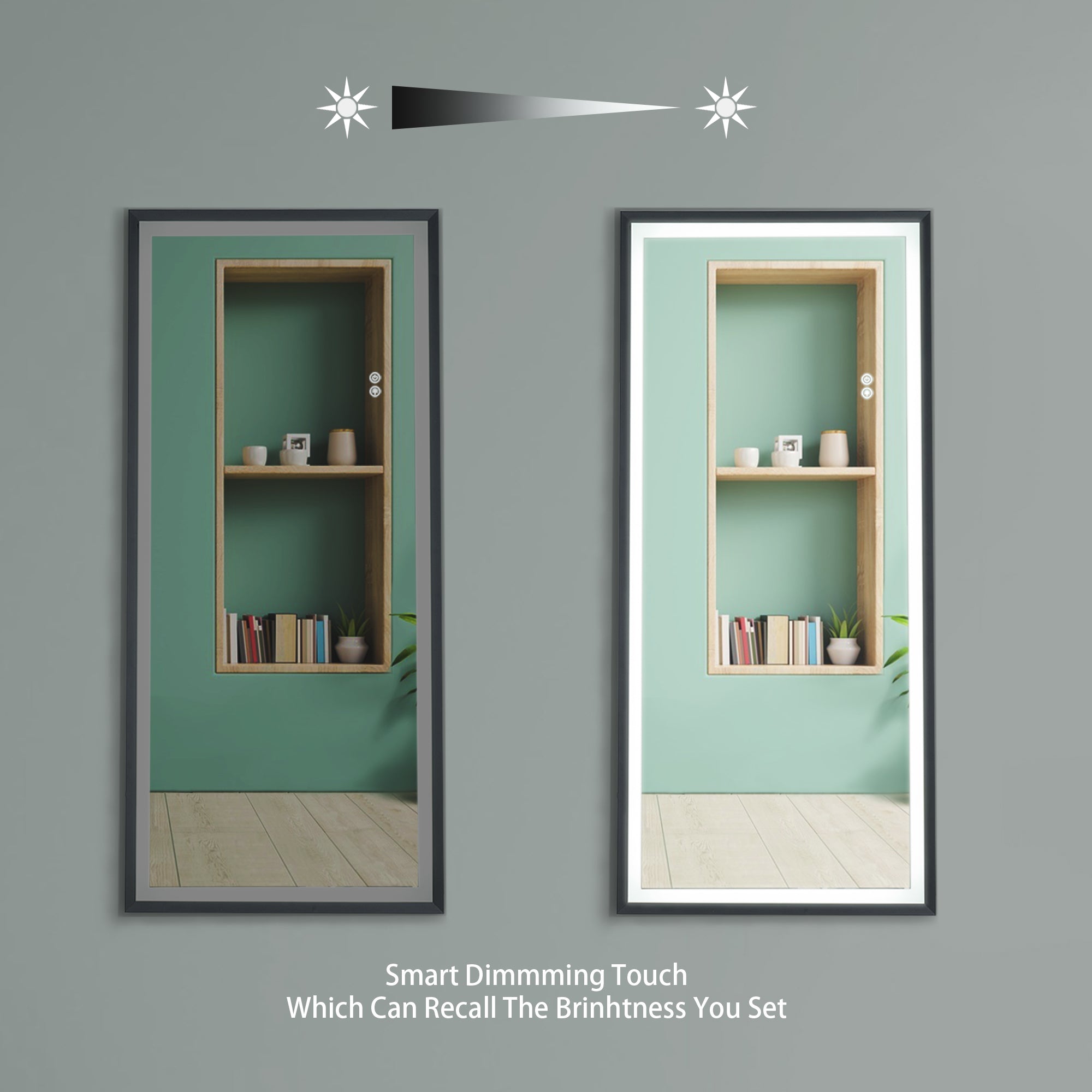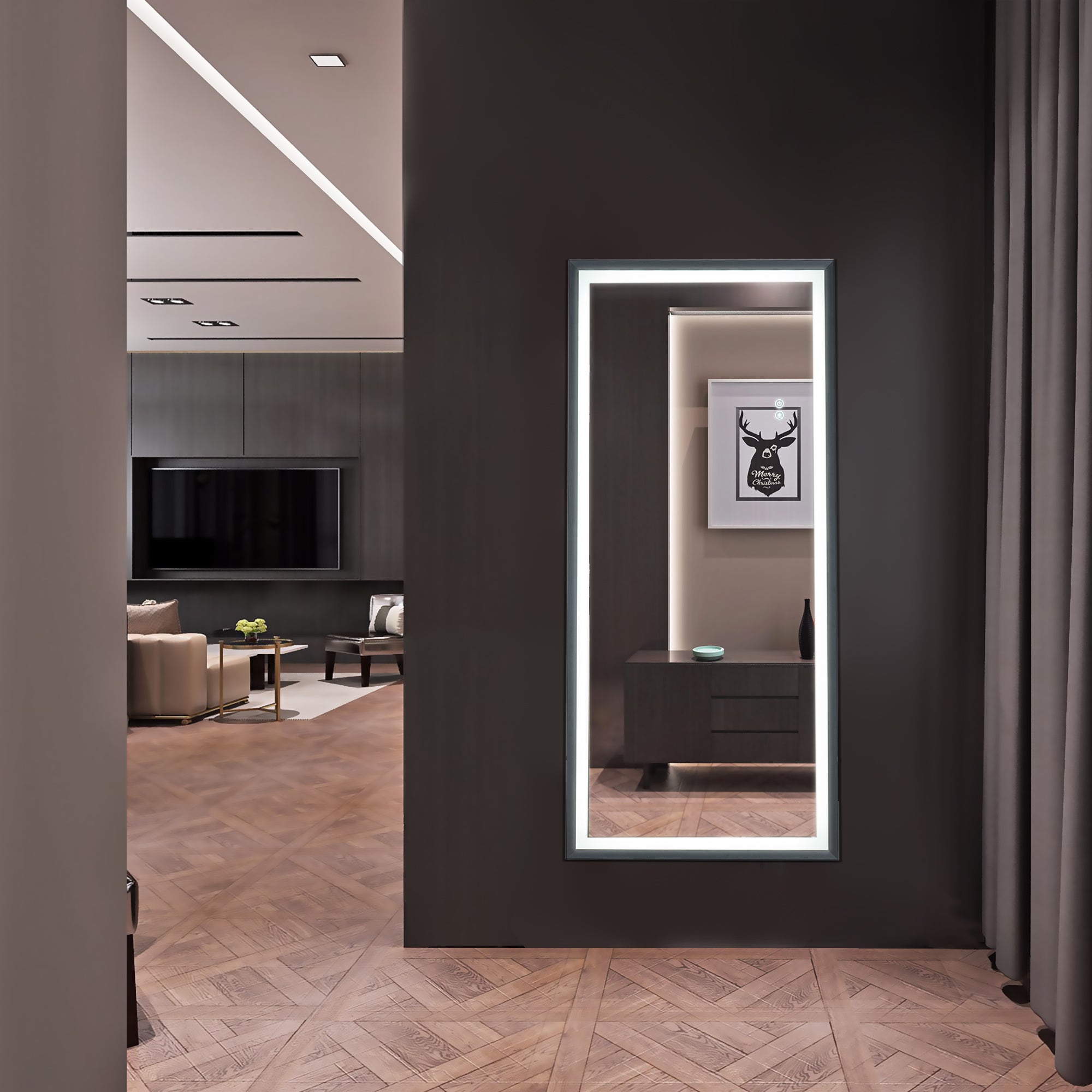 LED Wall Mounted Lighted Floor Mirror with Entry Dimmer Touch Switch