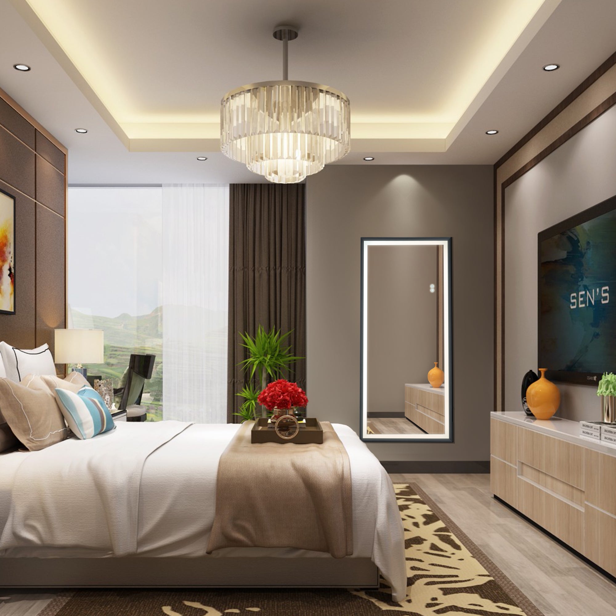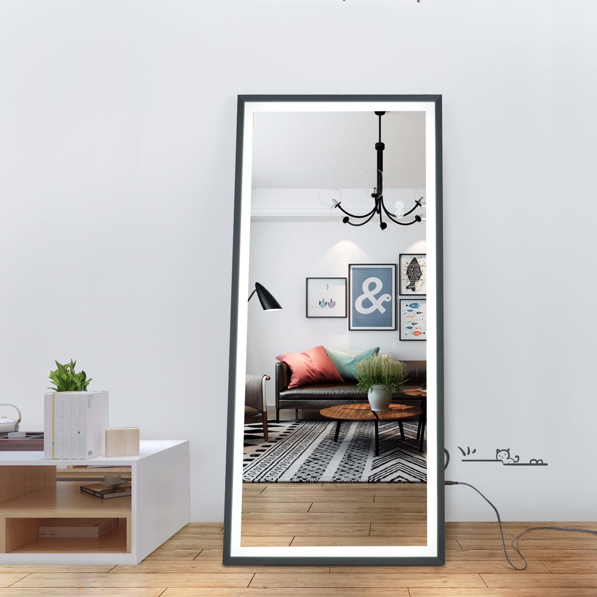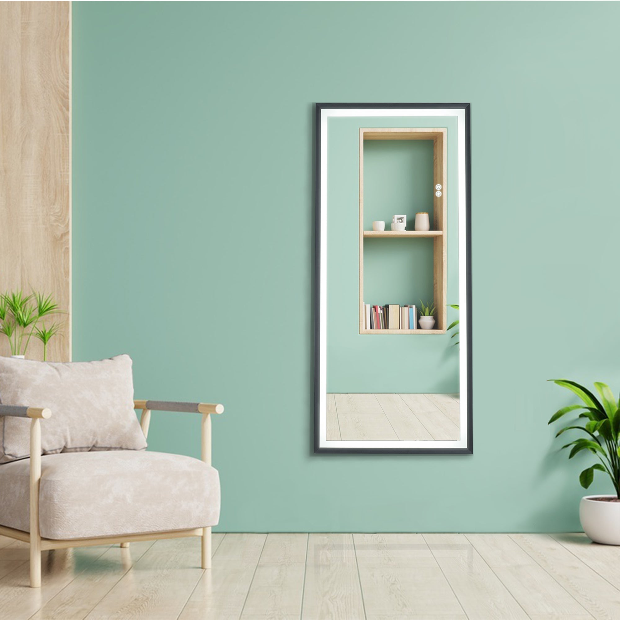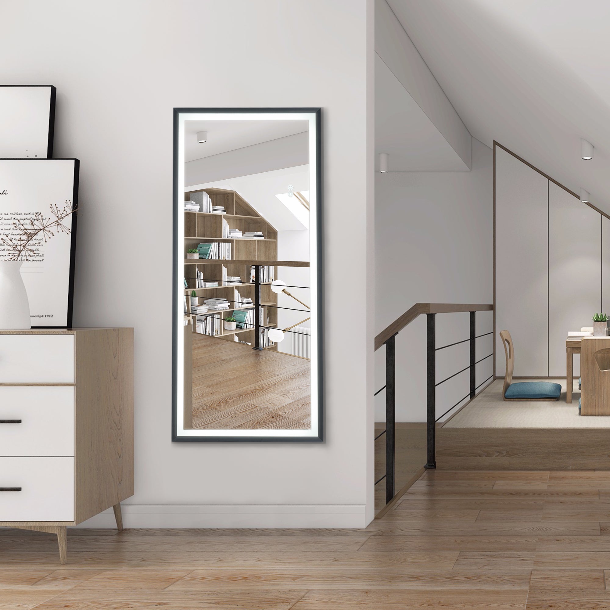 LED Wall Mounted Lighted Floor Mirror with Entry Dimmer Touch Switch