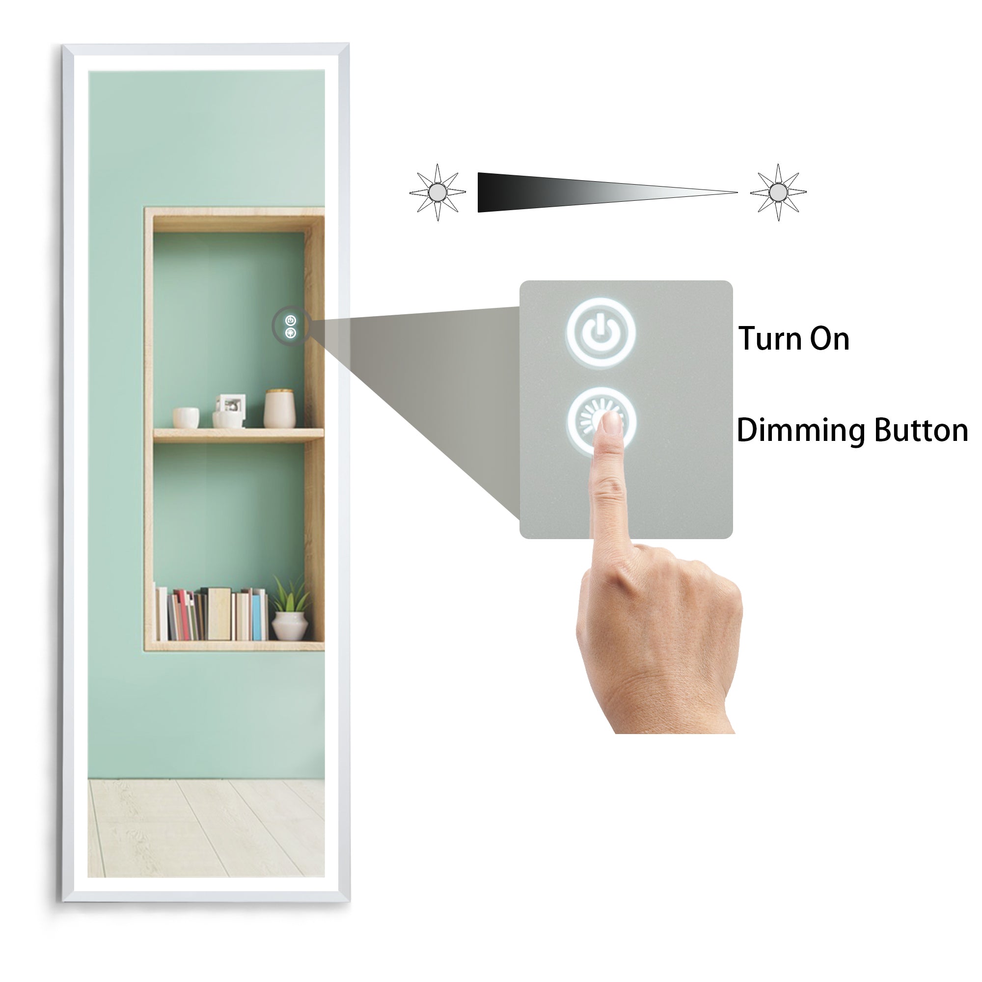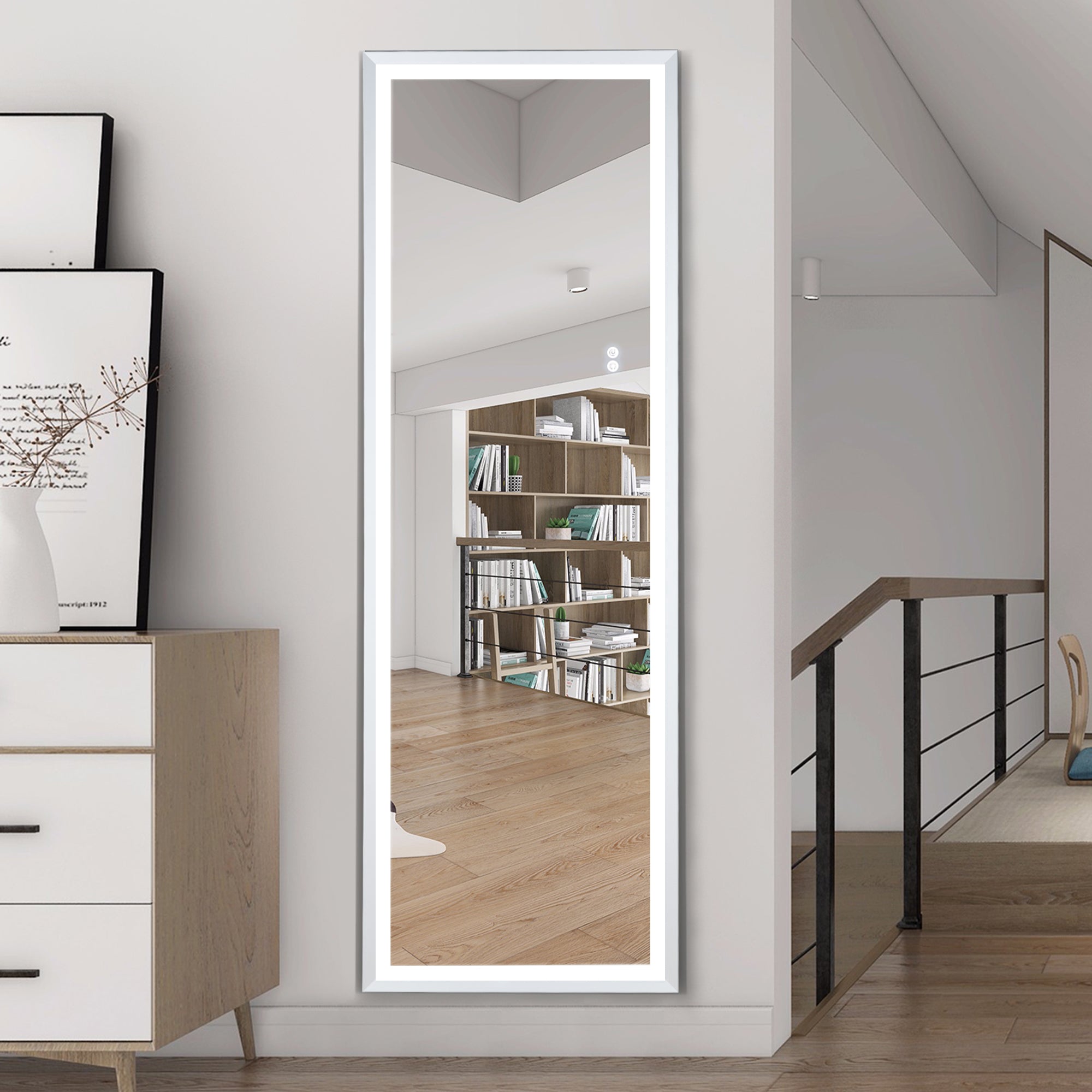 LED Wall Mounted Lighted Floor Mirror with Entry Dimmer& Touch Switch