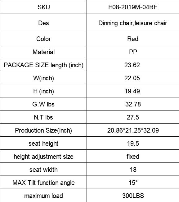 Leisure Chair dinning chair with pad custion, tilt degree 15°,300LBS, red color,set of 2