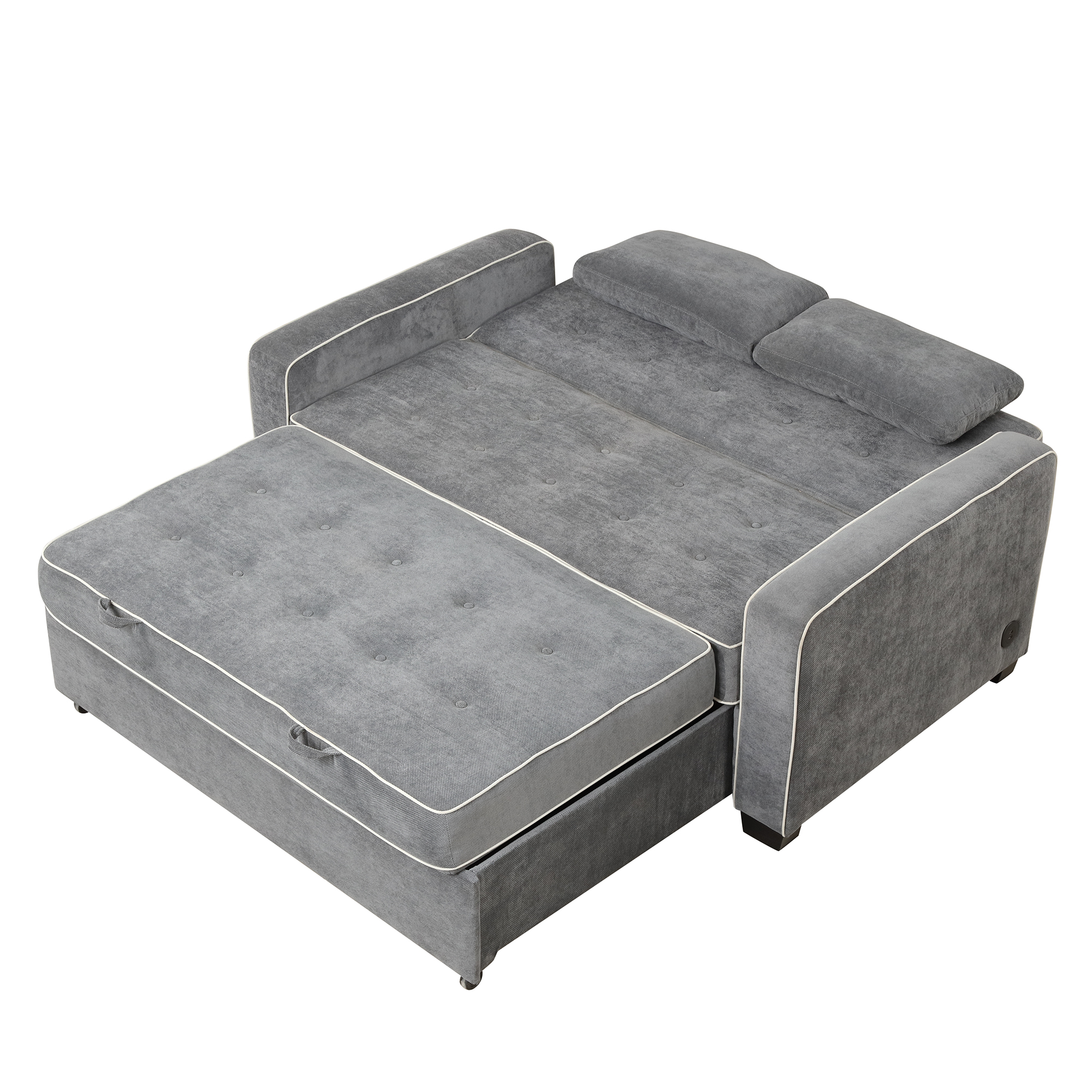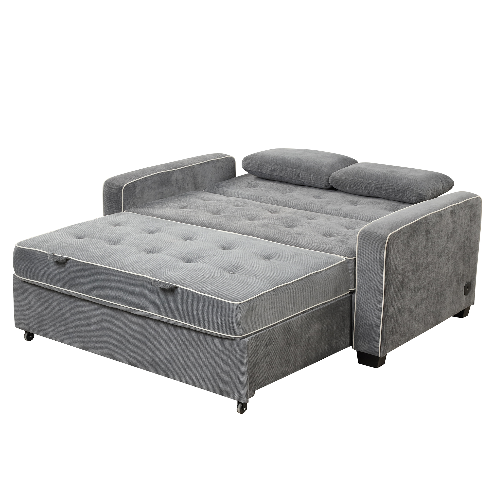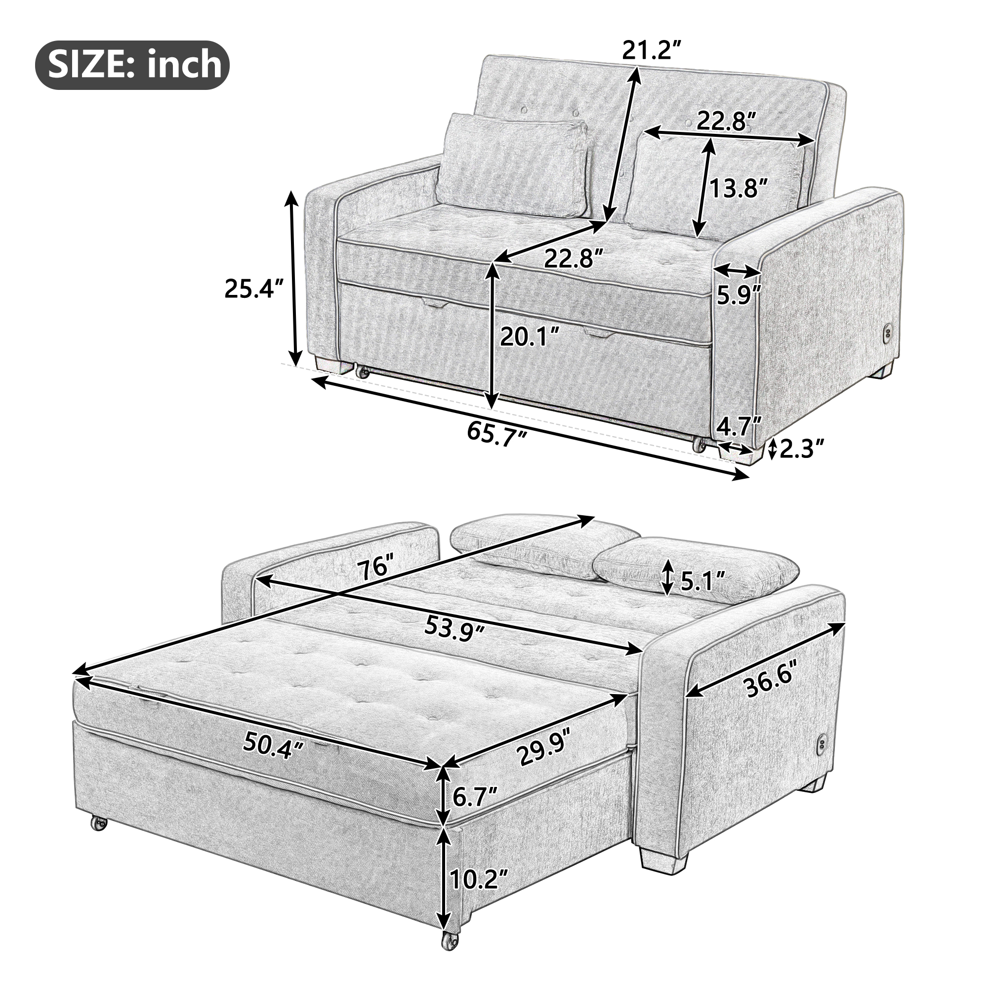 【Frame & Fabric 】 The frame of this sofa bed is manufactured of article plywood to guarantee the stability and durability. the fabric of this sofa adopts linen , which is durable and winkle resistant.【Solid rubber feet】To ensure sufficient load-bearing capacity, this sofa bed has solid rubber feet, and that makes the load-bearing capacity of this sofa bed up to 500lbs .【Backrest & Seat 】In order to provide a comfortable and comprehensive using experience,this sofa bed has the same padding material for the backrest and cushion on the seat, that includes spring package and high-density foam , which will offer you extra support and comfort.【Multiple Functions】The backrest of the sofa bed is adjustable and set at three different angles, 180°, 145° and 110° which can meet different usage needs. The right armrest of this sofa bed is equipped with a circular USB charging port, which is convenient for the use of electronic devices.【Suitable for Any Scene】It is suitable for a lot of spaces, such as guest room, living room, small bed room, etc.▲Product Details: