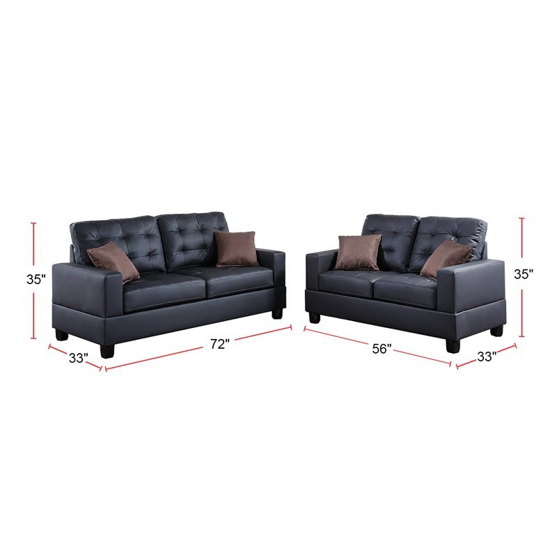 Description:-Believe in the possibilities of boldness with this 2-piece sofa set that includes a loveseat and a 2-seat sofa. Plush cushion, accent tufting and light stitching define this amazing seating space great for the modernly designed home. Available in faux leather black, beige and espresso, and grey (linen-like fabric).Dimensions:-Sofa :- 72" x 34" x 37" HLoveseat :- 56" x 34" x 37" HListing Includes :- Sofa And Loveseat Only.Shipping include Curb side Delivery, No inside home delivery.Simple assembly require.Shipment will take around 8-14 Business daysFeatures:-•Black•Faux Leather•Accent Tufting, Plush Cushion•Pillows Included•Pine Wood and Particle Board w/ Solid Wooden Legs