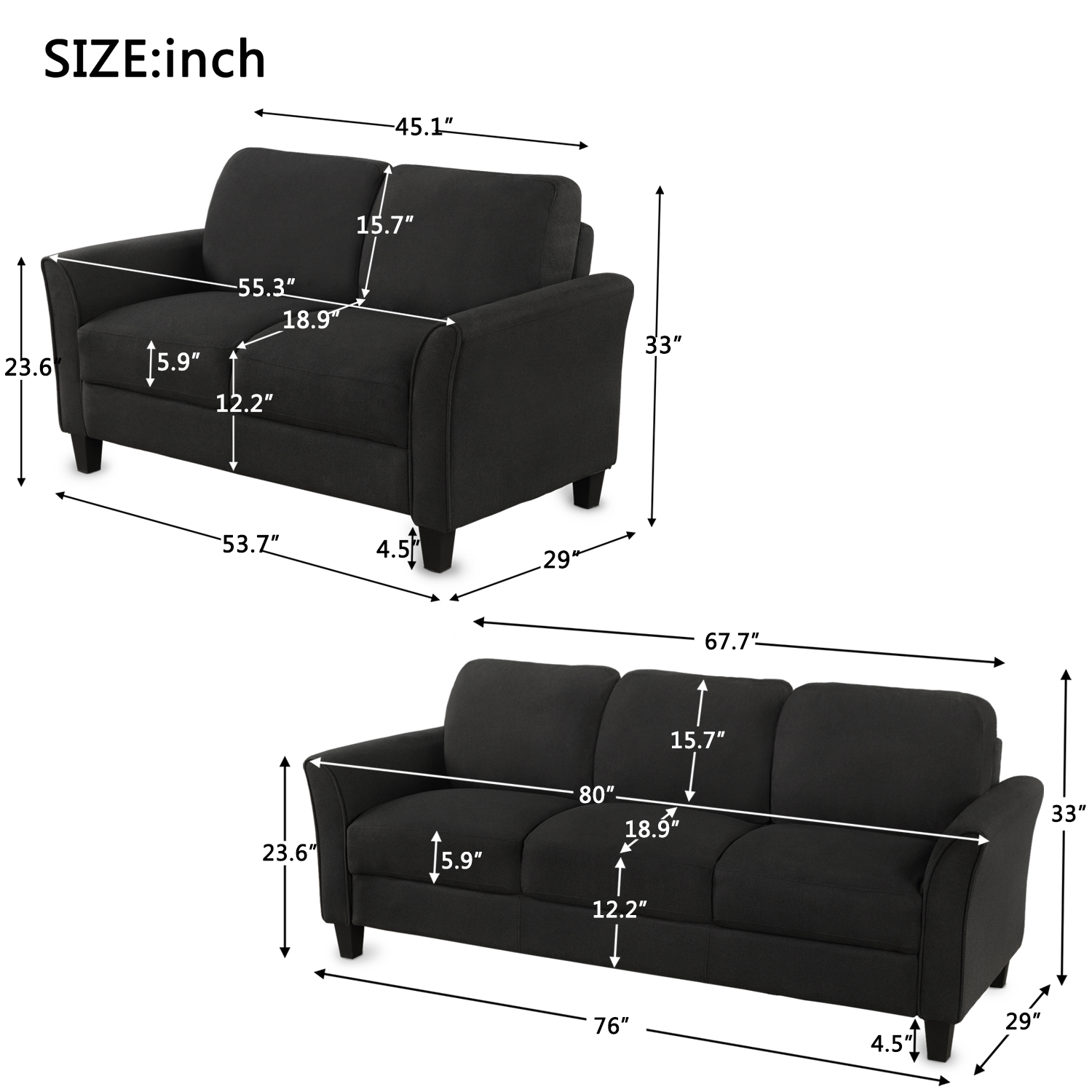 Sofa set includes: 1 x loveseat, 1 x 3-seat sofa