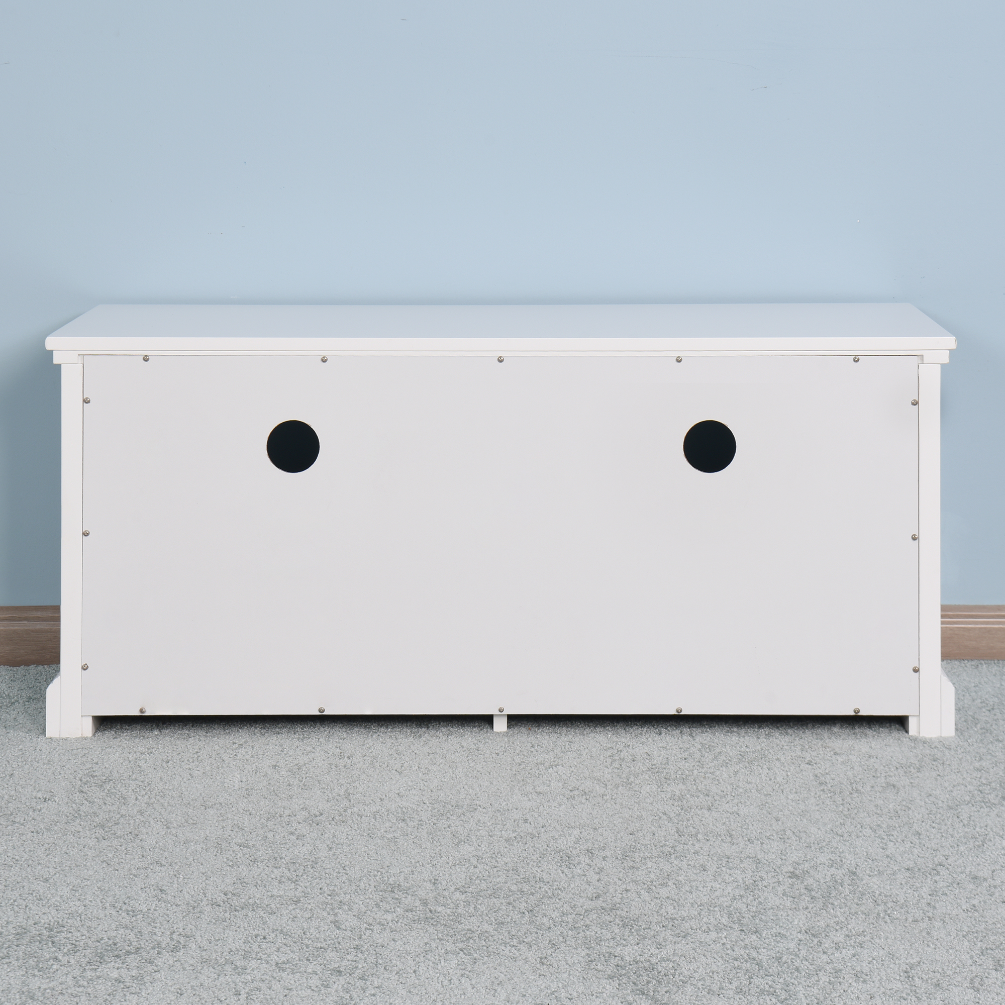 Suited for modern farmhouse and industrial spaces alike, this TV stand is a versatile pick for the living room