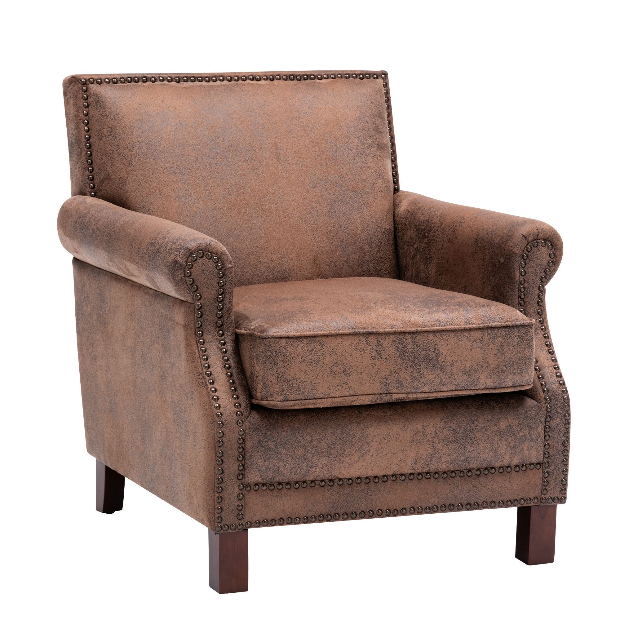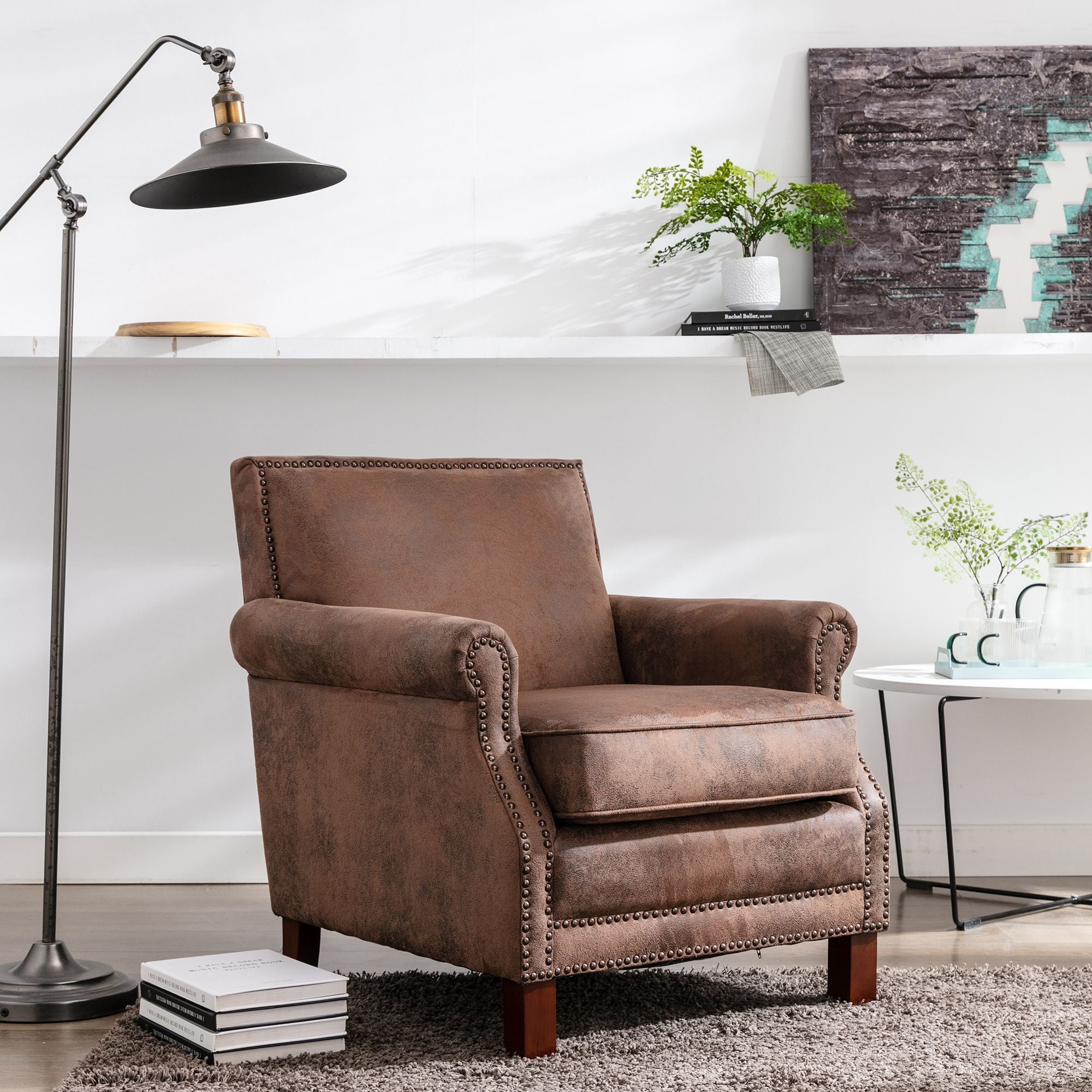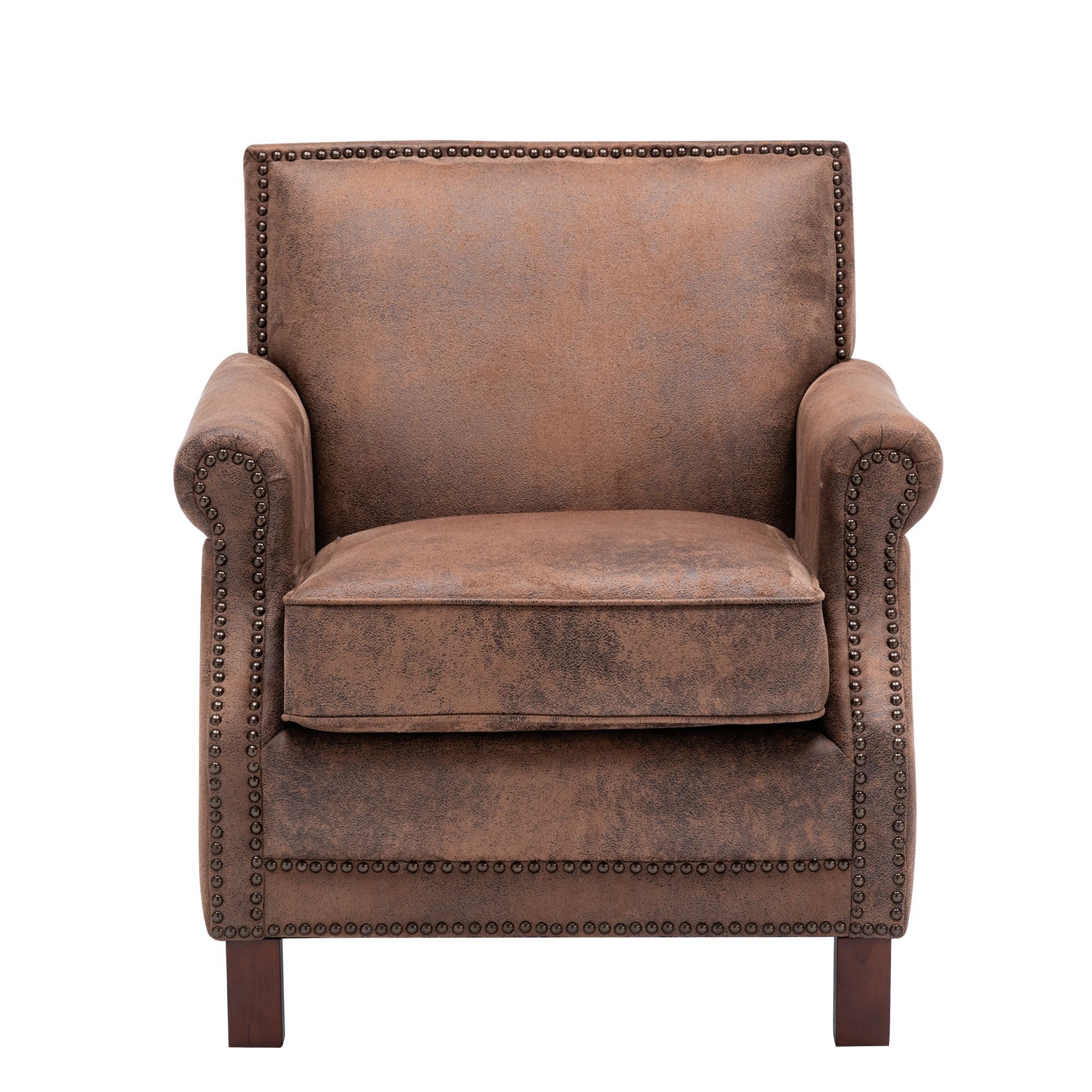 Living Traditional Upholstered Fabric Club Chair with Nailhead Trim, Antique Brown