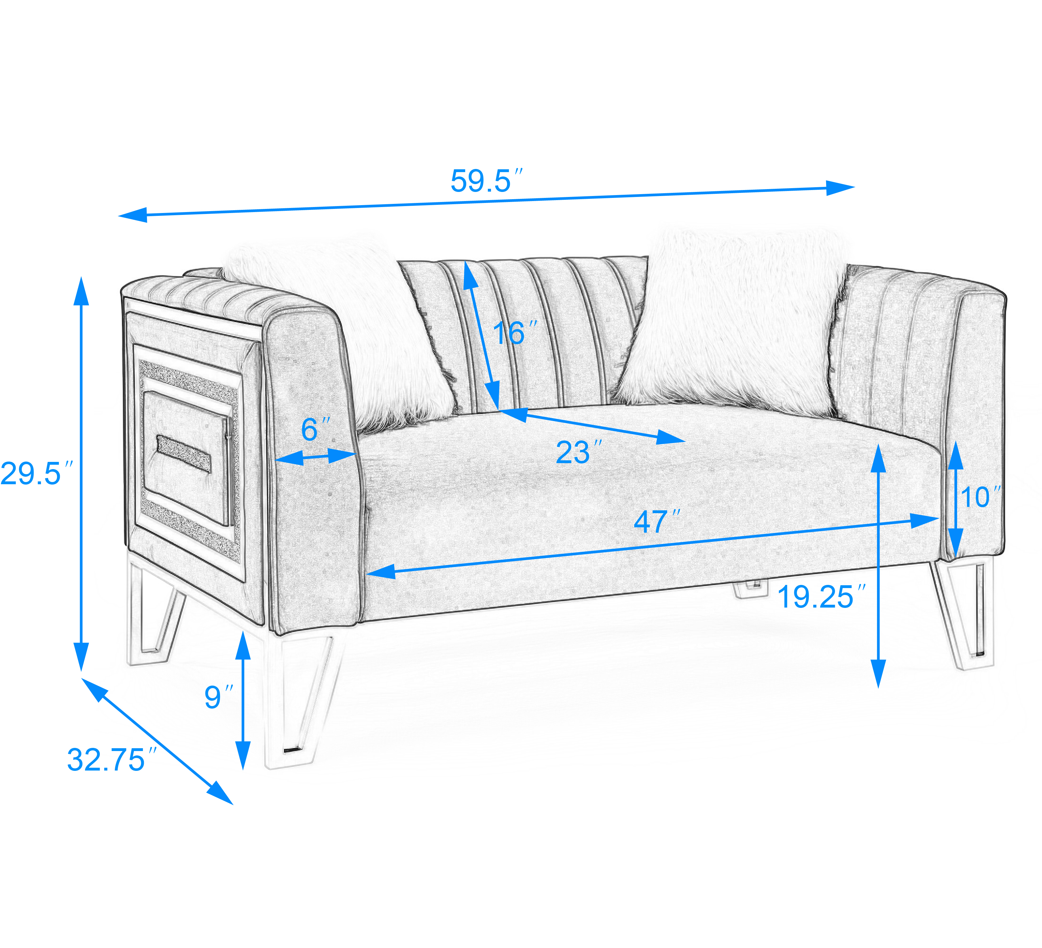 Dimension | Loveseat Size:59.5”Lx32.75”Wx29.5”H |