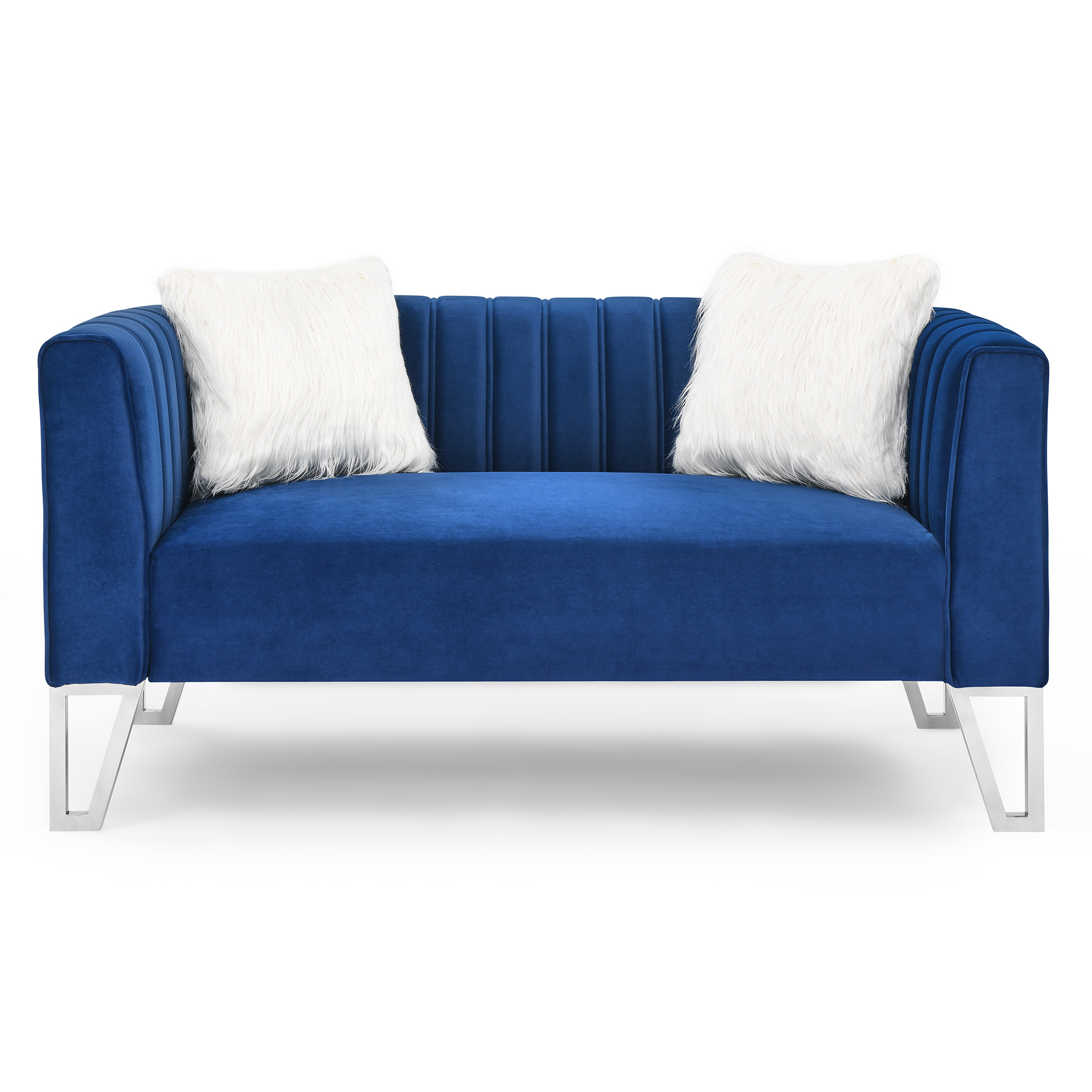 The perfect pick for meeting your aesthetic needs, this set features a contemporary look and a streamlined silhouette. Dramatic channel tufting on back lead the modern fashion and the mirrored side trim with faux diamonds and stainless steel legs provide a unique modern flavor.