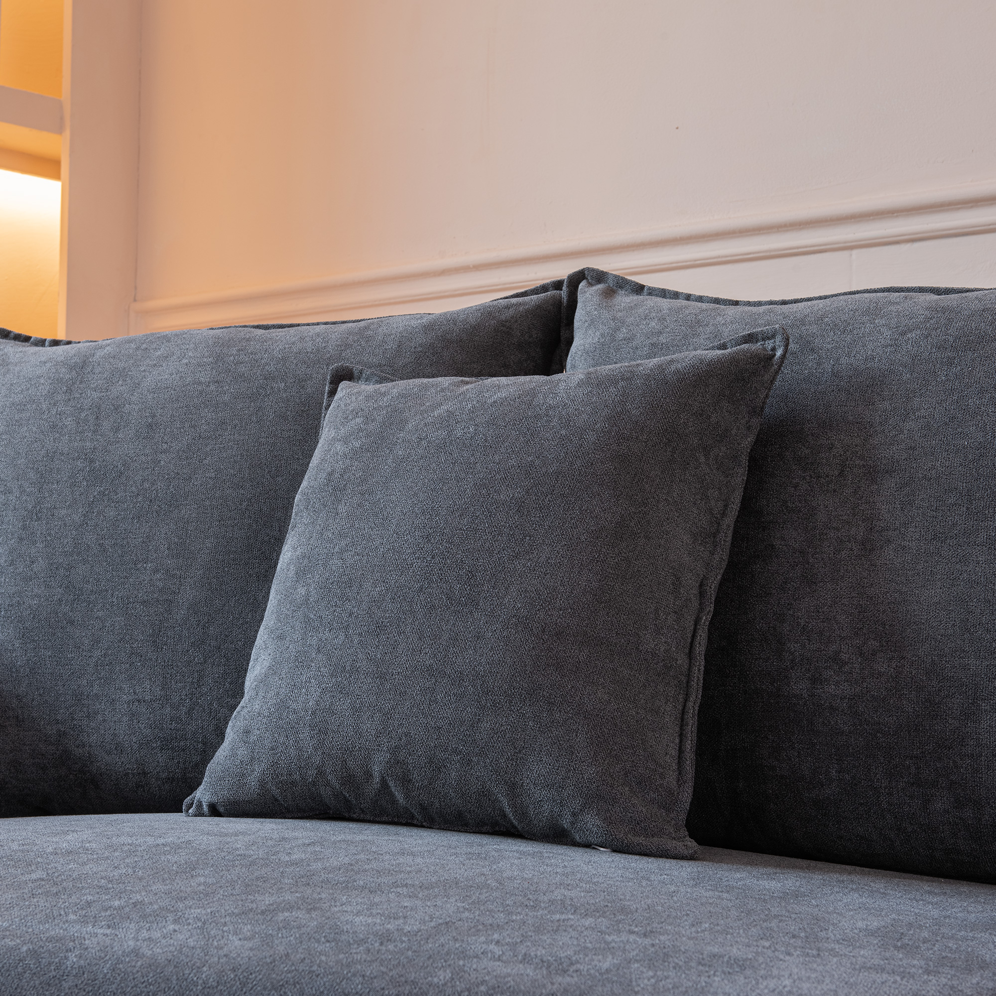 5.Following steps in order, you can easily assemble all parts into a complete sofa by means of enclosed tools.