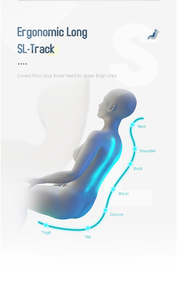 - Meet Different Massage Needs: 4 preset auto modes: Swing, Refreshing, Partial Care, SPA; 6 massage techniques: Kneading, Shiatsu, Guasha, Clapping, Tapping, Knocking. Ergonomic Long SL-Track covers from your lower head to upper thigh area. Airbag massage help release the tension of buttocks and calf.