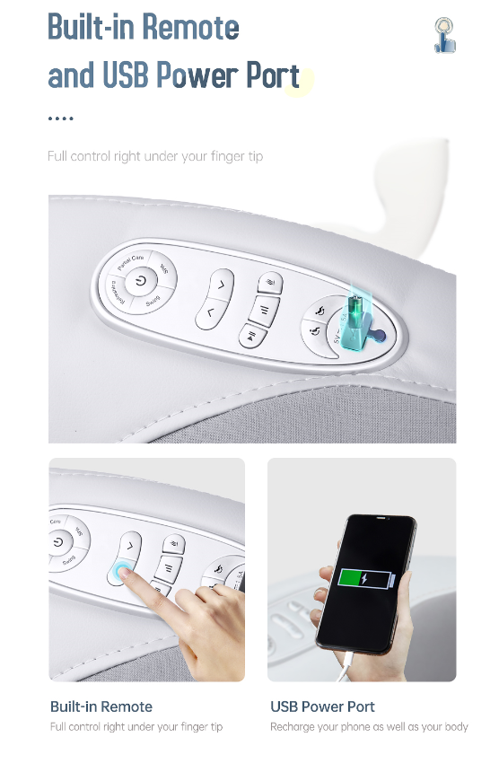 Convenient: The product is one-piece packaging, and can be used without installation. Built-in Remote: full control right under your finger tip. USB Power Port: recharge your phone as well as your body.