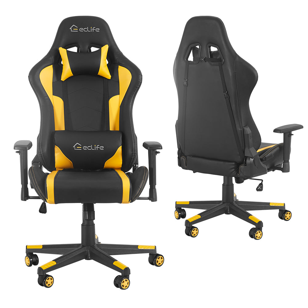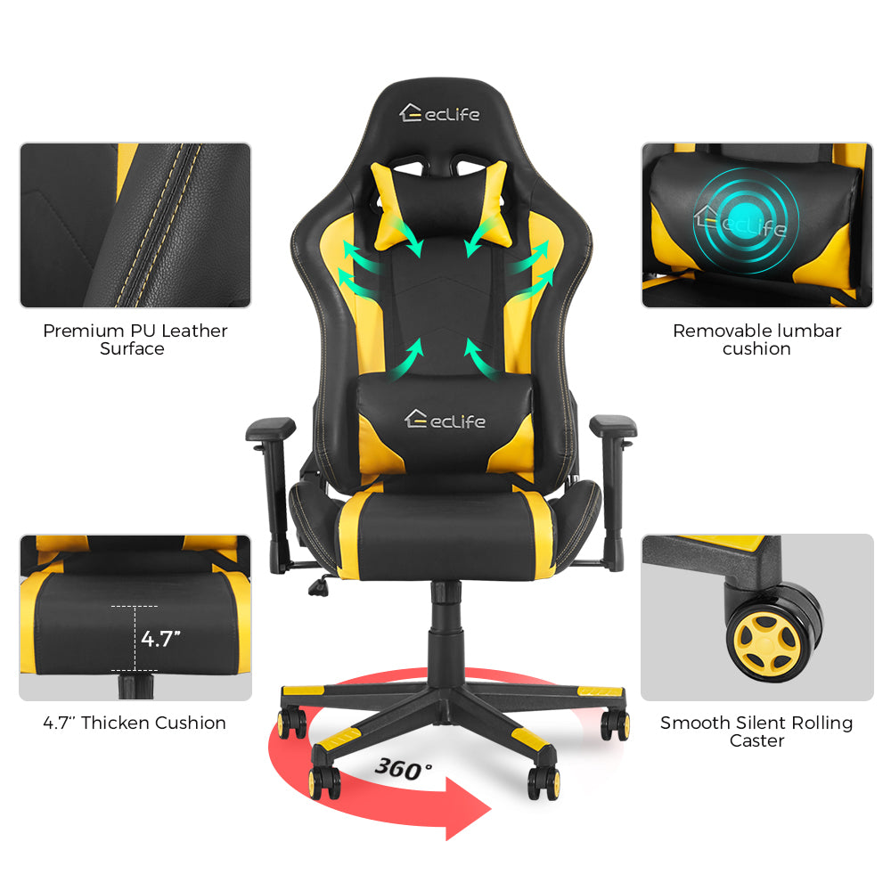 Massage Gaming Chair with Removable Massage Lumbar Cushion-Yellow