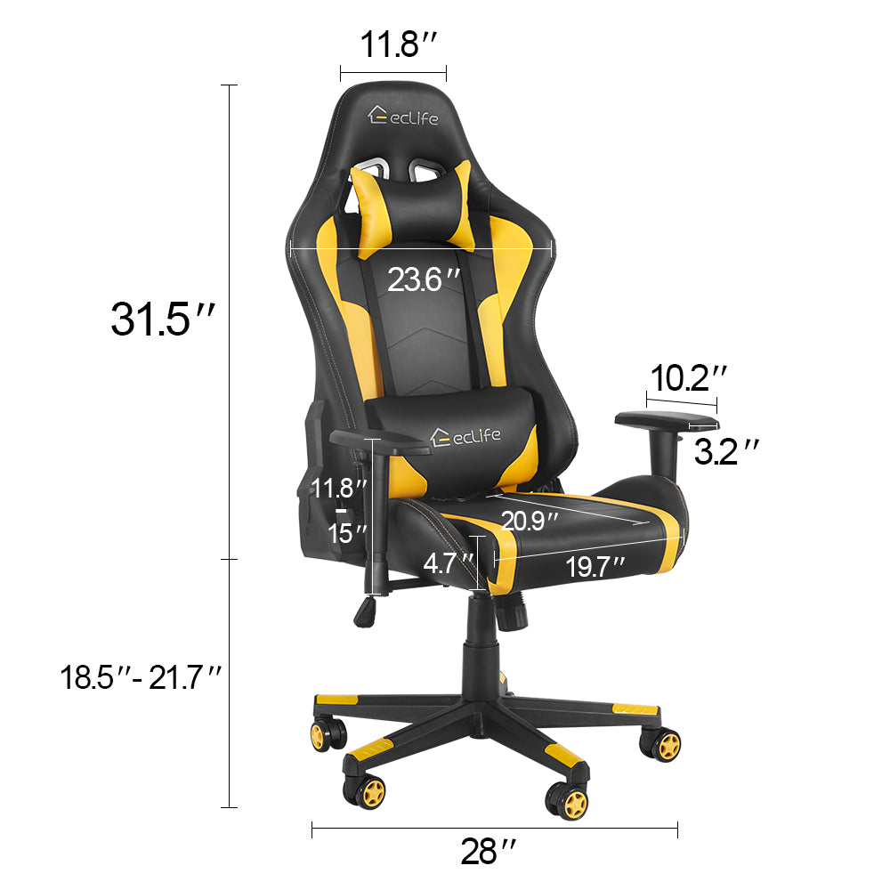 Sizable & Excellent Comfort: This chair is a stylish addition to your gaming station, a master touch to your office. Featured after racing car, embraced wing back / Adjustable padded armrest / ergonomic cushioned seat consist its contoured, segmented comfort padding. Comfy headrest, Removable Massage Lumbar Cushion & retrace-able add special care when choosing multiple reclining positions. Either stay professional or fashionable is surely up to you!