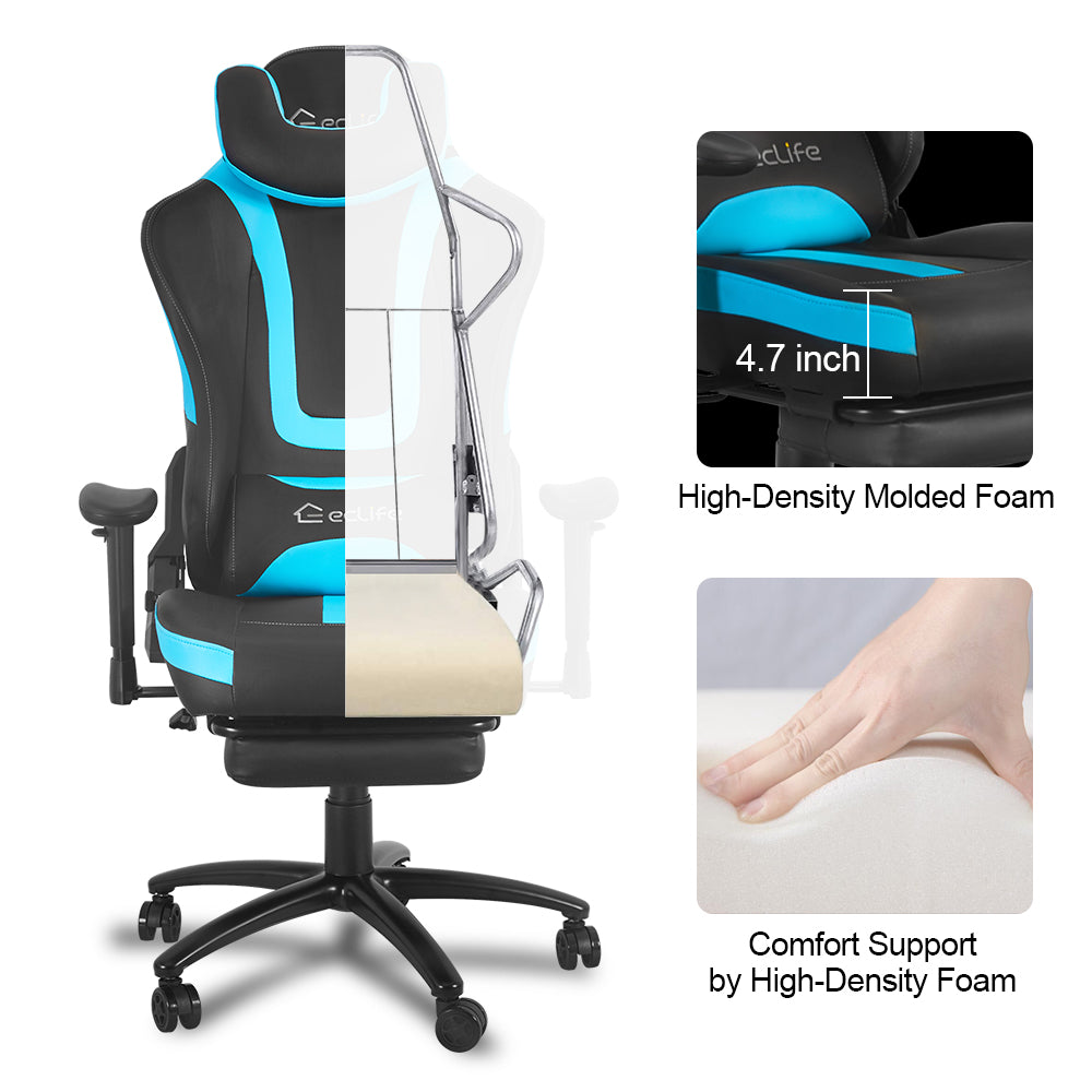 Massage Gaming Chair with Wooden S-shape Frame Construction-Blue