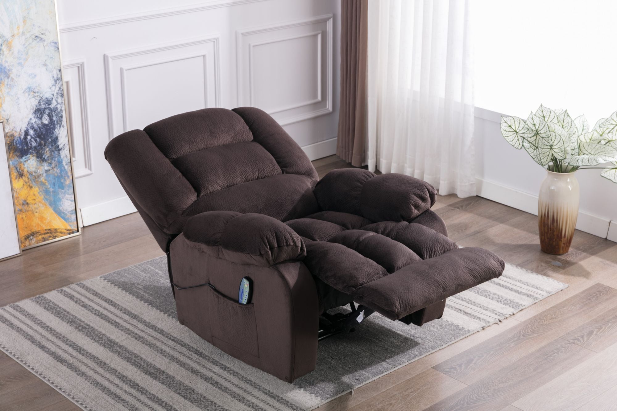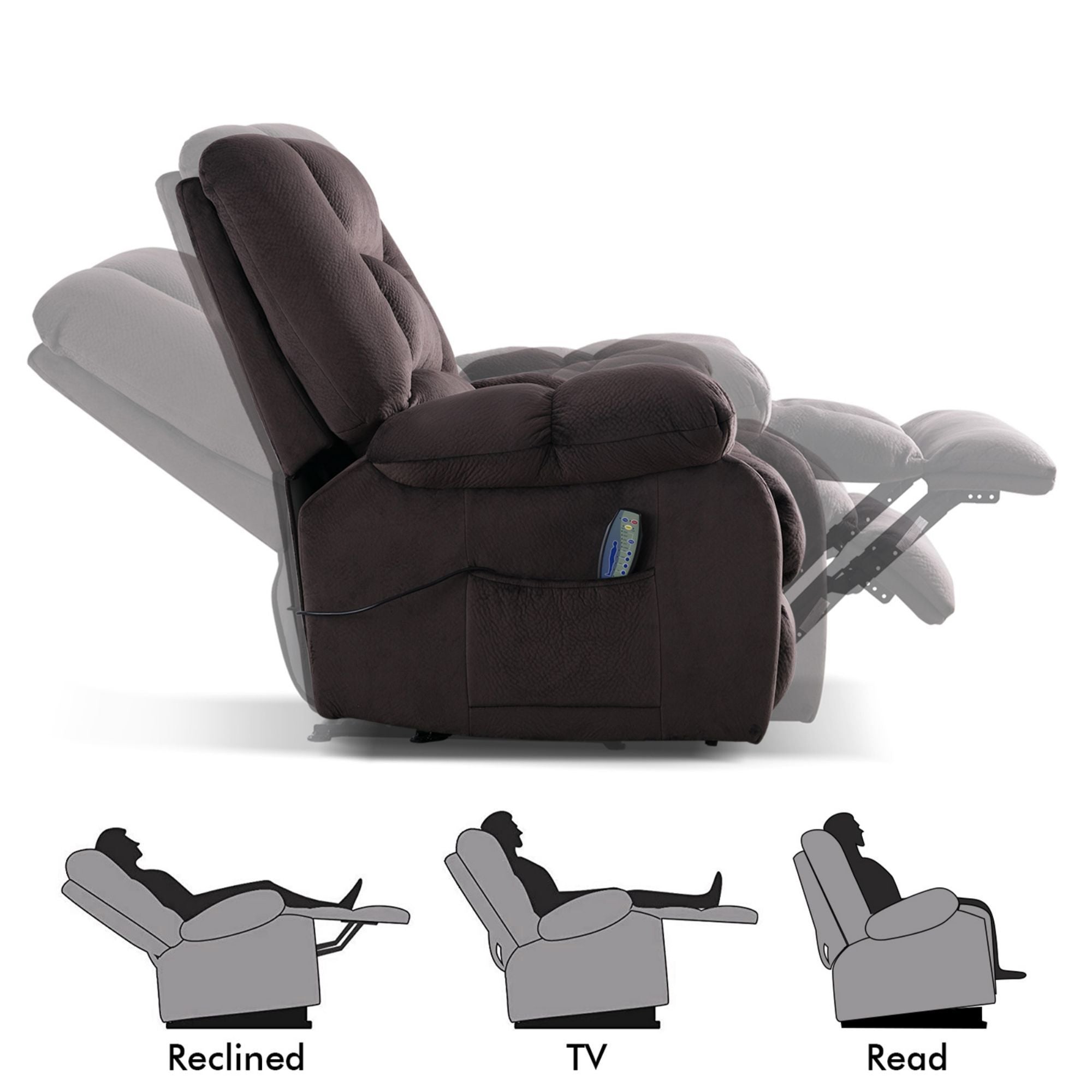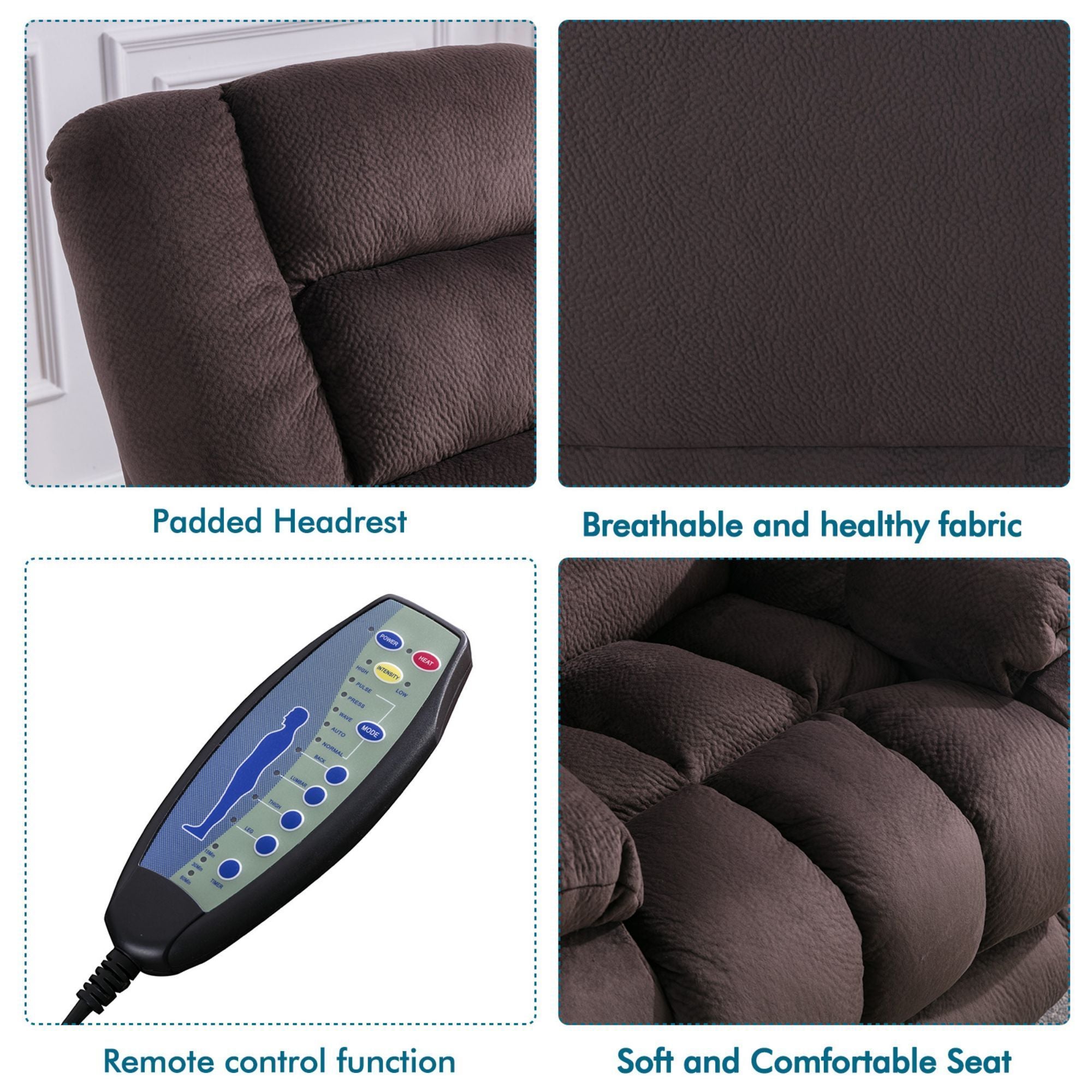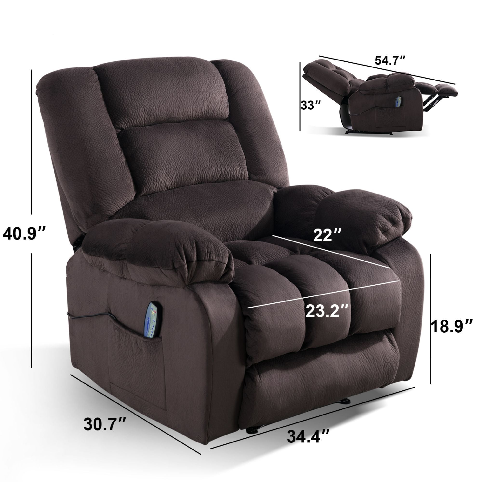 - The comfortable massage recliner has heating and vibration functions, allowing you to choose to recline to relax or reduce the stress when watching or watching TV. Very suitable for living room, bedroom, theater room and media room.