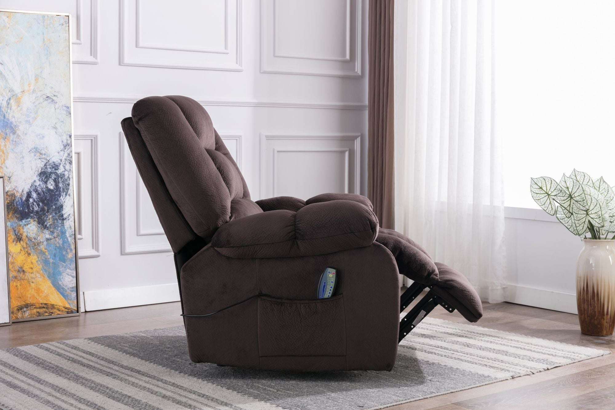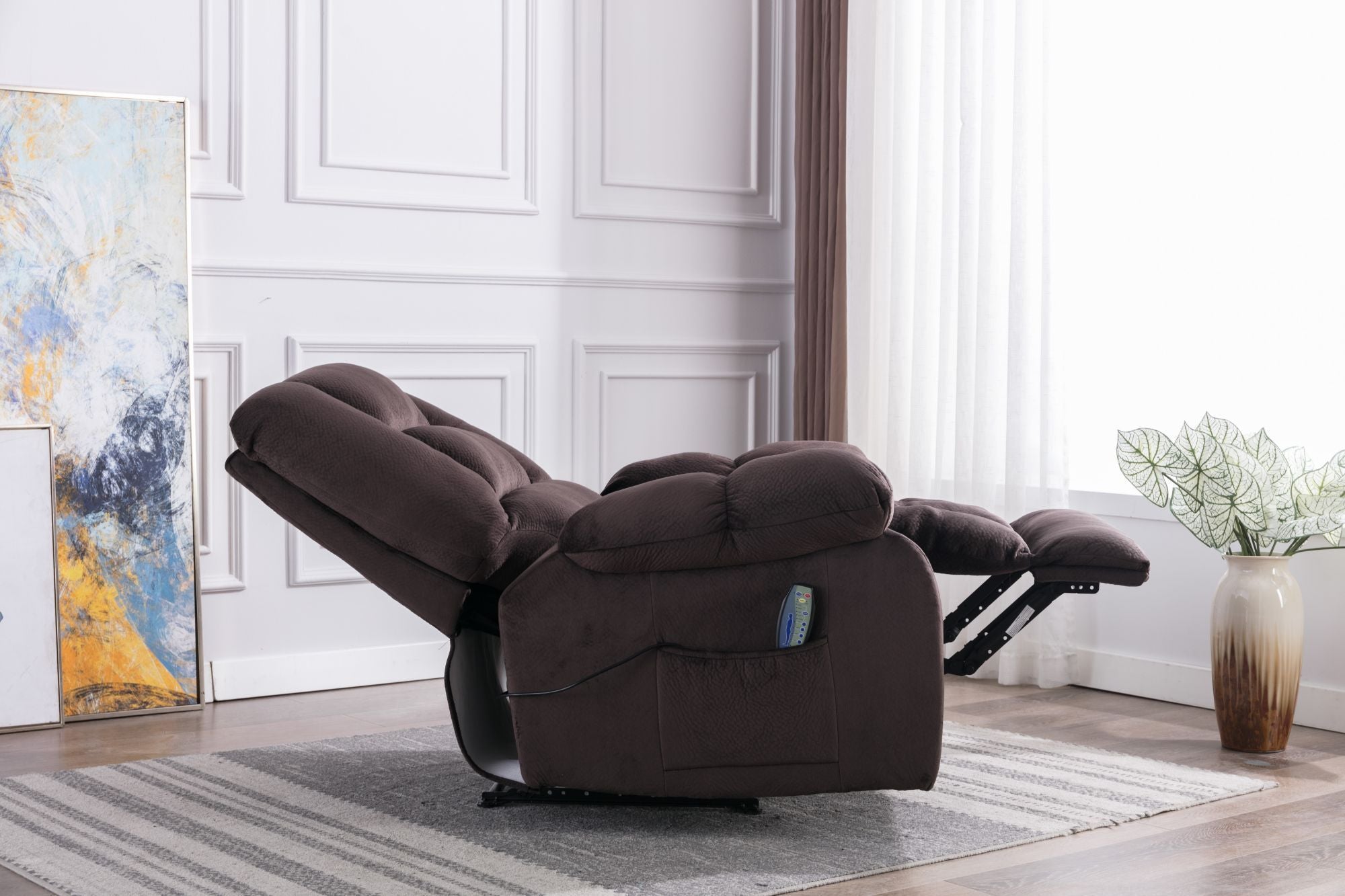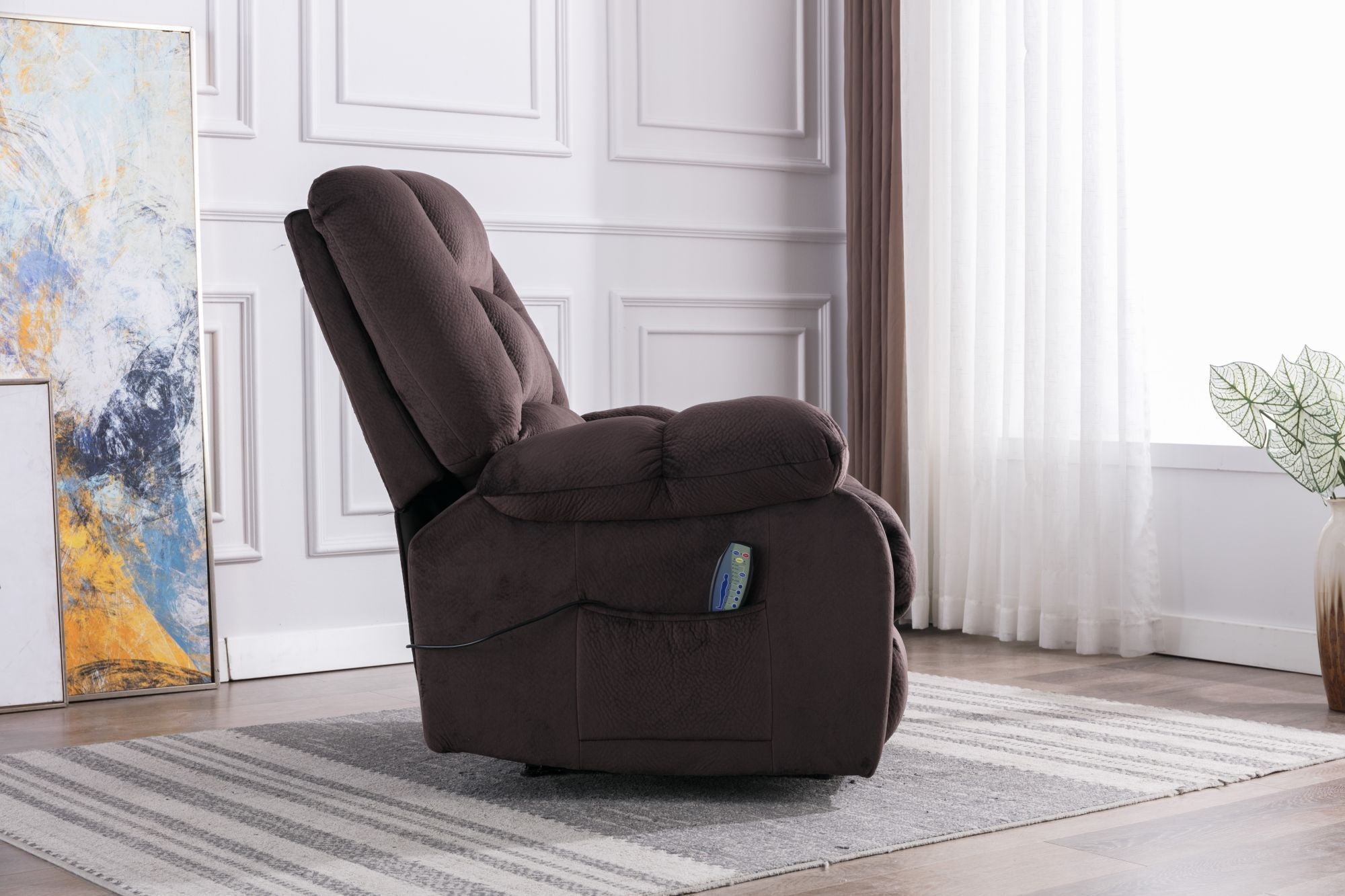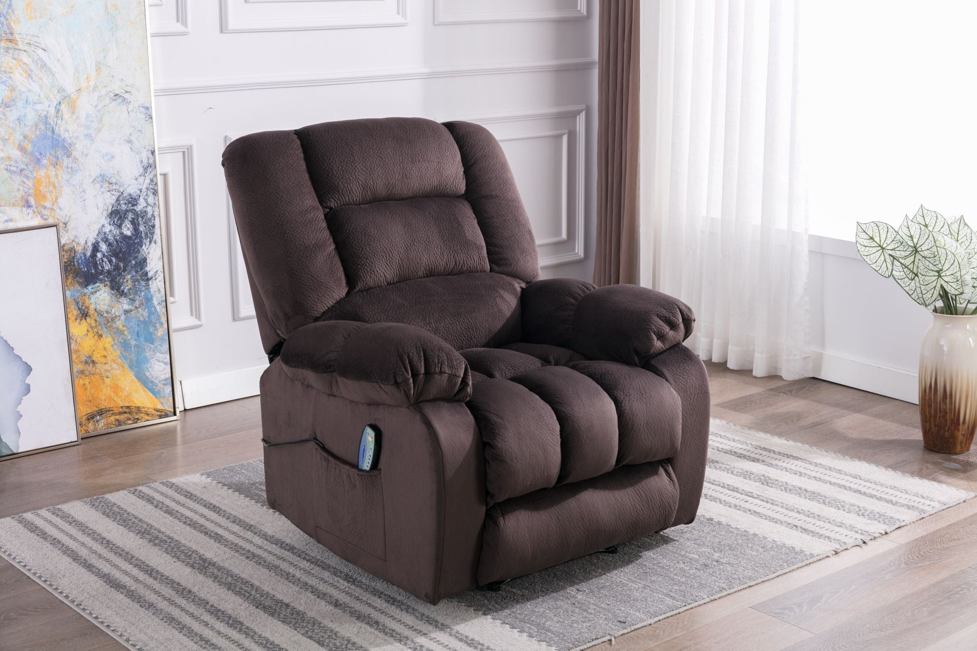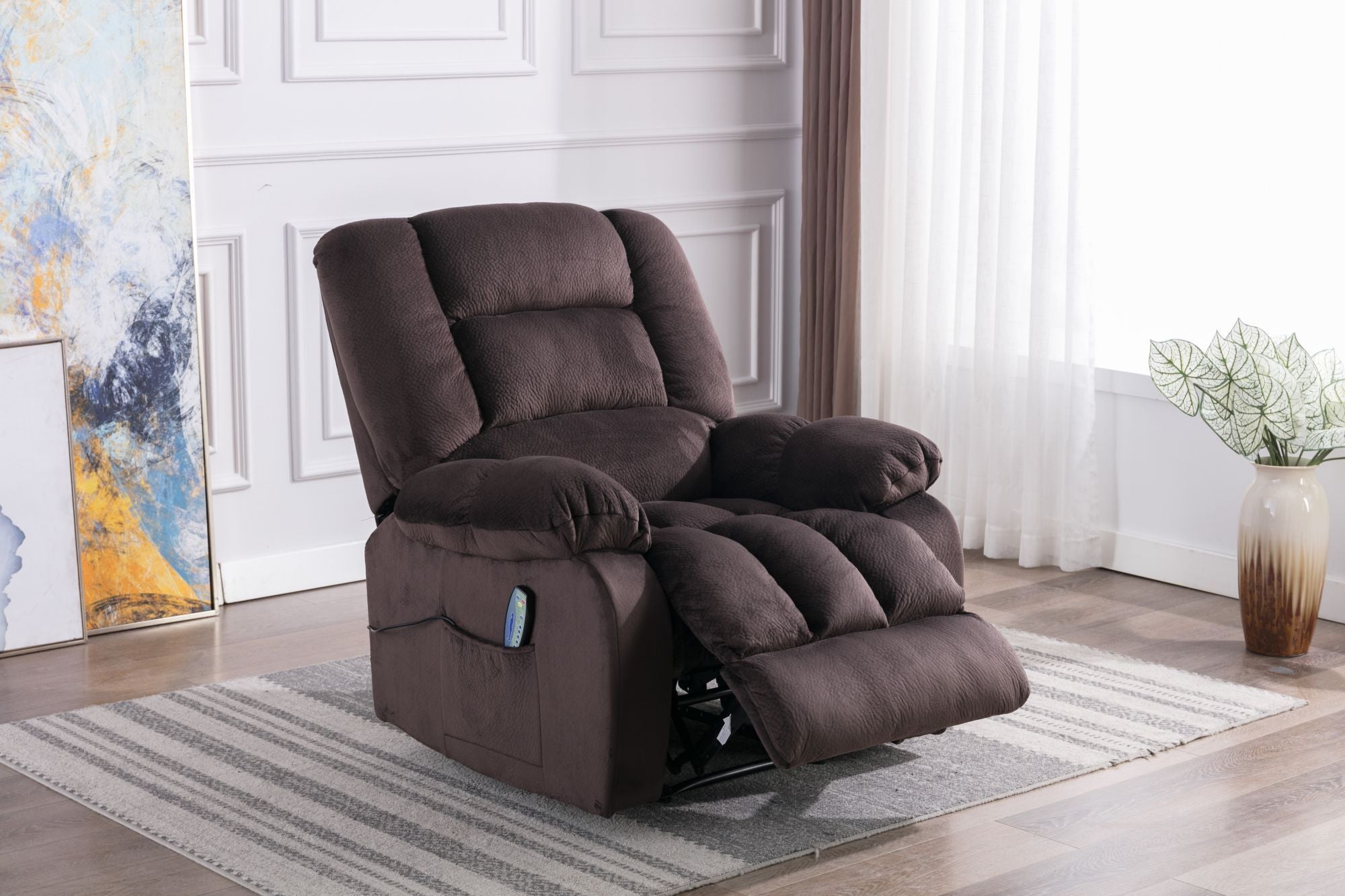 - The comfortable massage recliner has heating and vibration functions, allowing you to choose to recline to relax or reduce the stress when watching or watching TV. Very suitable for living room, bedroom, theater room and media room.