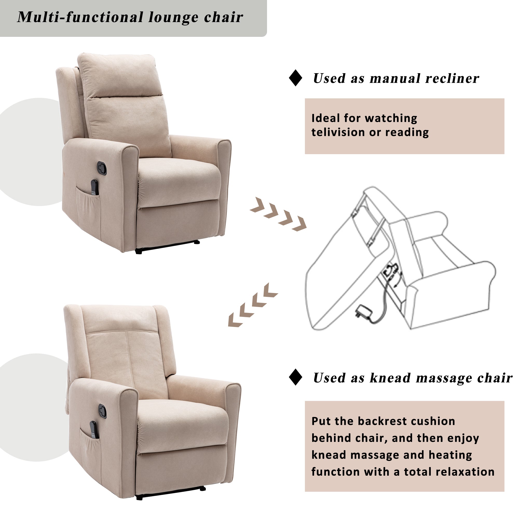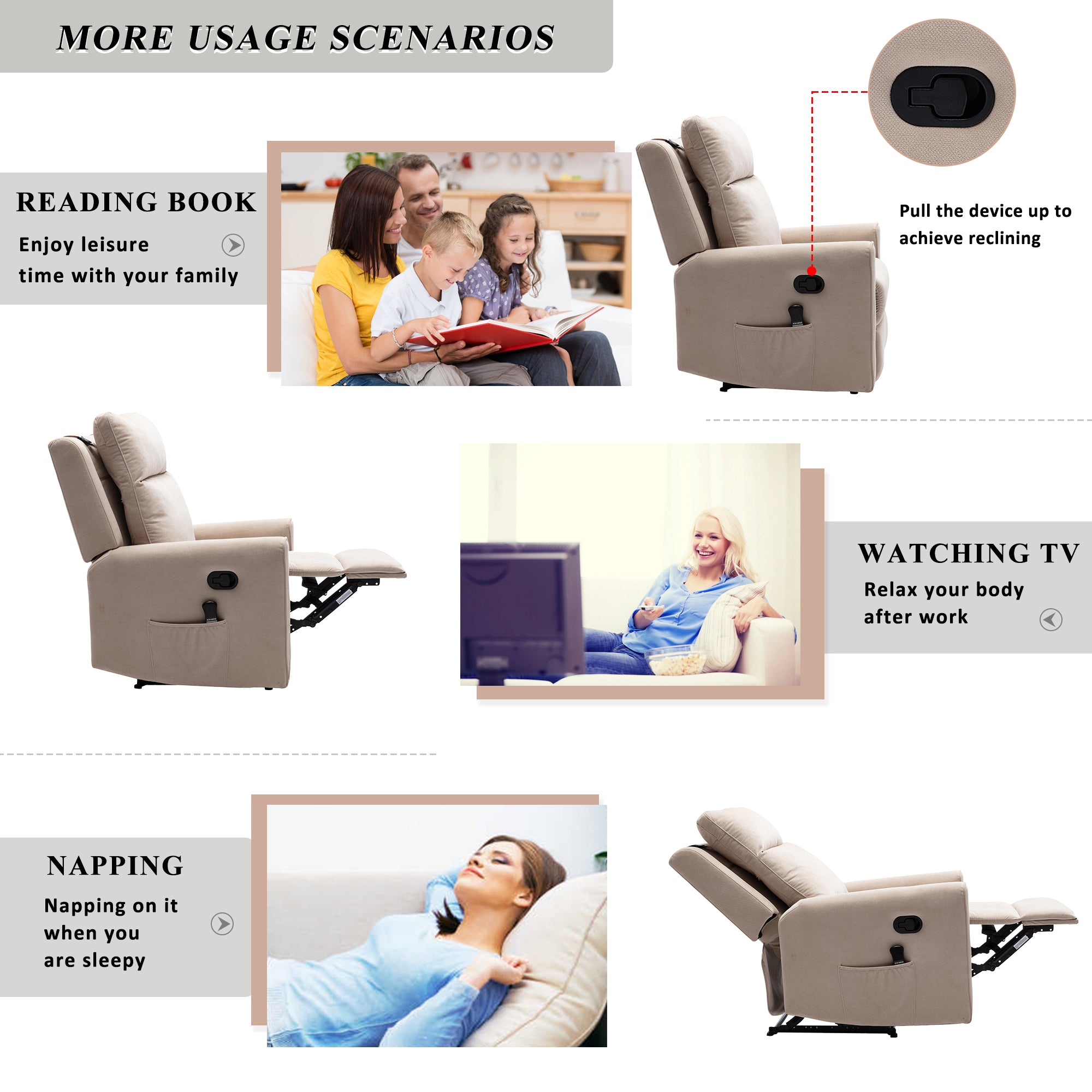 Multi-functional lounge chair: Expertly crafted for style, this recliner chairs for living room can be the perfect accent for the living room or the office. Meanwhile, it can be used as message chair for living room, when you put the removable backrest cushion behind chair.