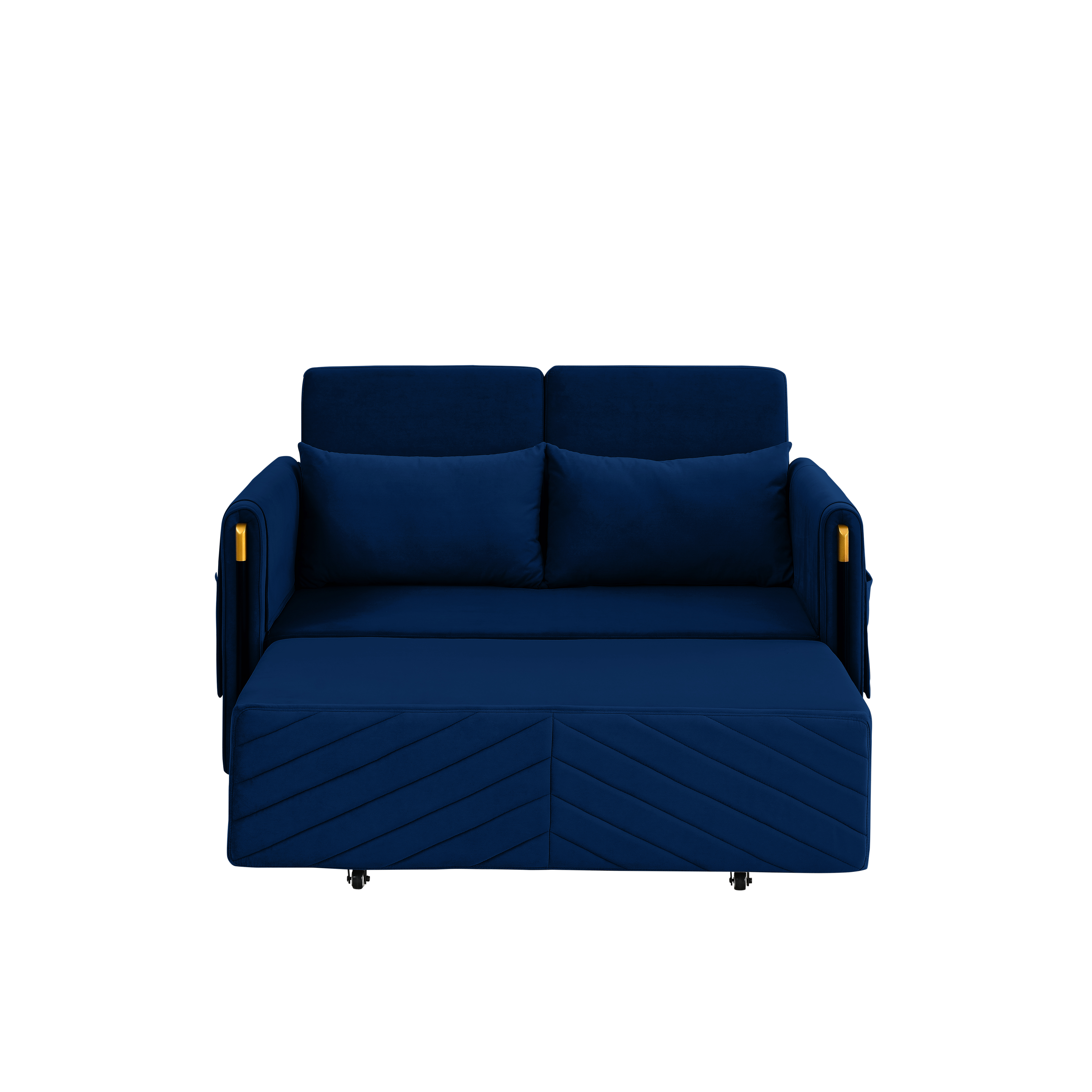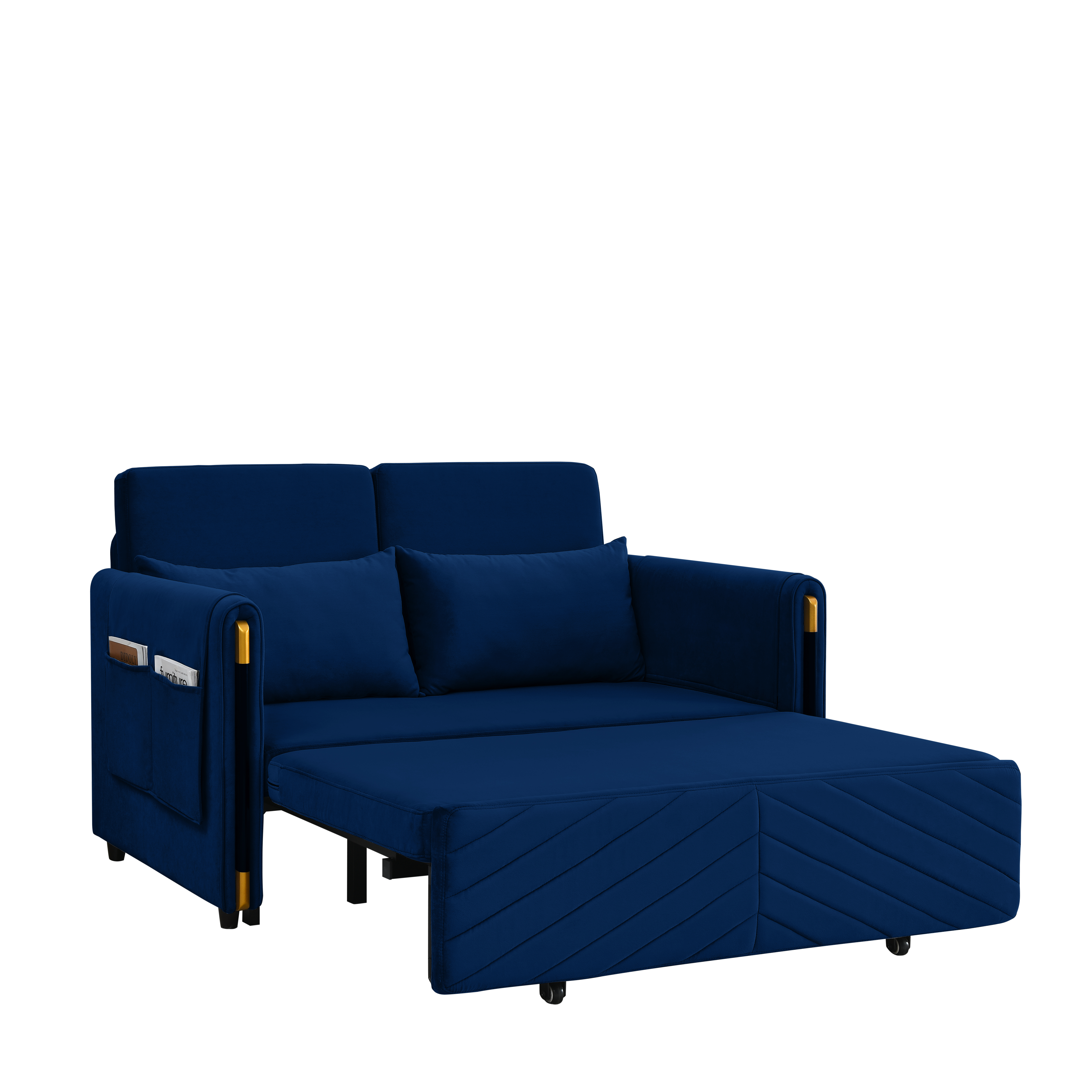1. Multi-position adjustable pull-out sofa bed with bedhead, By pulling out the bed frame under the seat, this double position sofa can be quickly converted into a bed for resting use.2. Adjustable and super strong: soft high-grain velvet fabric and high-density foam, it can be used for listening, playing games, reading, and sleeping. It will make you feel relaxed and comfortable.3. Suitable for any scene: this multifunctional pull-out sofa bed can be placed in living room and bedroom, it can accommodate 2 people to watch TV, play games or read, it can be used for guests or children's bed, modern design and space saving. This is definitely a good choice for applicable small rooms, apartments, studios, offices.4. Perfect function: pull out the bed frame can quickly turn the sofa into a bed. Pull-out with a bed made of high quality foam and metal iron frame can steadily support you to lie on the bed.5. Removable storage pockets and soft pillows. Our sofa comes with a removable side storage bag for you to reach and use to store your TV remote, cell phone, glasses or books. Also includes two soft pillows for added back support or sleep.6. Easy to assemble and use. Easy-to-follow instructions ensure the perfect build and pull-out recliner setup is quick and easy. If you need a video, please contact me.