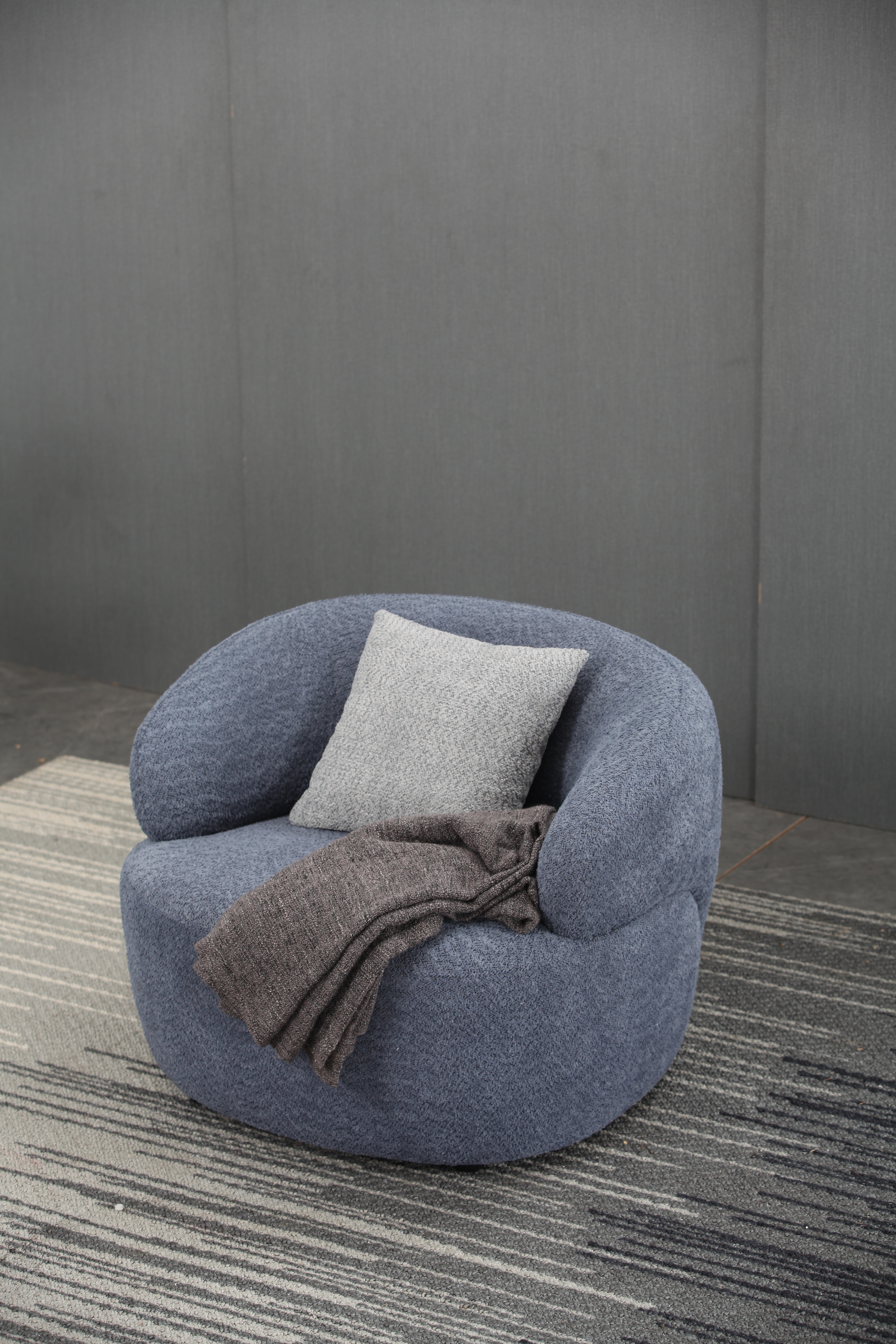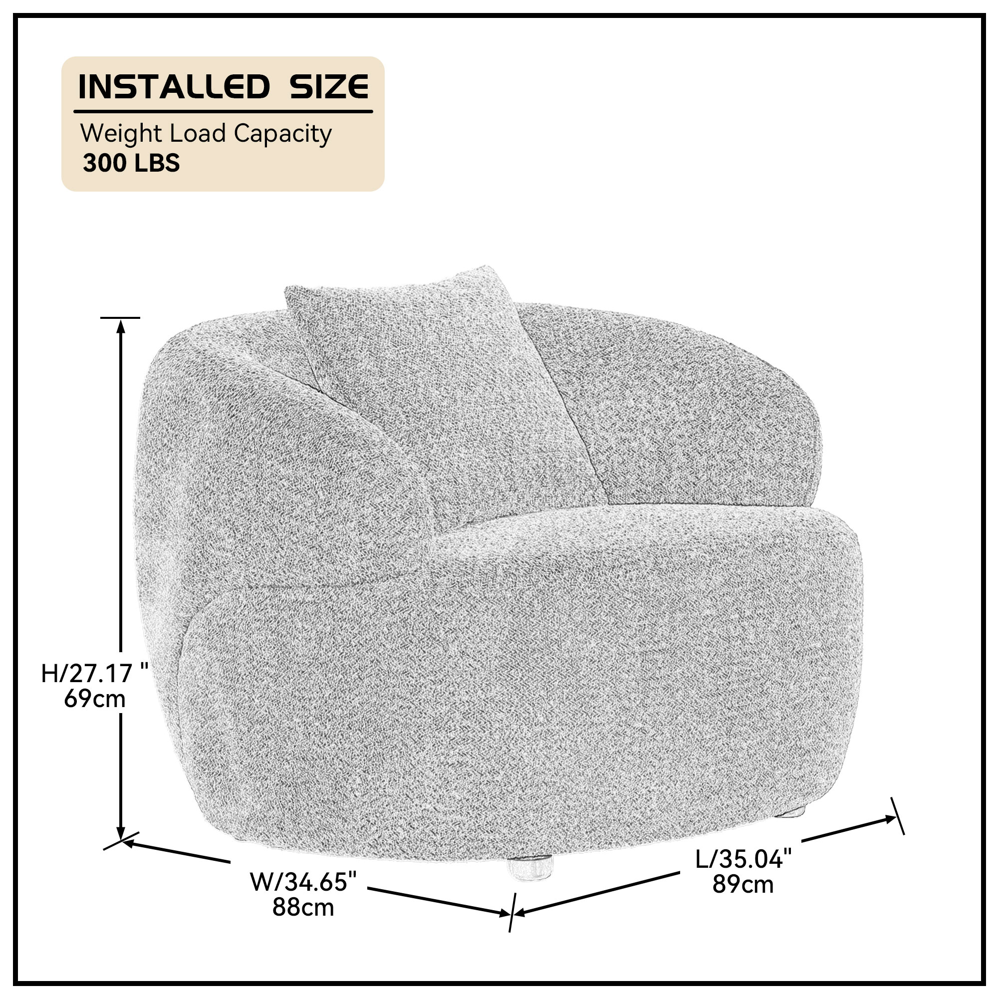 Mid Century Modern Curved Sofa, 1-Seat Cloud couch Boucle sofa Fabric Couch for Living Room, Bedroom, Office NAVY