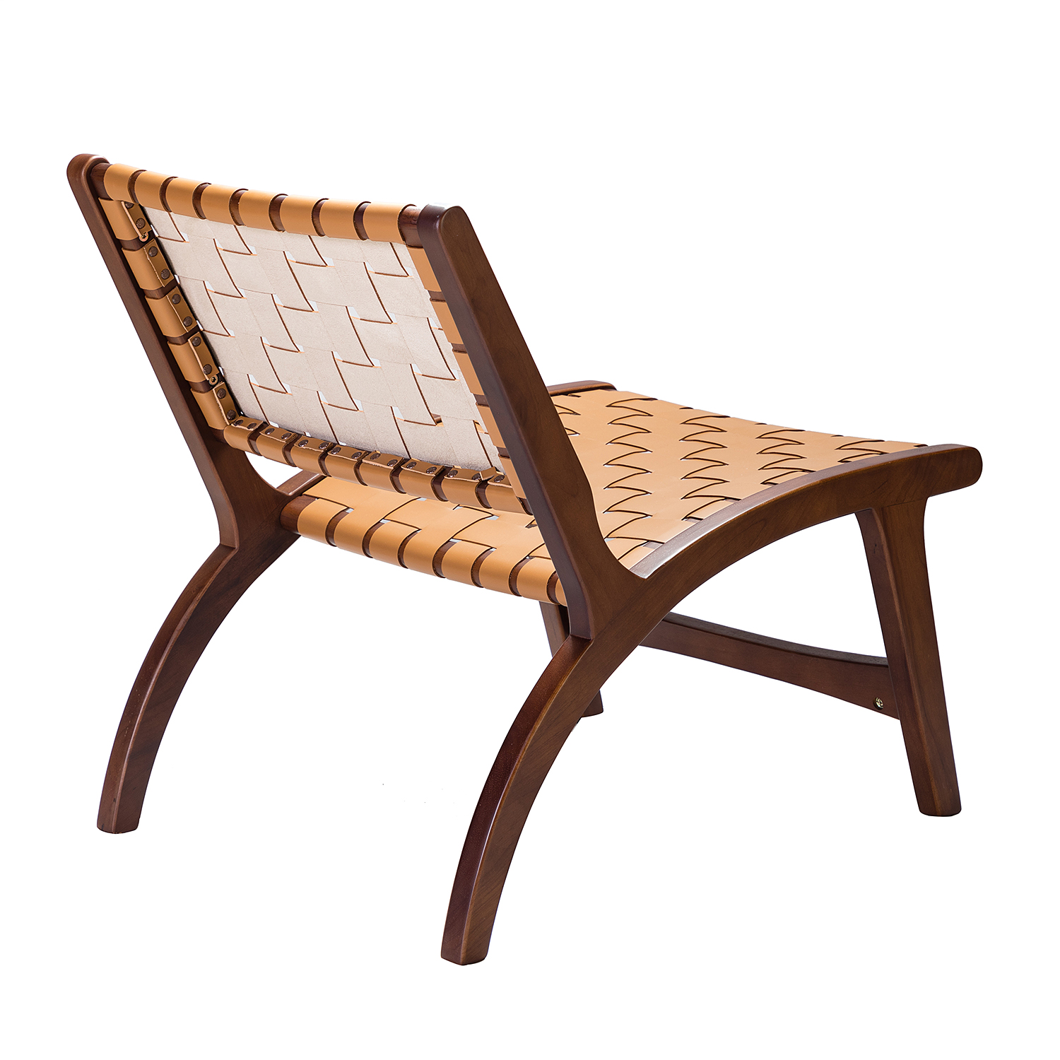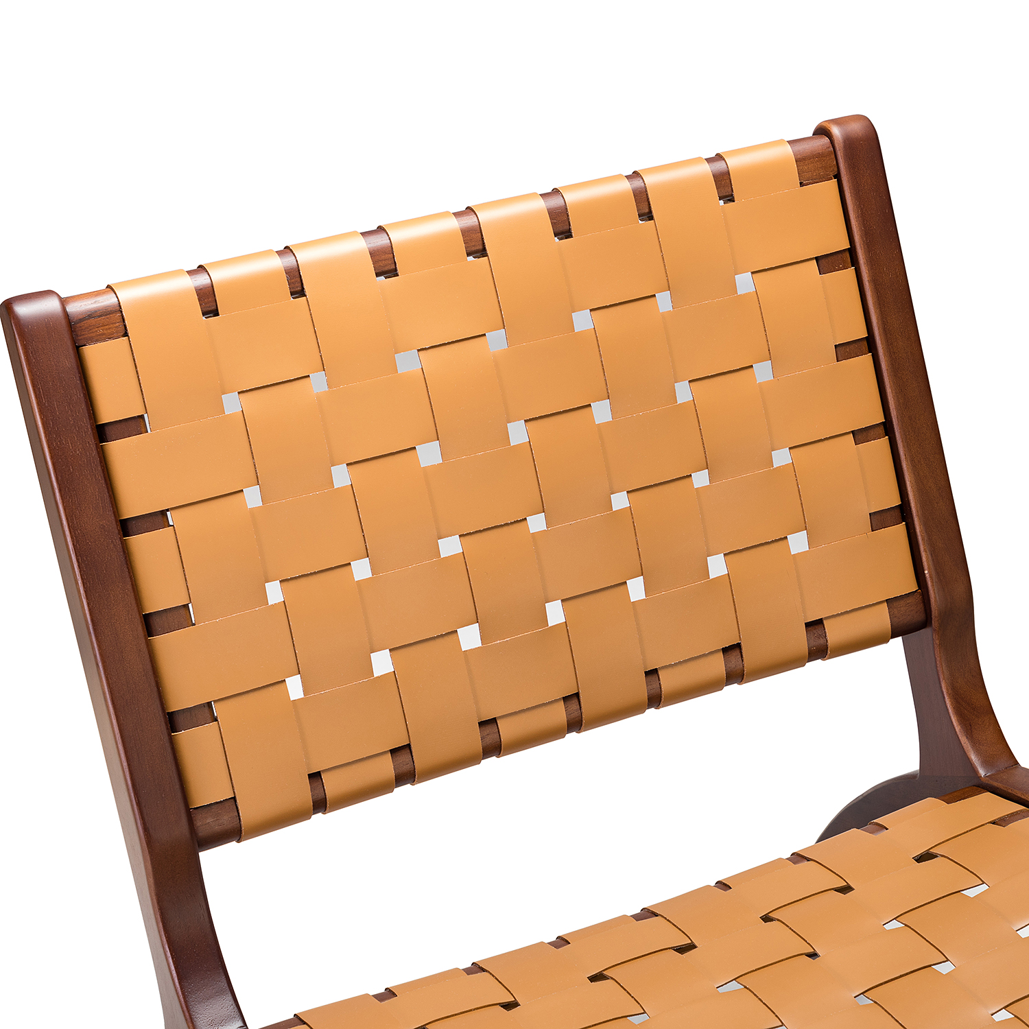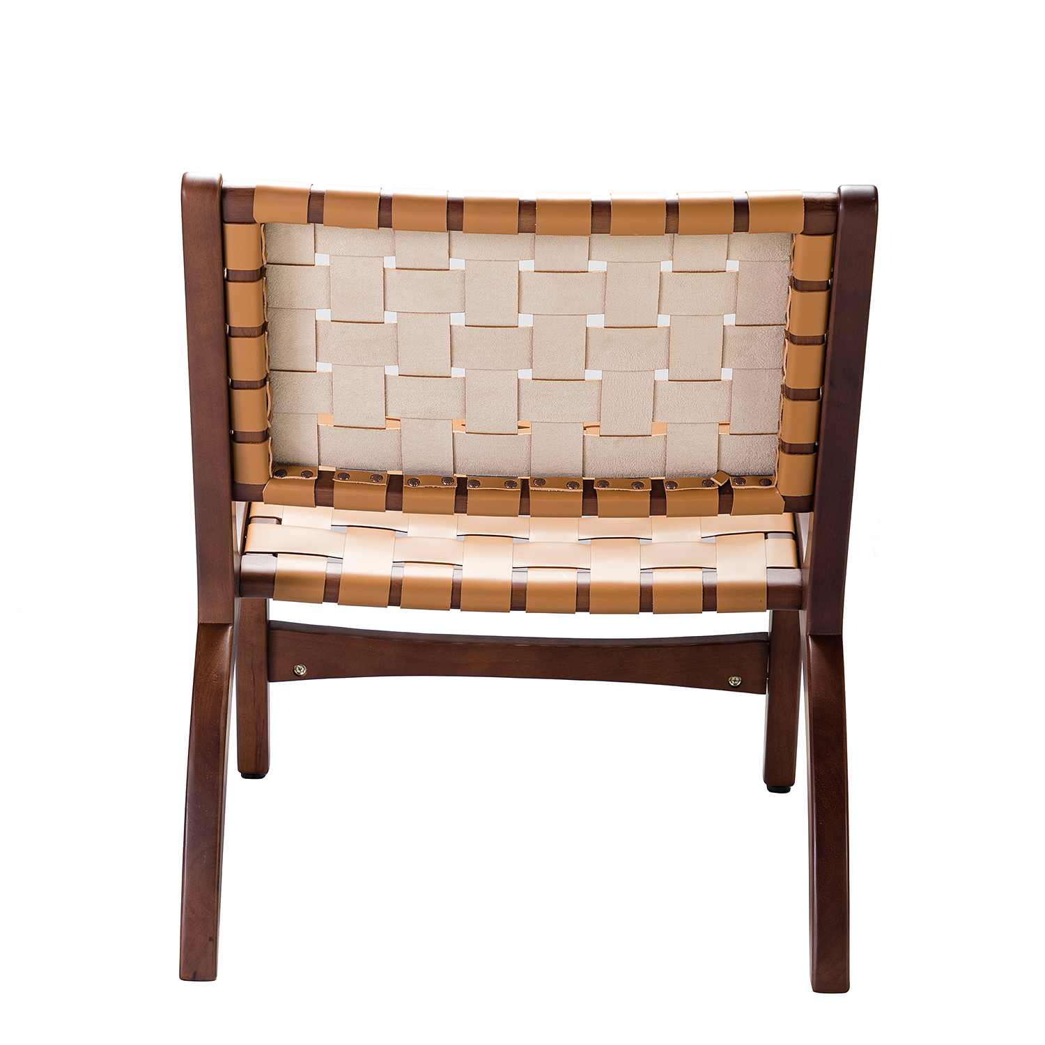 Still struggling to find an appropriate side chair for your home? This ahead of the trend accent chair will not let you down. Featuring a charm that makes people fall in love at first glance, this piece is designed with impressive details. Neatly cutting faux leather woven matches the sleek rubber wooden frame bosating a dramatic contemporary appeal, it must be a centerpiece in any home decor. Adding a touch of aesthetic to your space, its faux leather material is comfortable for skin touch, and the craft of weaving ensures cool breezes pass through freely and reduces heat buildup, creating a perfect spot for relaxation. Although it looks delicate, the seat and backrest features a sturdy construction in good tenacity with integrated curved legs that provides a perfect weight capacity in fact. With a delectable optional hues, it can blend well with your home color scheme, ideal for living room, office room and bedroom.
