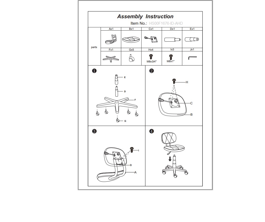 1x Office Chair :- 21" X 24" X 27" - 31"H