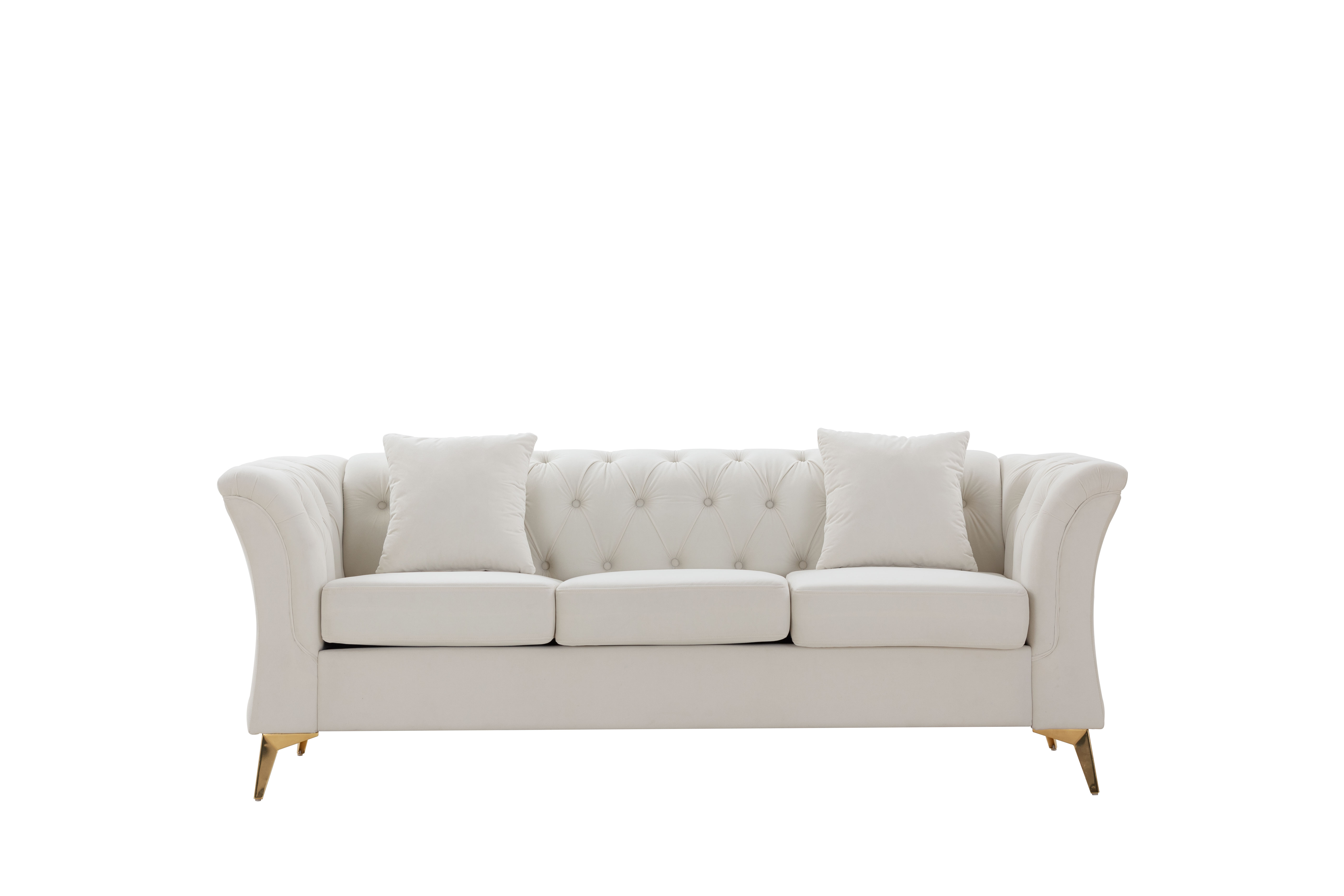 The sofa designed by modern chesterfield style, The 3-seater sofa matches any decorative theme perfectly, and is a great addition to your living room, bedroom or office.Modern sofas are made of a solid wood frame, and strong metal legs can provide 750 pounds of stable support, This comfortable sofa is made of soft velvet fabric, built-in high-density foam and pocket springs to give you the greatest comfort. The size of our sofa including all parts and clear instructions. Each part has a label. You can install the sofa according to the instructions. Soon you will be comfortable 3 Seat sofa