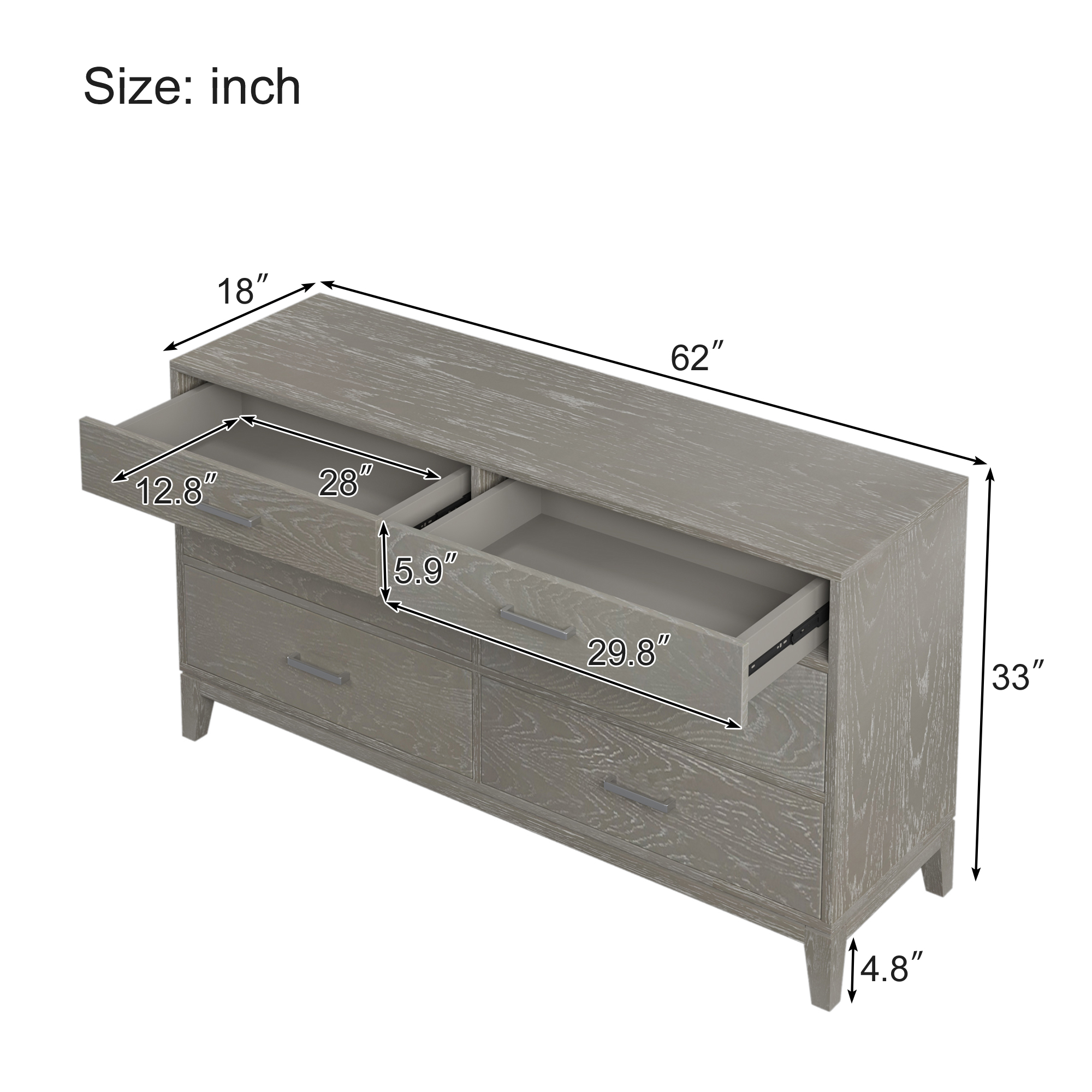 【Multiple Functions】 As a functional furniture, this simple style dresser emphasizes functionality. These drawers will satisfy most everyday storage needs.
