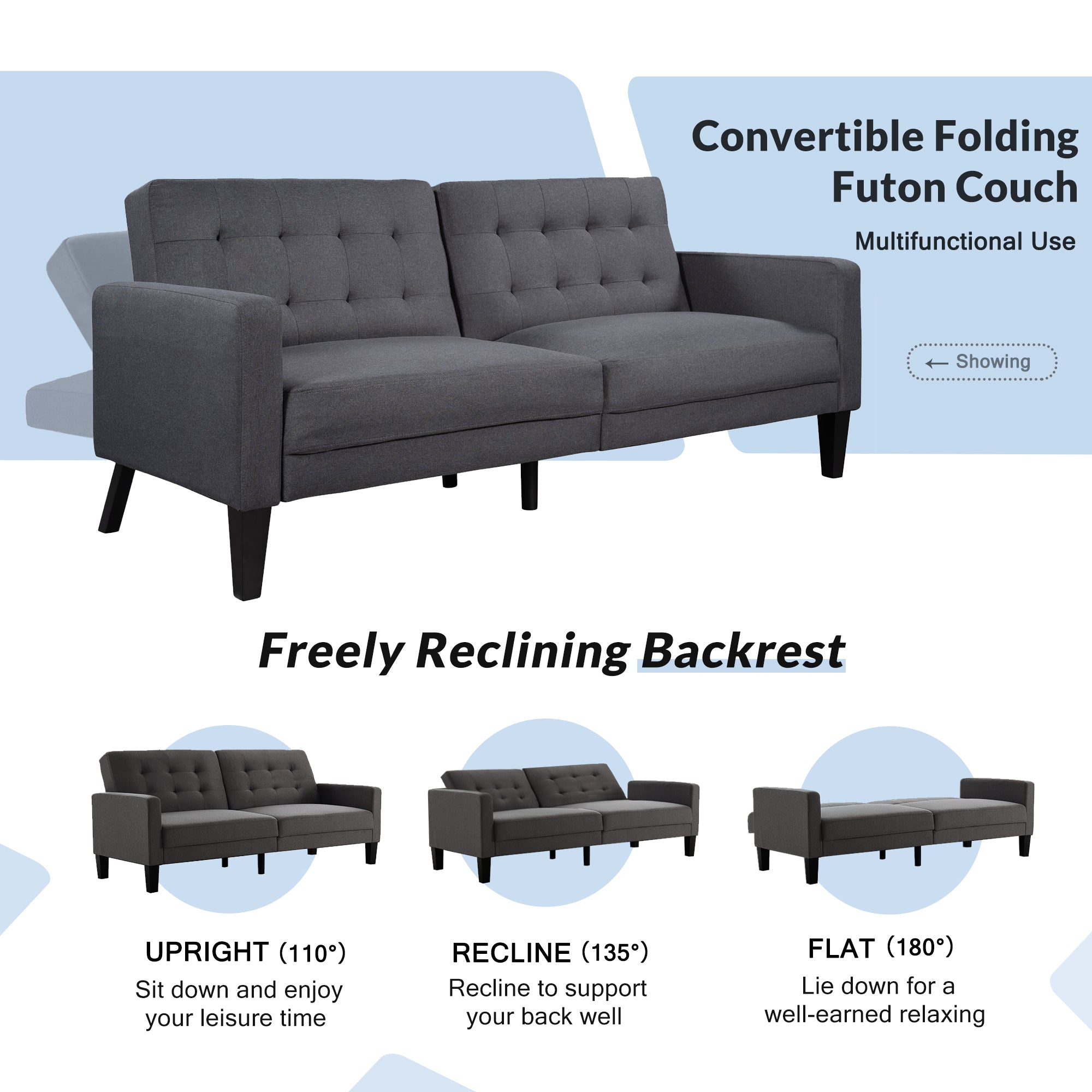 Multiple Adjustable Positions: 3 adjustable positions can offer different comfort to you, if you want to watch TV in your living room you can adjust the back rest to 110° or 135 °, if you want to take a nap you can adjust the angle to 180 ° as a bed.