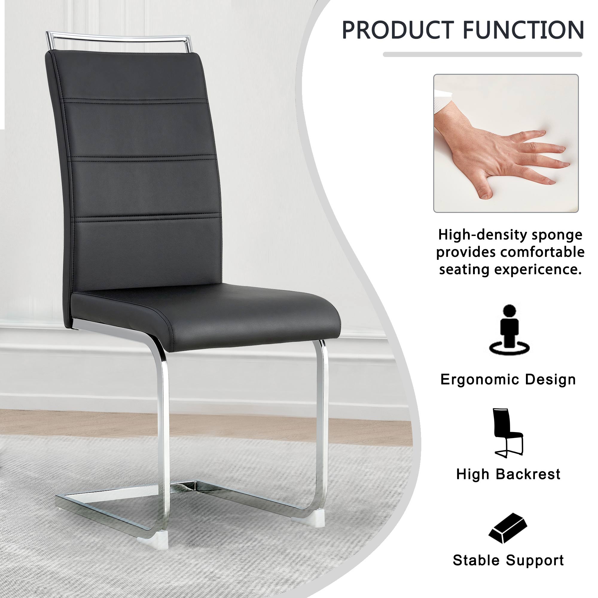 3.Modern designed dining chair with elegantly curved silhouette and thicken seat cushion provides the chair with maxmium comfort. | |||
