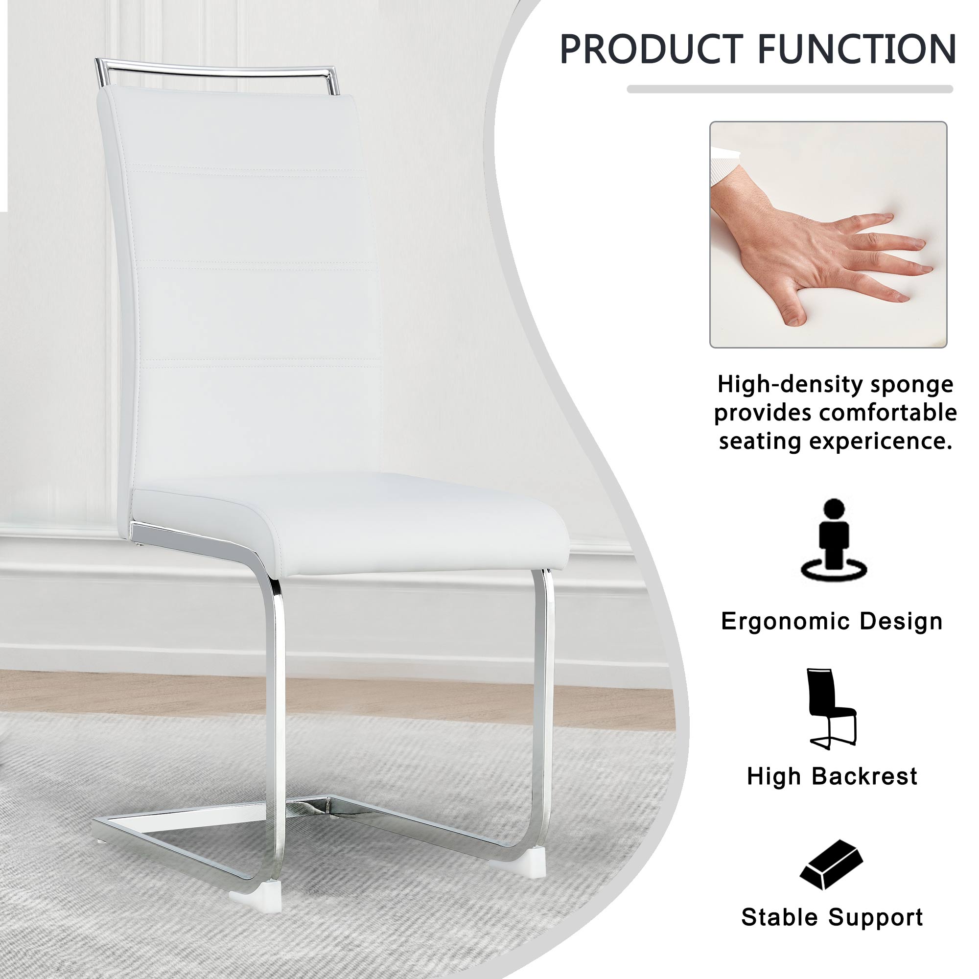 3.Modern designed dining chair with elegantly curved silhouette and thicken seat cushion provides the chair with maxmium comfort. | |||