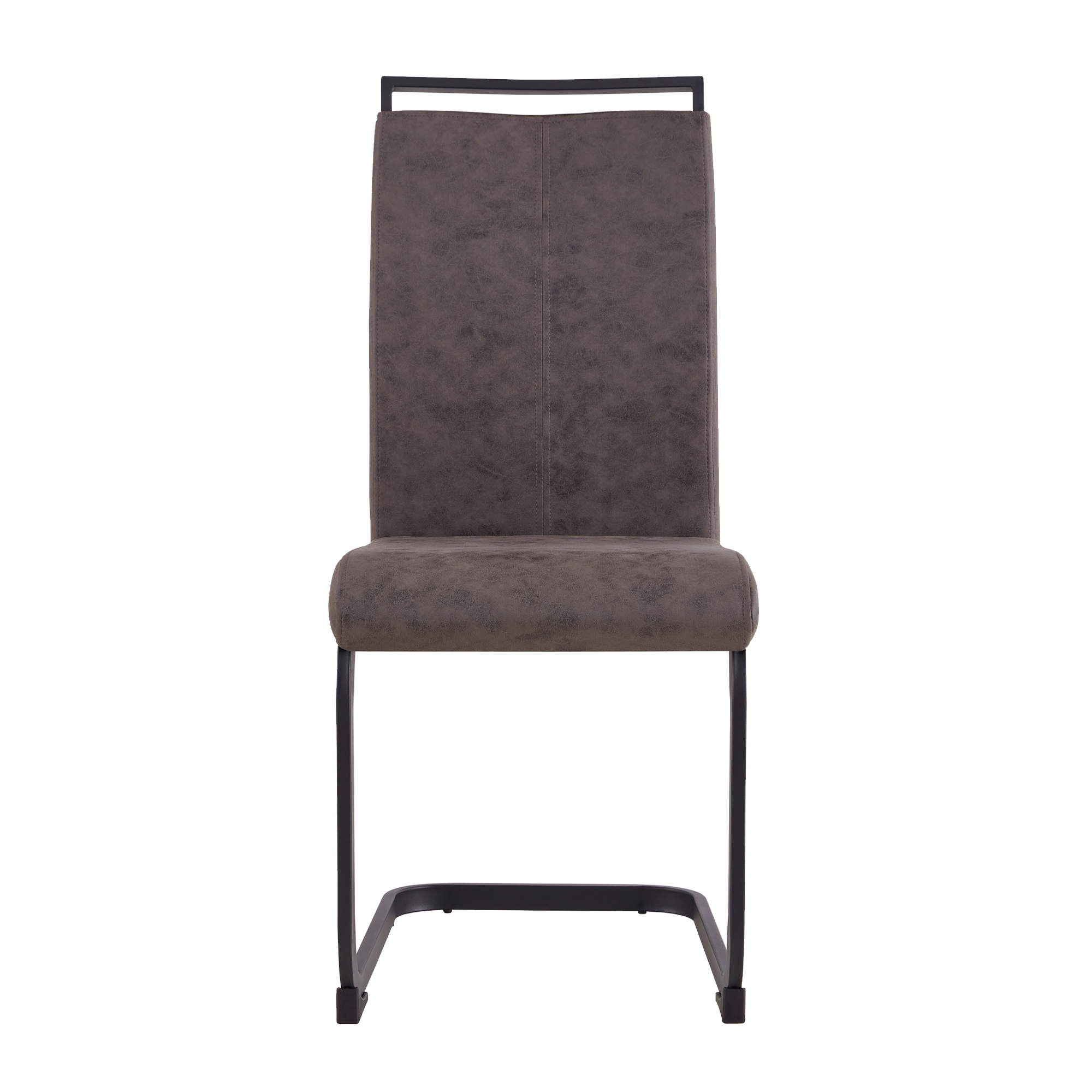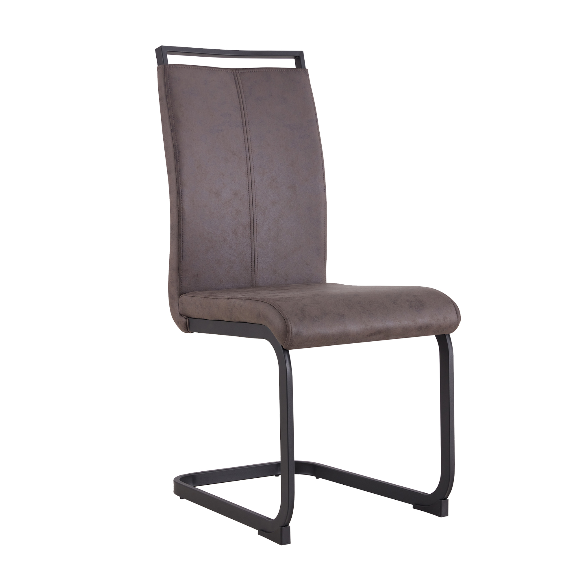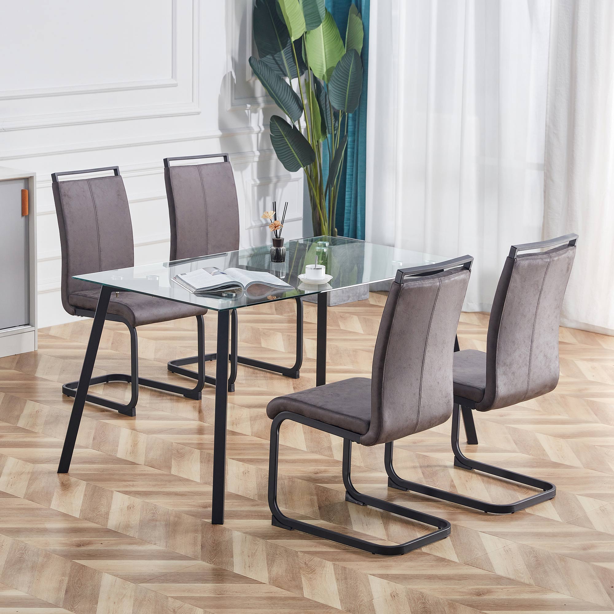 7.The leathaire fabric dining chairs are complete with C-shaped black metal base for stable and strong support.