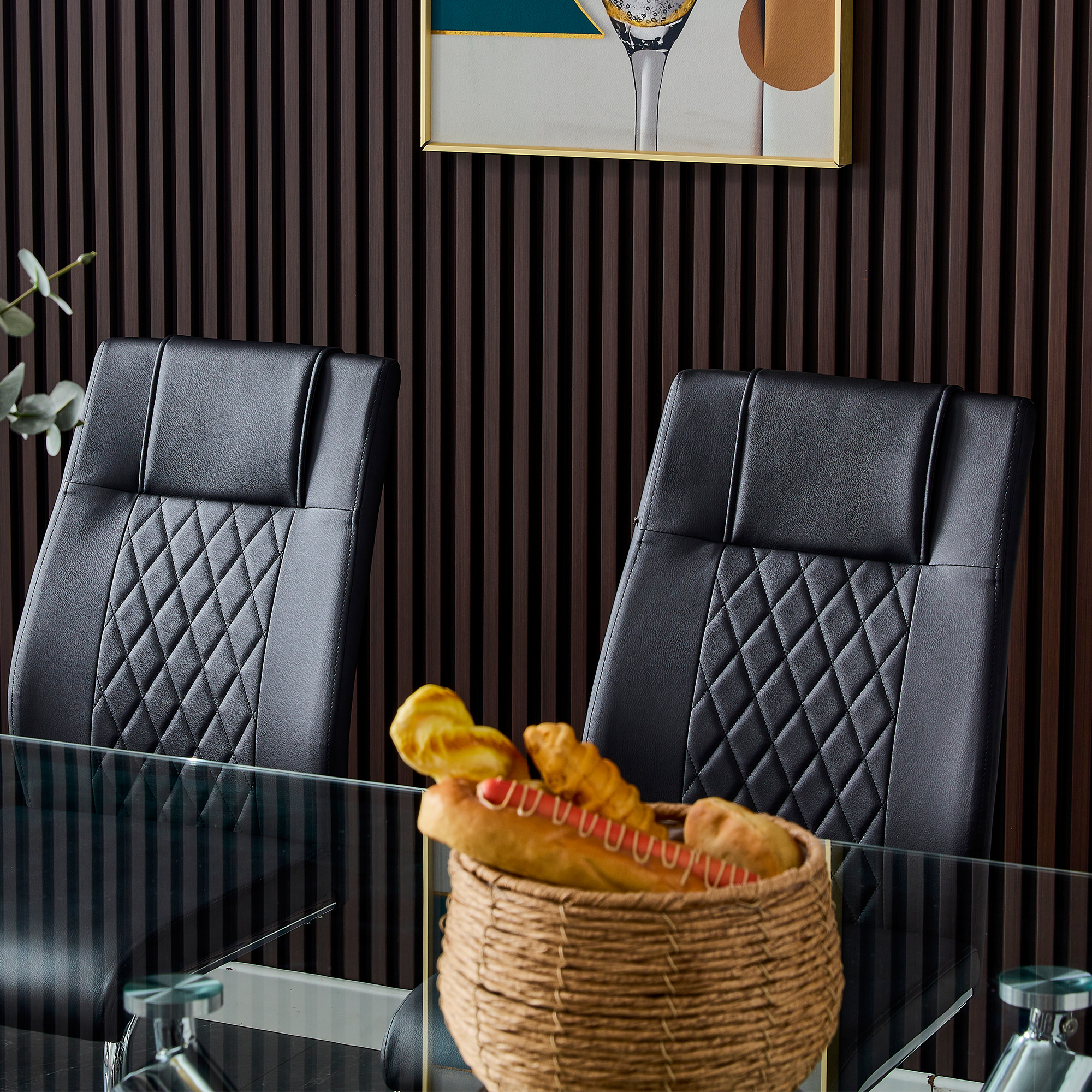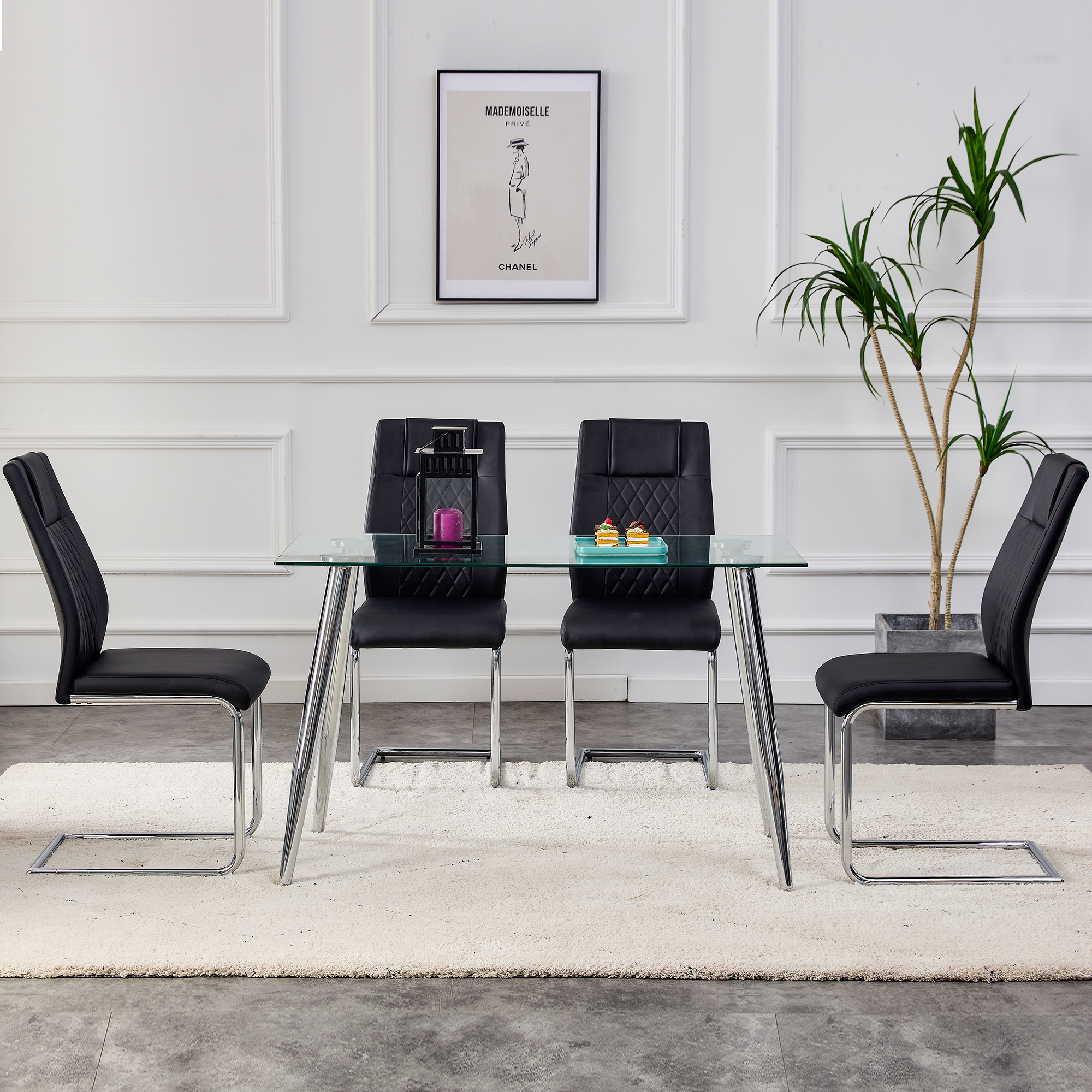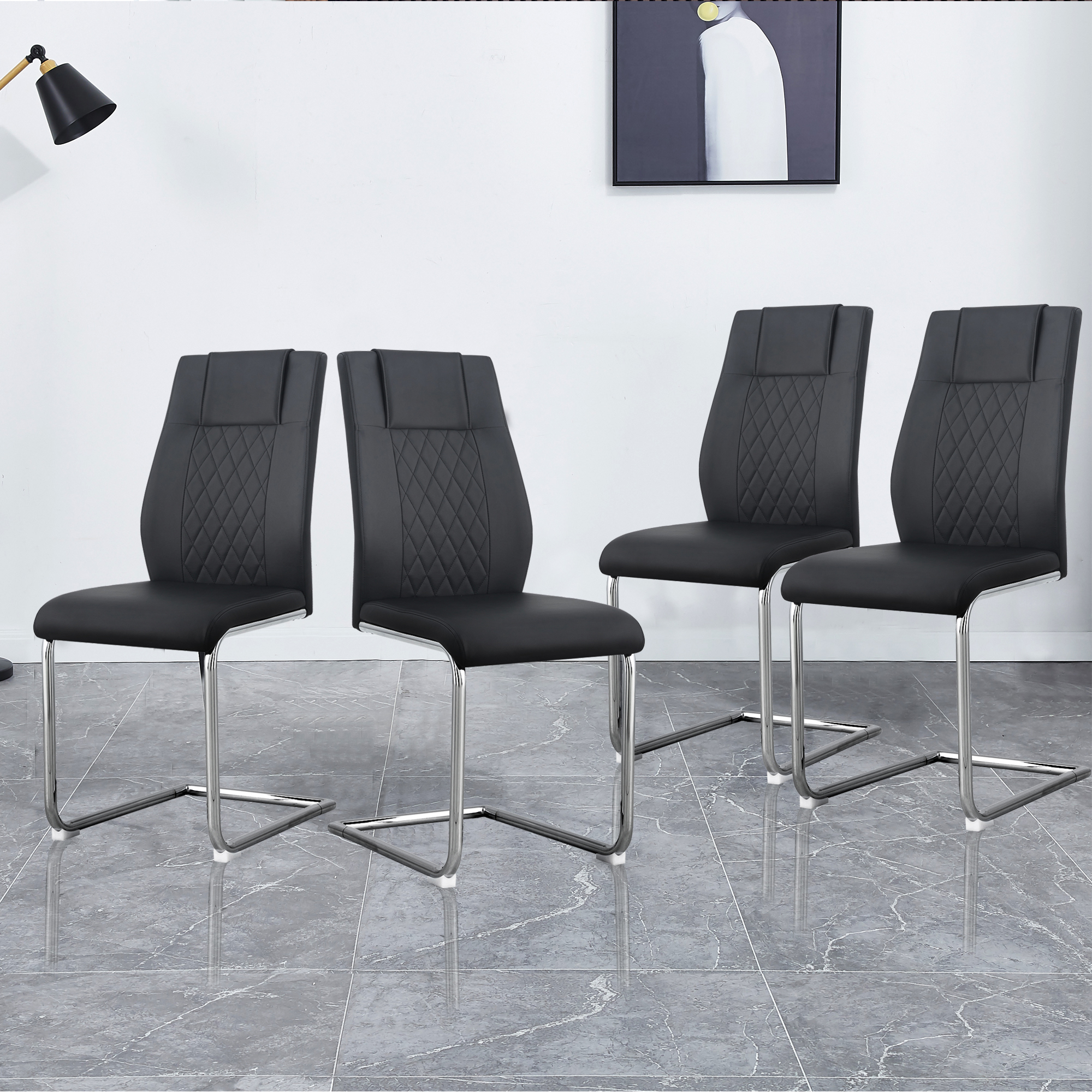 7.The faux leather dining chairs are complete with C-shaped tube chrome base for stable and strong support. | |||