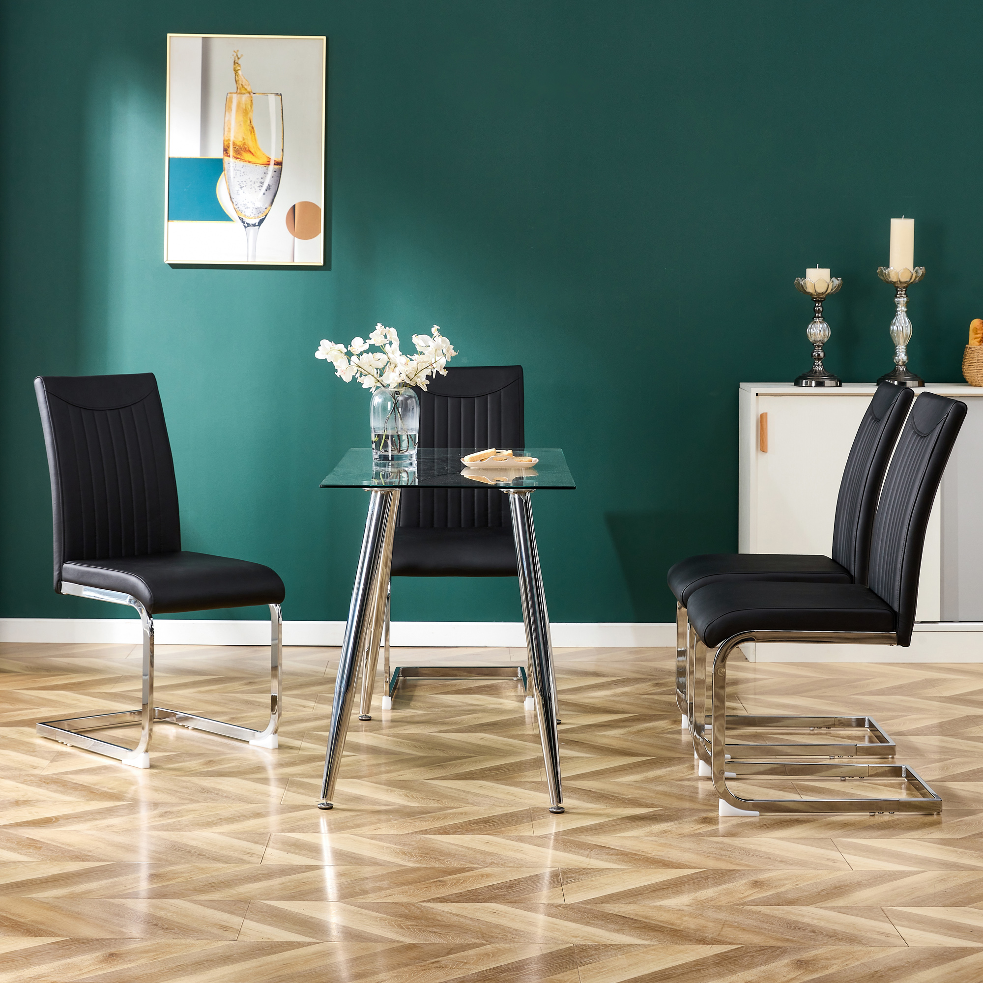 3.Modern designed dining chair with elegantly curved silhouette and thicken seat cushion provides the chair with maxmium comfort.