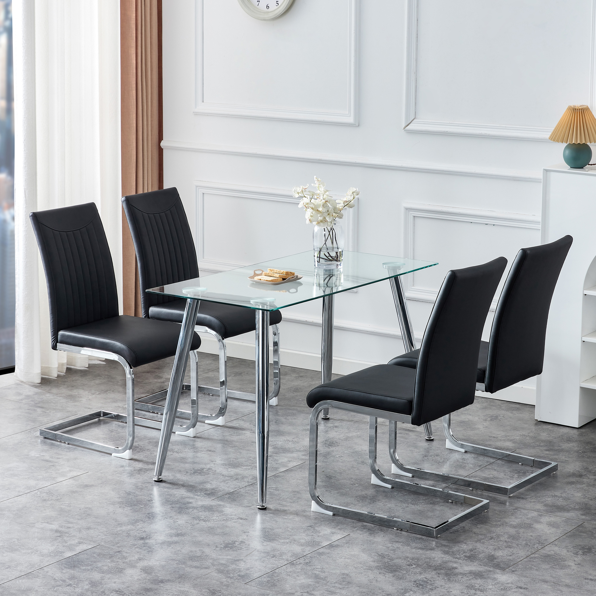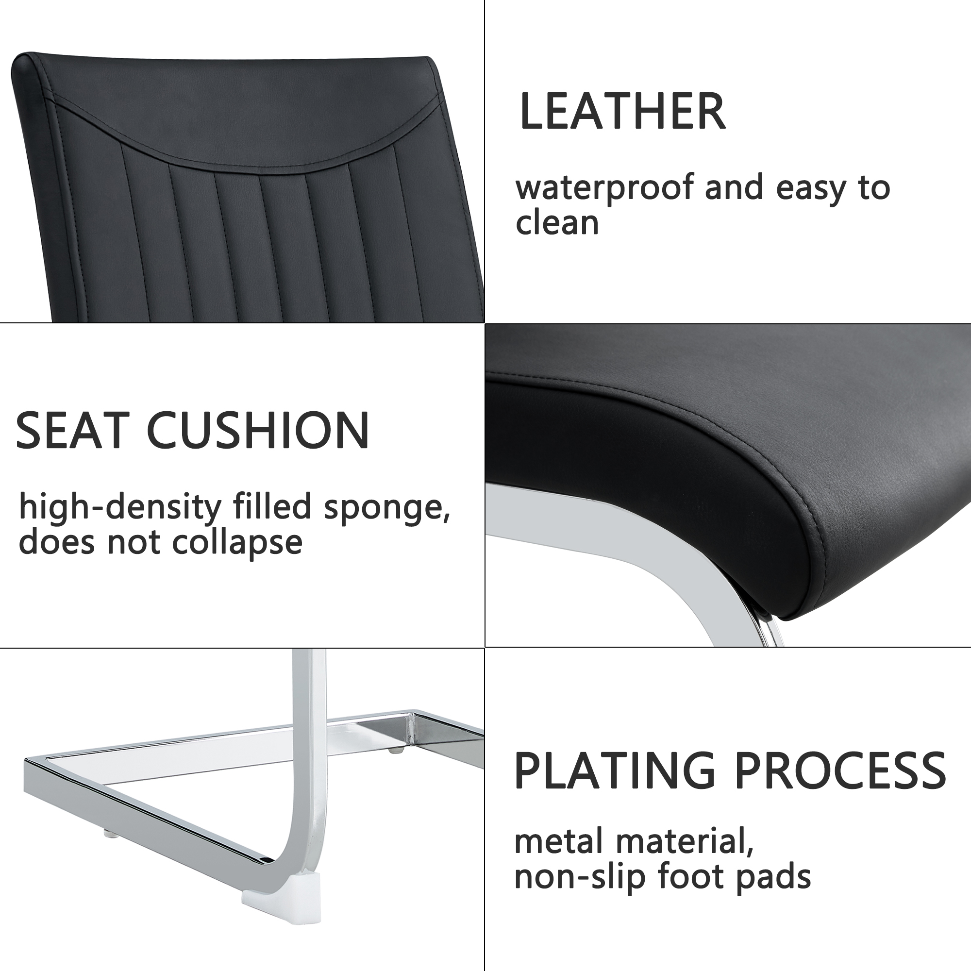 Modern Dining Plating leg Dining chair Chair, PU Leather High Back Cushion Side Chair with Vertical stripe backrest pattern for Dining Room Kitchen Vanity Patio Office Chair (Set of 4) (Black+PU)