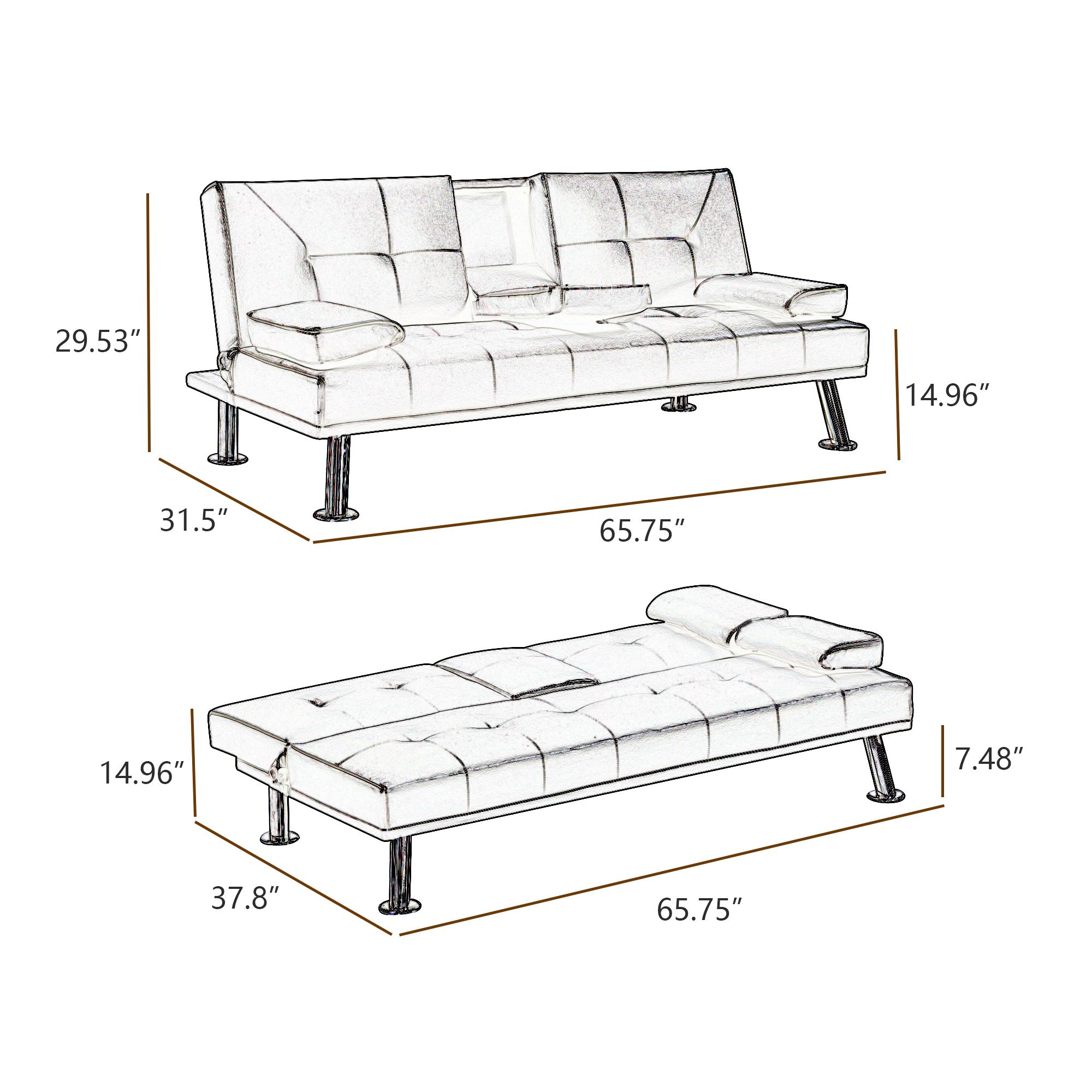 Loveseat Sofabed as Sleeper :65.75"L*37.8"W*14.96"H