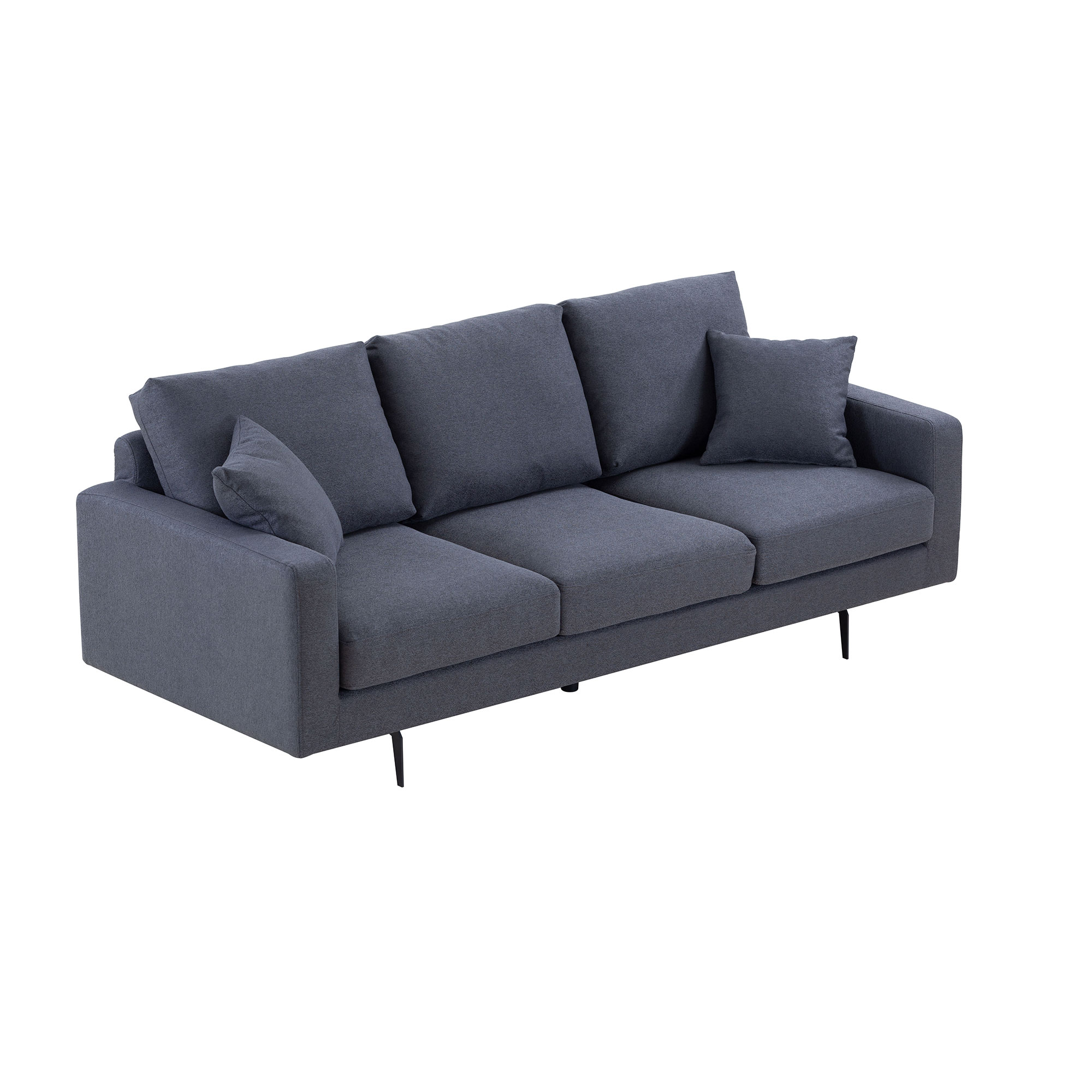 * Ample seating: The three-seat design of this sofa ensures there's plenty of room for friends and family to sit comfortably together.* Plush comfort: The thick sponge padding and included pillows provide cozy support that's perfect for lounging and relaxing.* Long-lasting structure: Made with a solid wood structure and high-density spring support, this sofa is built to last and withstand years of use.* Modern design: The sleek metal legs give this sofa a contemporary edge that will elevate any living space.* Easy to clean: The durable upholstery is easy to clean and maintain, so you don't have to worry about stains or spills.* Comfortable for all: With its spacious design and supportive cushioning, this sofa is suitable for people of all ages and body types.* Great value: This sofa offers both comfort and quality at an affordable price, making it an excellent investment for your home.