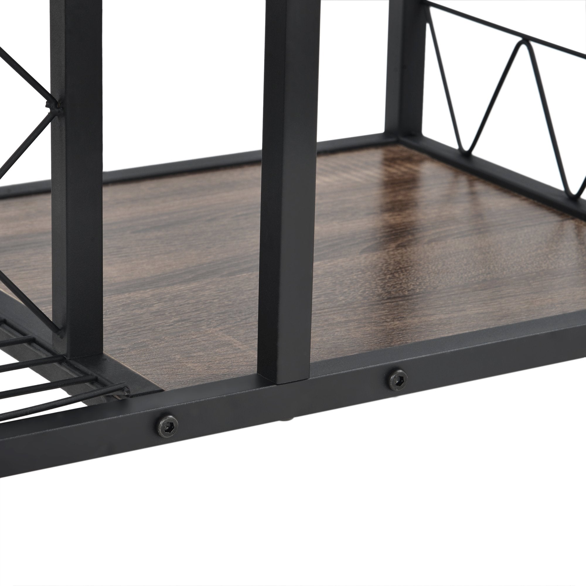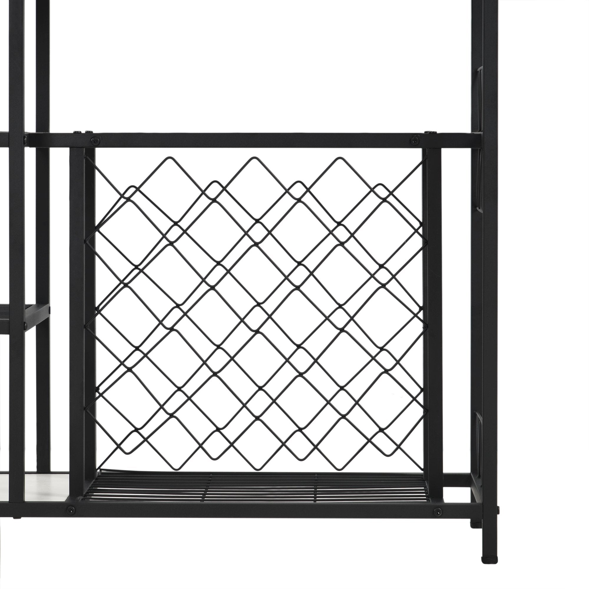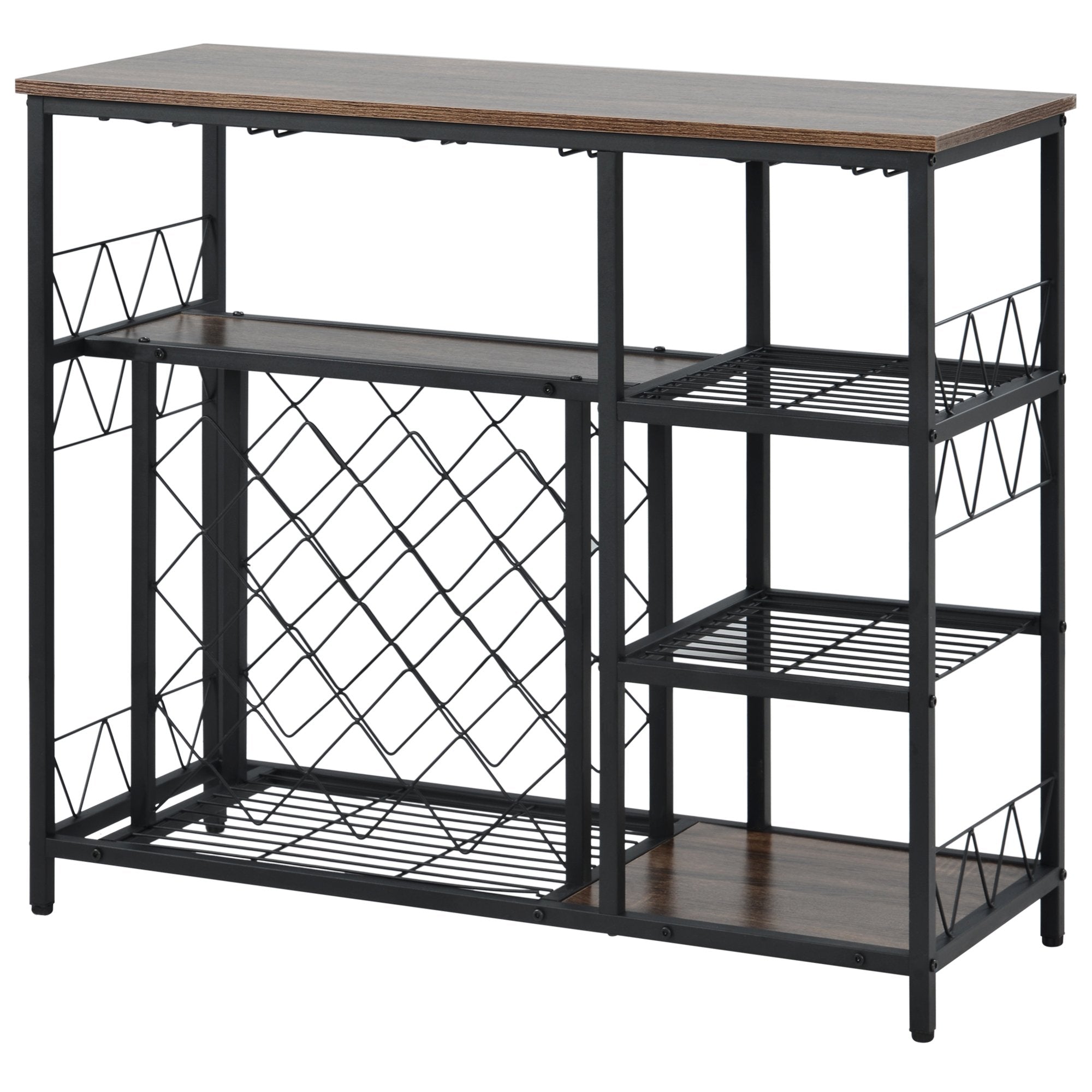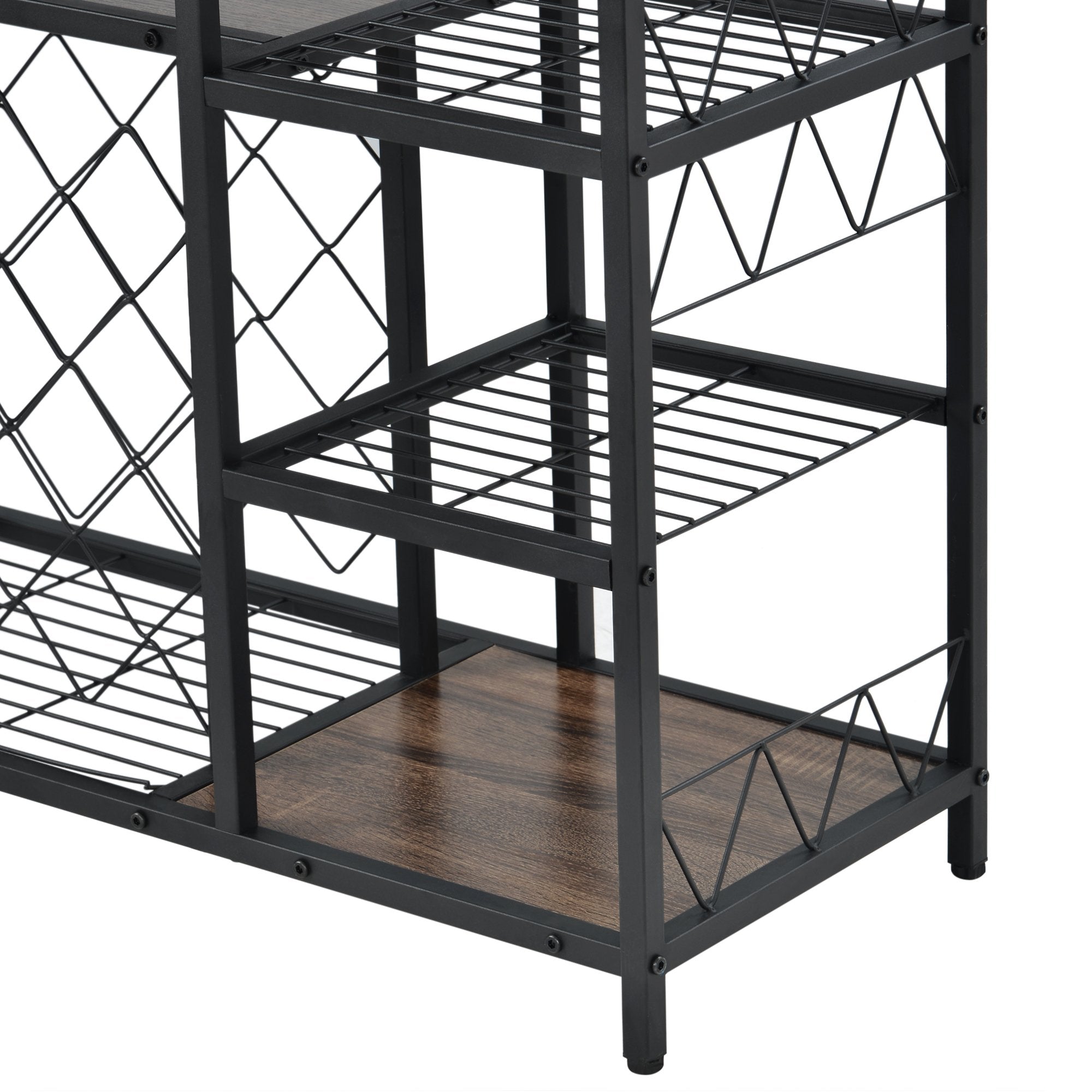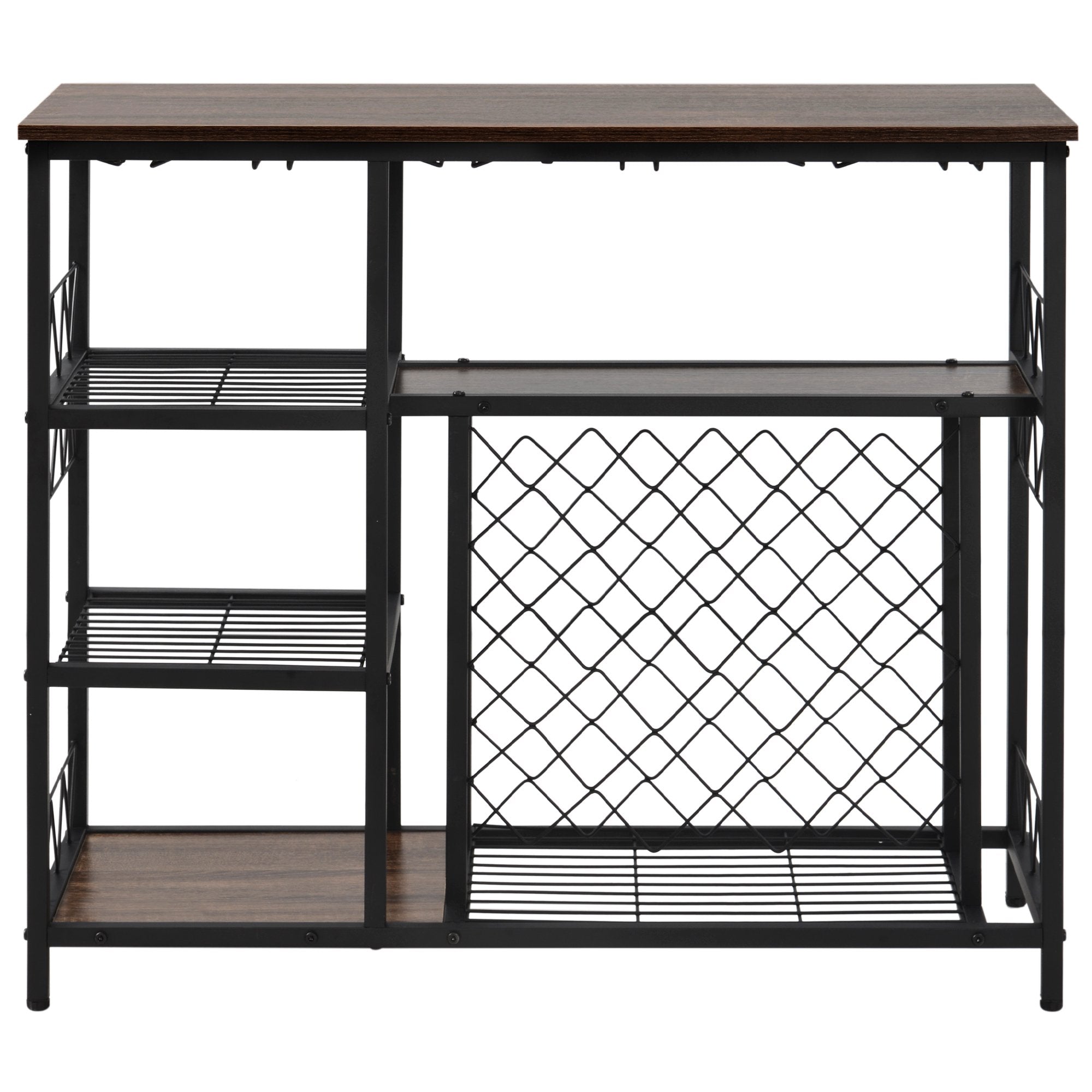 Modern Industrial Home Kitchen Dining Room Metal Wine Rack Table with Glass Holder, Freestanding Wine Bar Cabinet Console Table Buffet Table with 21 Bottles for Small Places, Brown Finish