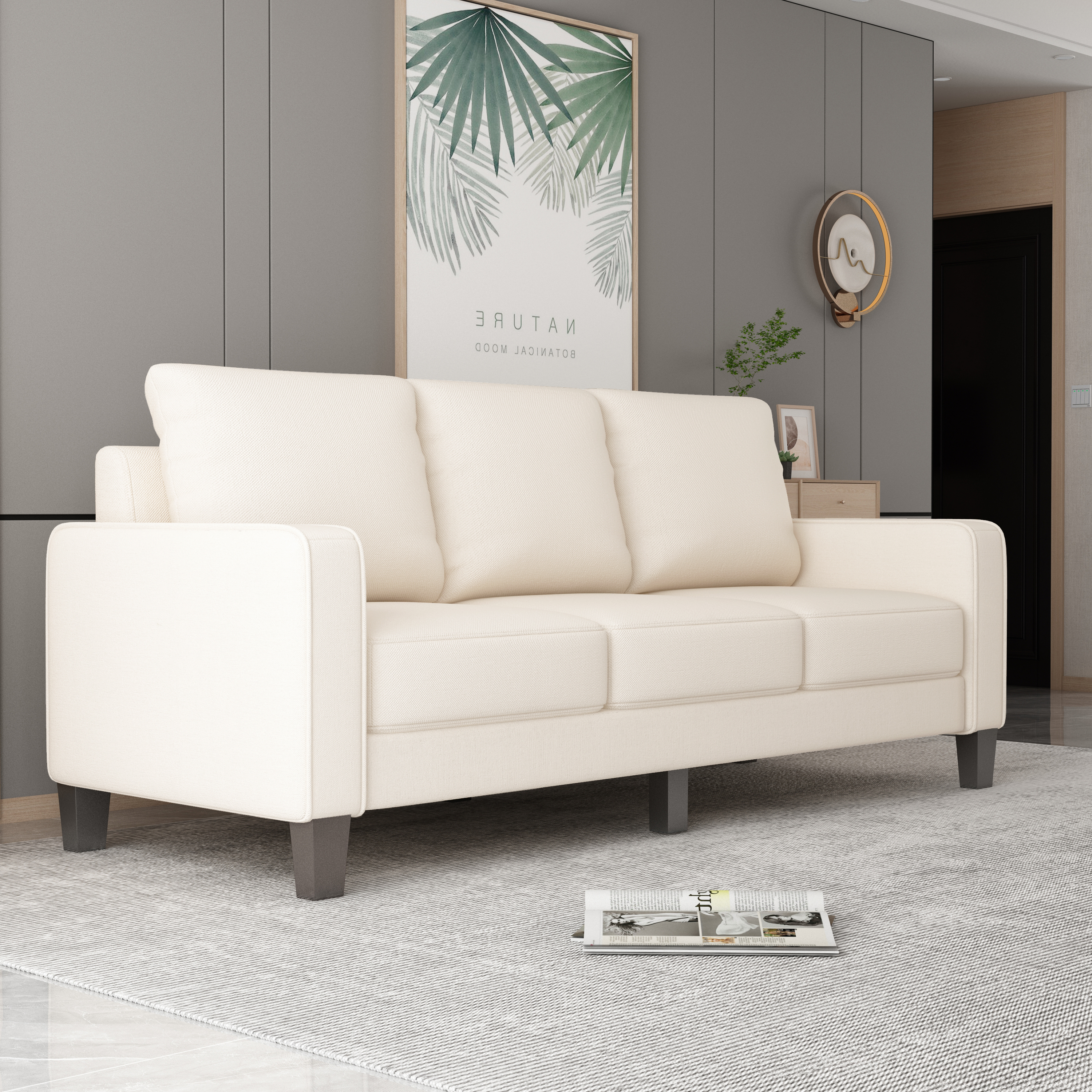 STURDY STRUCTURE: The couch’s frame is made of high-quality solid wood & metal, ensuring each and every part of the sofa is both firm and durable. Also, the sofa has 6 legs that evenly balance the weight, giving it a total capacity of over 800lbs. COMFORTABLE SUPPORT: Inside the sofa cushions are high elastic sponges on top of the coils and combined with high quality & soft fabric equal increased comfort for all customers.HIGH QUALITY MATERIAL: With solid wood legs, this sofa upholstery comprises of 100% polyester with high density elastic sponges.SEAT CUSHION THICKNESS: The seat cushion is a total of 6.7 inches thick. EASY ASSEMBLY: All parts and instructions are included for easy assembly in less than 30 minutes. STORAGE INCLUDED: A removeable storage box is available under the sofa seat cushion.