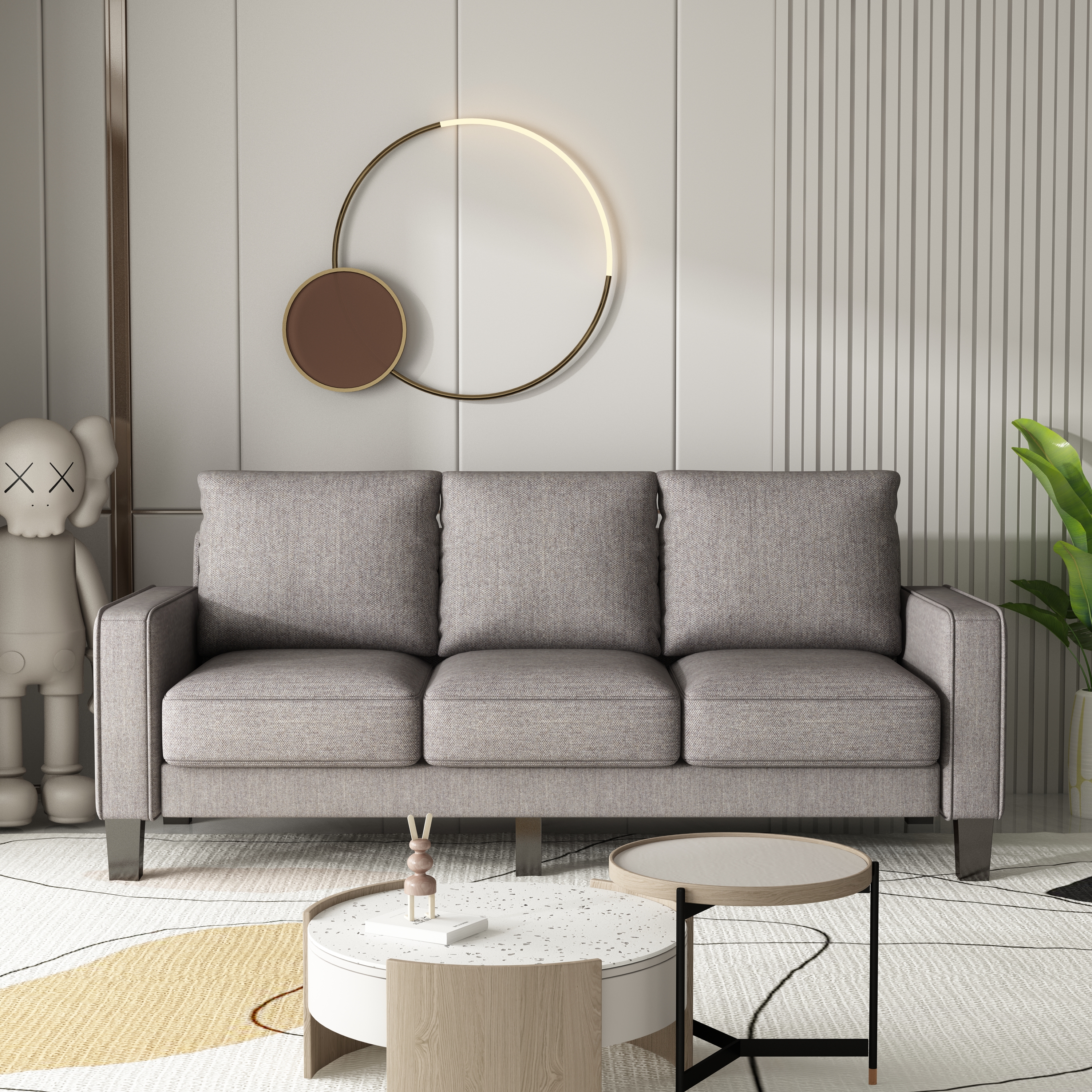 STURDY STRUCTURE: The couch’s frame is made of high-quality solid wood & metal, ensuring each and every part of the sofa is both firm and durable. Also, the sofa has 6 legs that evenly balance the weight, giving it a total capacity of over 800lbs. COMFORTABLE SUPPORT: Inside the sofa cushions are high elastic sponges on top of the coils and combined with high quality & soft fabric equal increased comfort for all customers.HIGH QUALITY MATERIAL: With solid wood legs, this sofa upholstery comprises of 100% polyester with high density elastic sponges.SEAT CUSHION THICKNESS: The seat cushion is a total of 6.7 inches thick. EASY ASSEMBLY: All parts and instructions are included for easy assembly in less than 30 minutes. STORAGE INCLUDED: A removeable storage box is available under the sofa seat cushion.