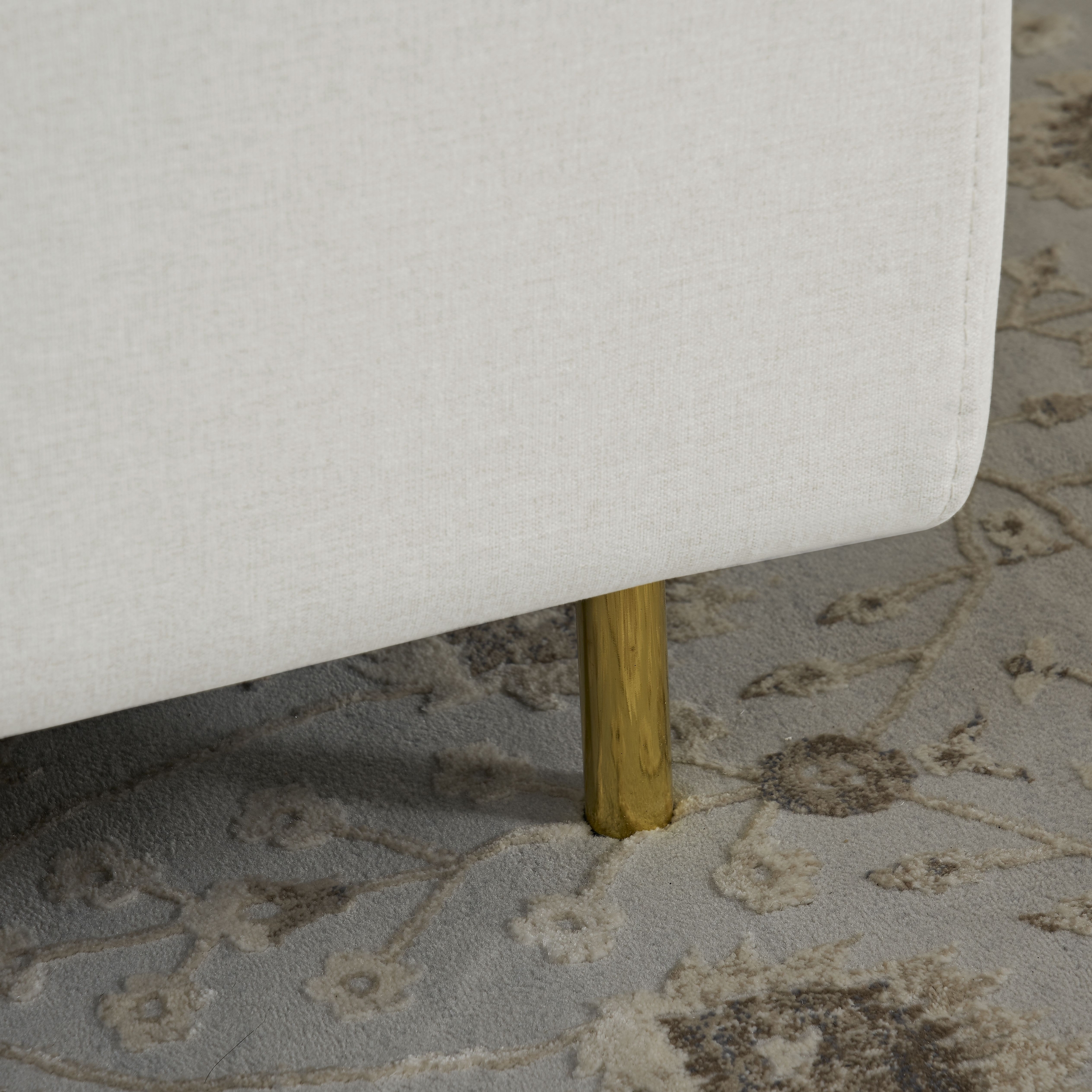 HIGH QUALITY MATERIAL:It’s 100% polyester for the sofa upholstery,high density and elastic sponge so that the sofa is not too soft or too hard. Golden metal sofa legs.
