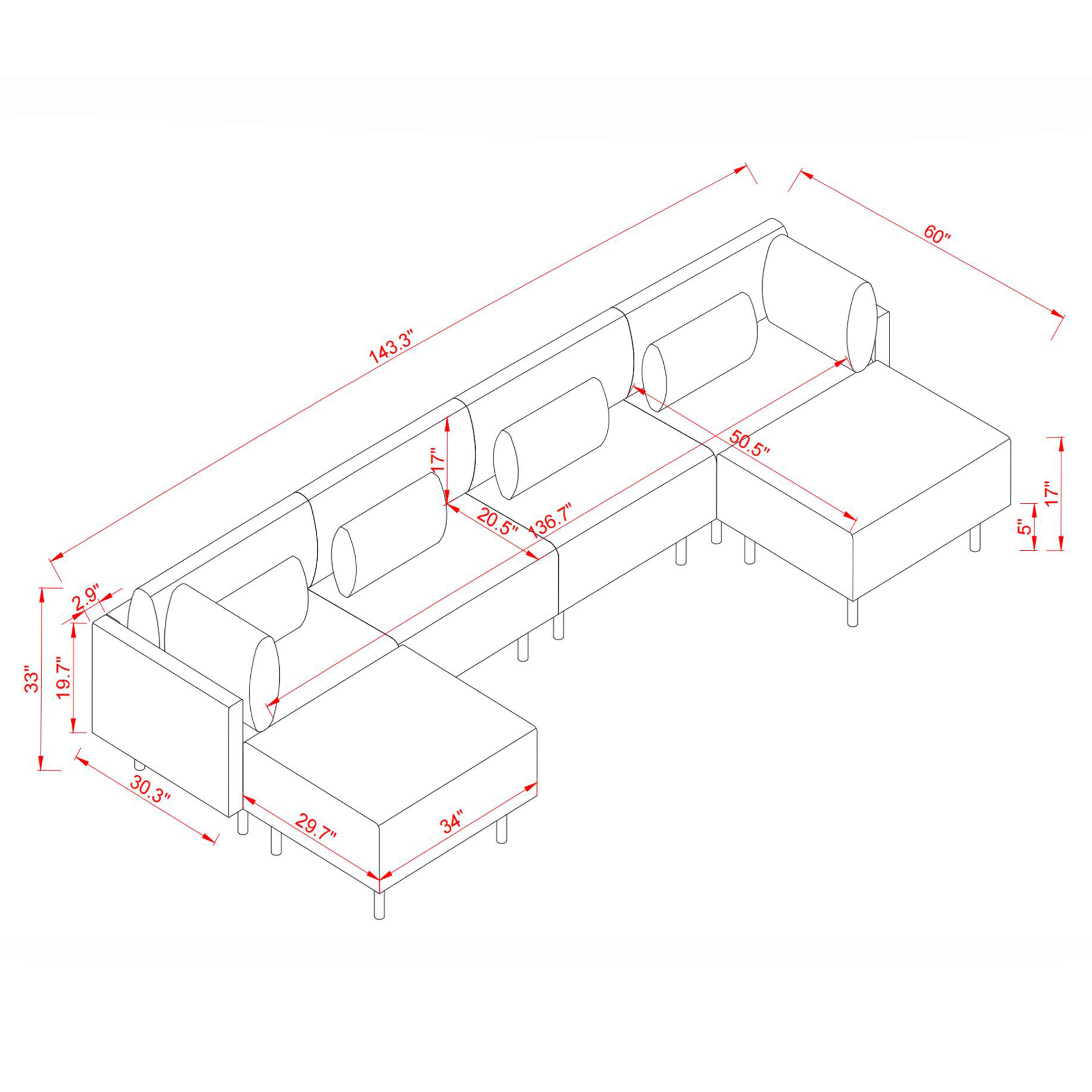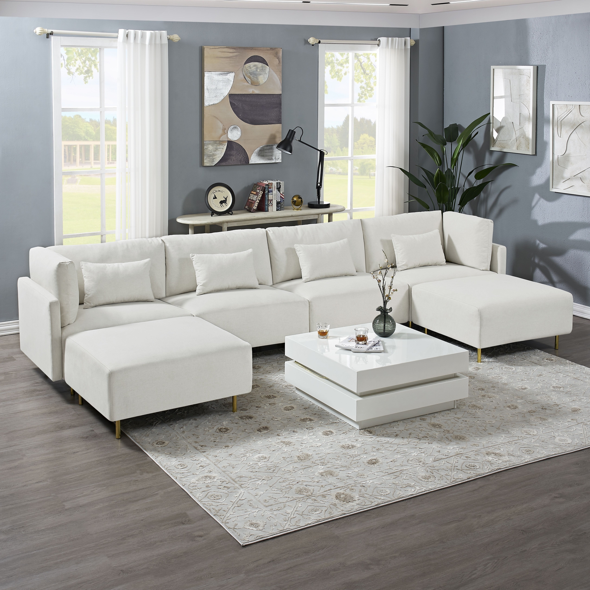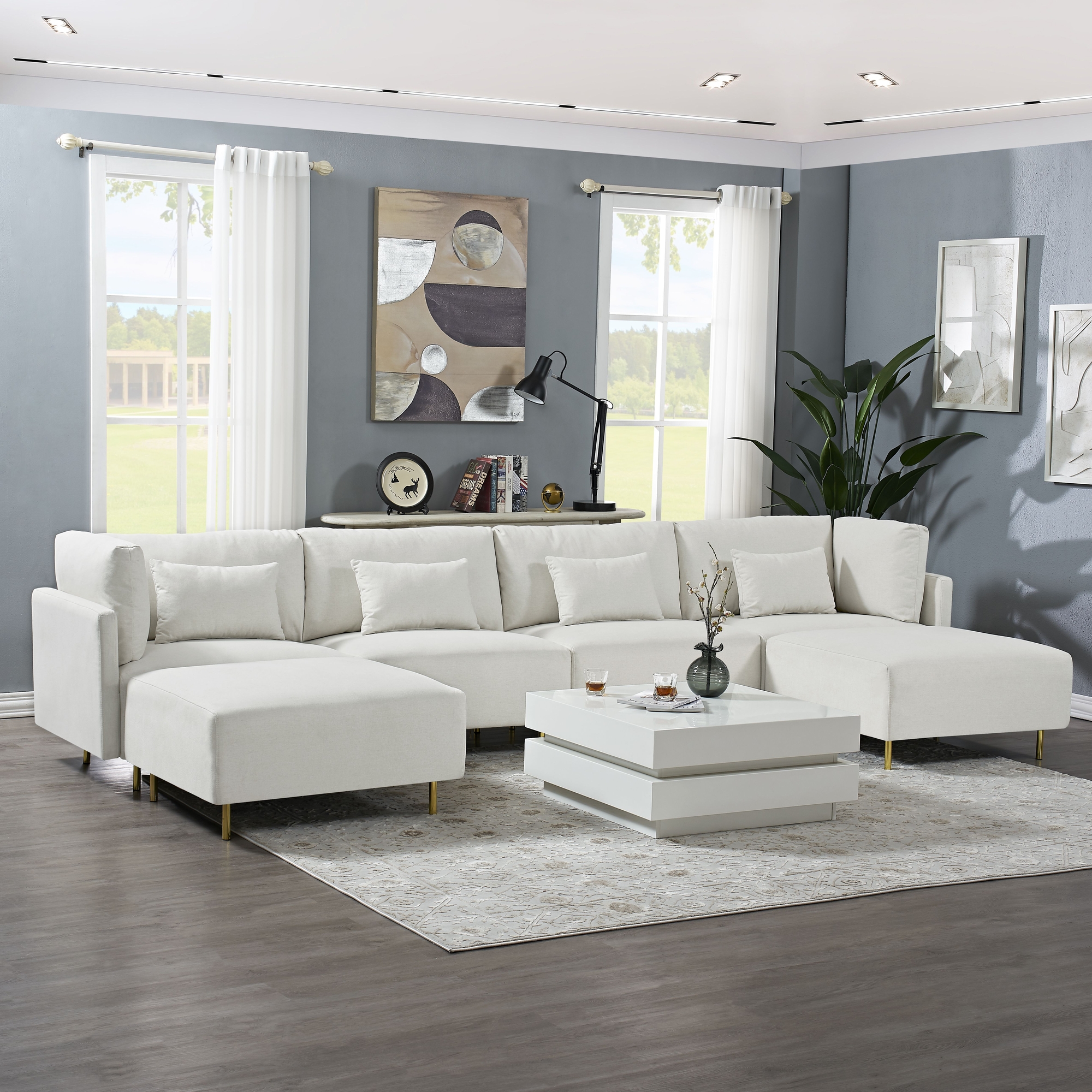 SEVERAL PACKAGE DELIVERY:The whole set U shape sofa would be shipped in seven separated boxes,we ship them on the same day but the carrier may deliver to your address on different days,if so,please wait patiently and make sure you get all boxes.Any questions,don’t hesitate to contact with us.