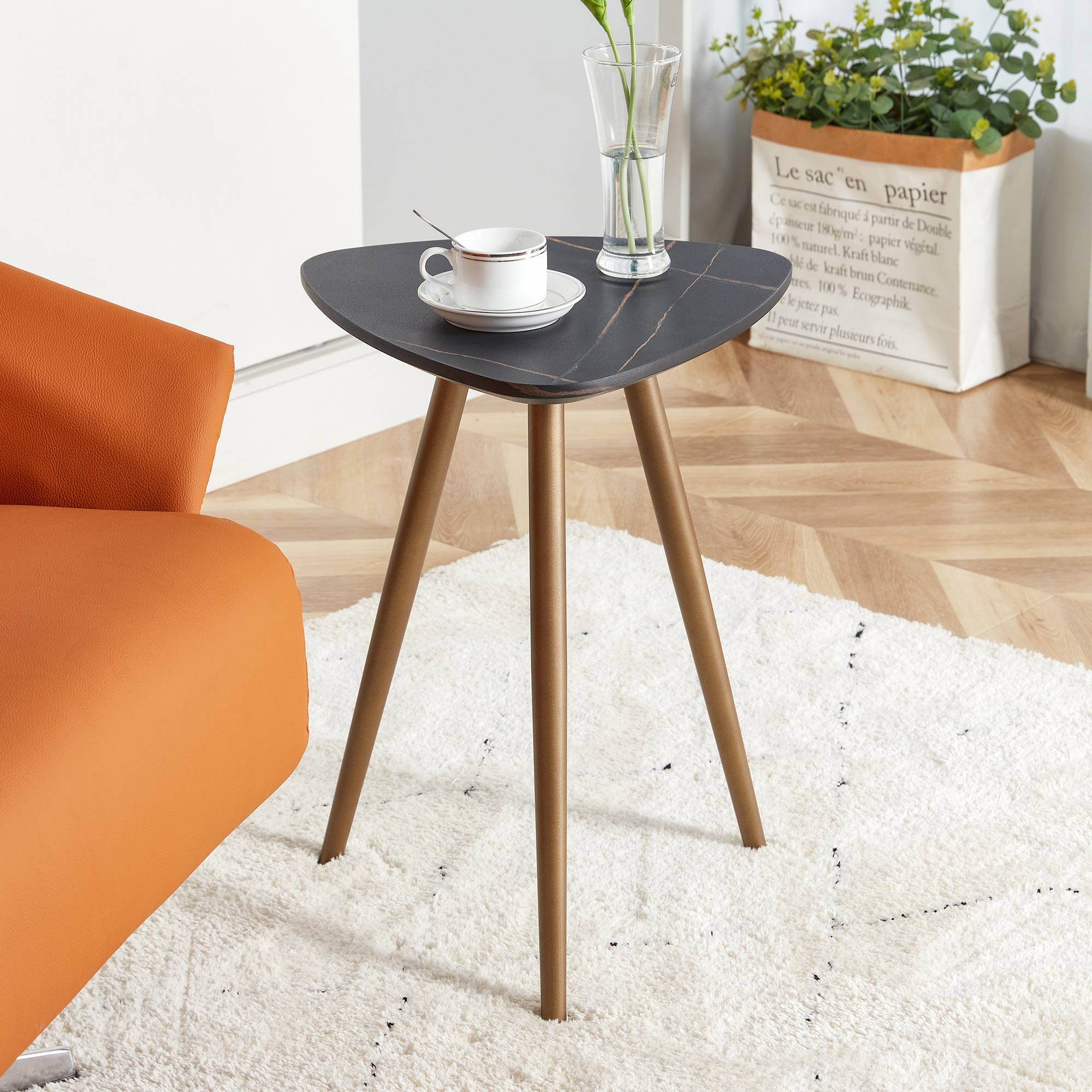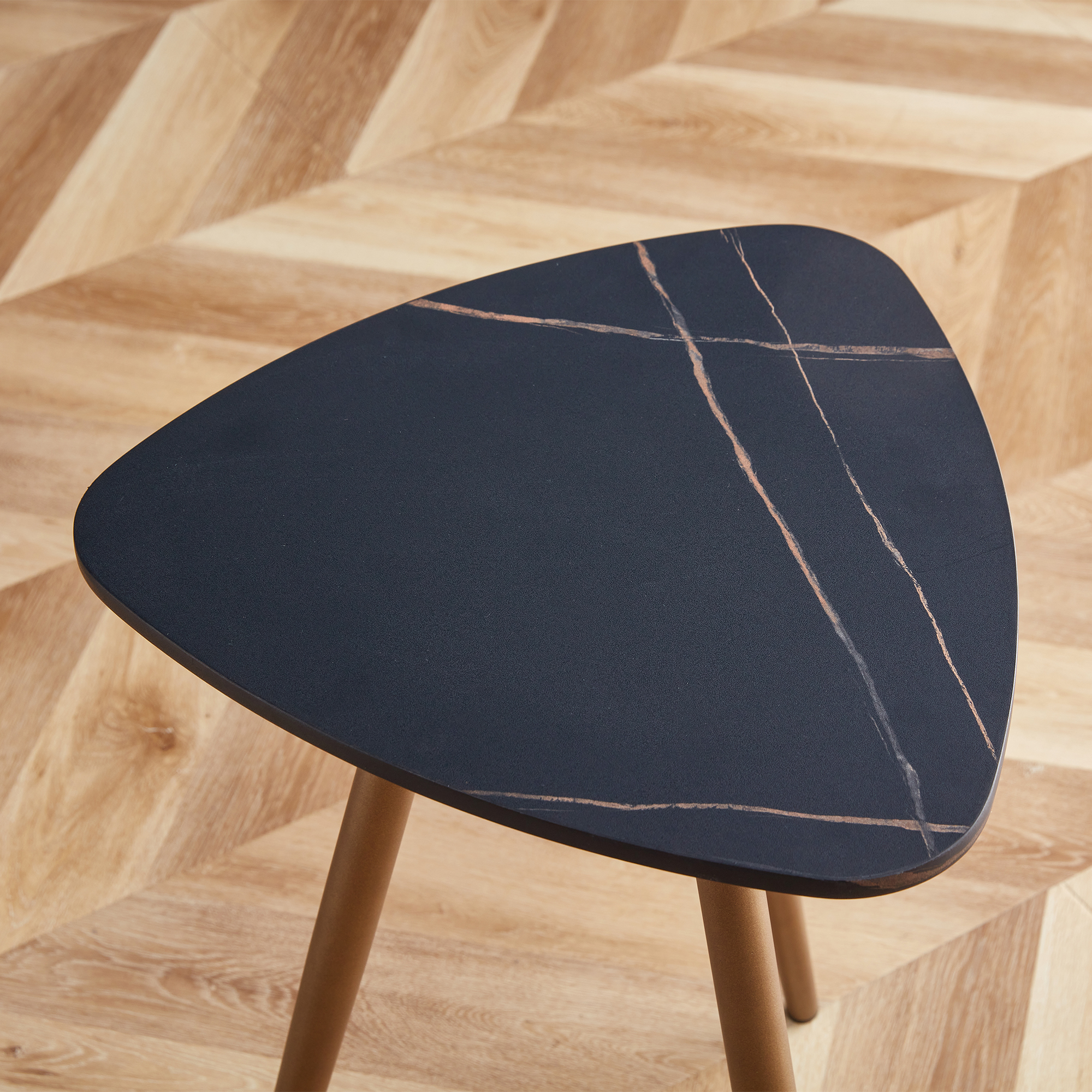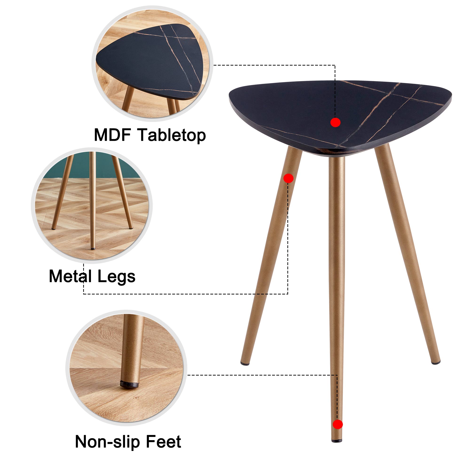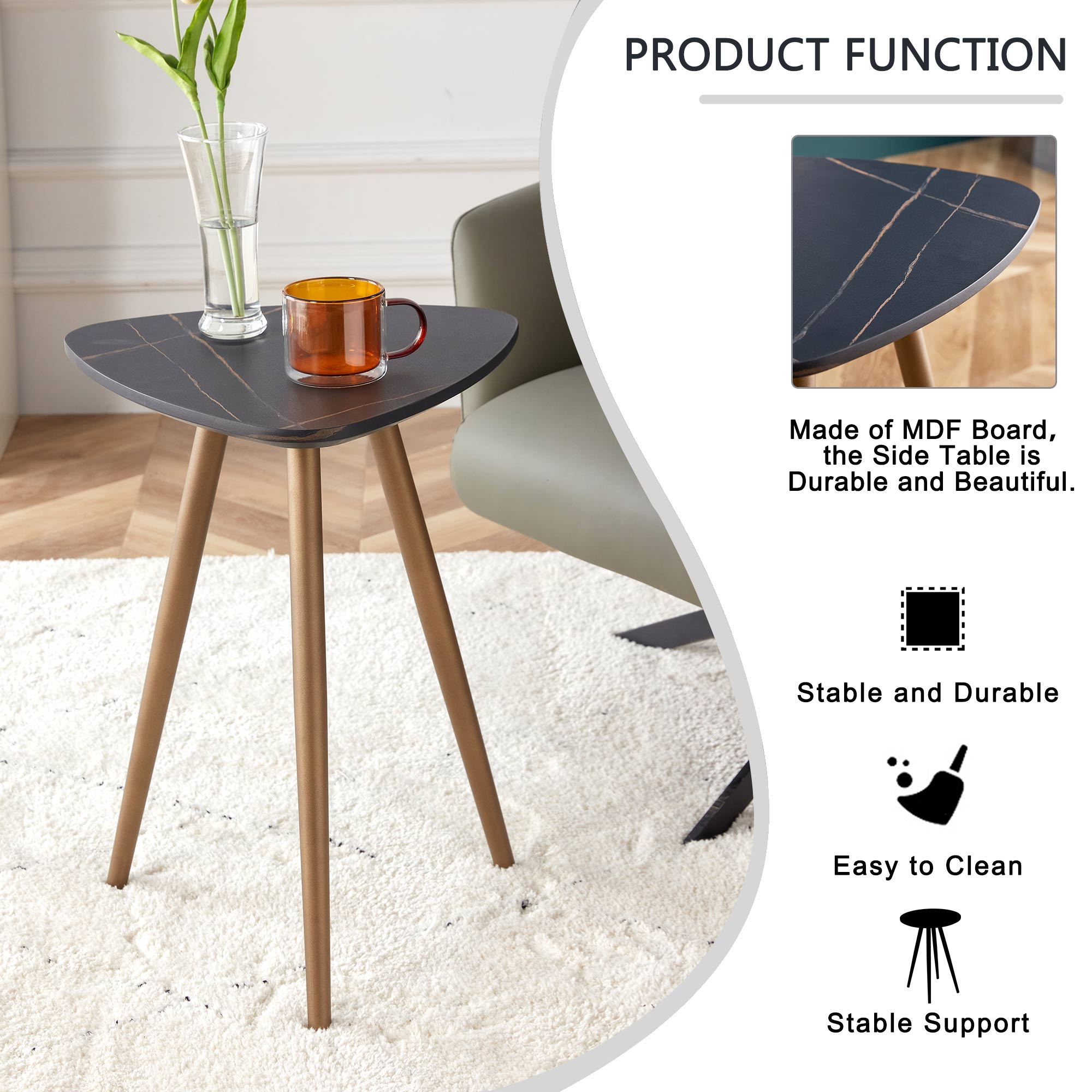 Modern Minimalism Black Faux Marble EndSide Table,Small Accent Coffee Table with Dark Gold Metal Legs,Triangle Nightstand for Living Room,Bedroom,Apartment Small Space ( MDF Tabletop + Metal Legs )