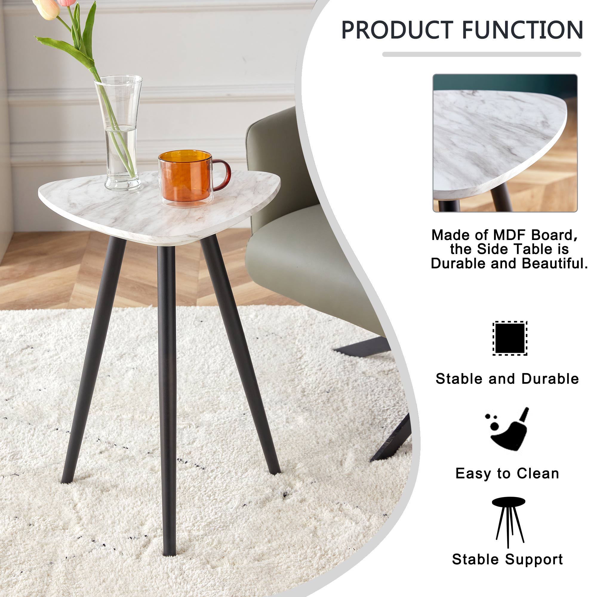 Modern Minimalism White Faux Marble EndSide Table,Small Accent Coffee Table with Dark Gold Metal Legs,Triangle Nightstand for Living Room,Bedroom,Apartment Small Space ( MDF Tabletop + Metal Legs )
