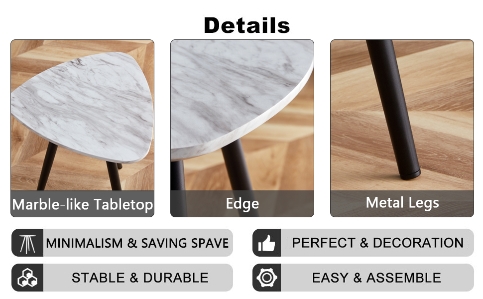 6.The dark gold legs of the coffee end table have a triangular structure which is very stable. Built with anti-rust, waterproof, sturdy metal and powder coating.